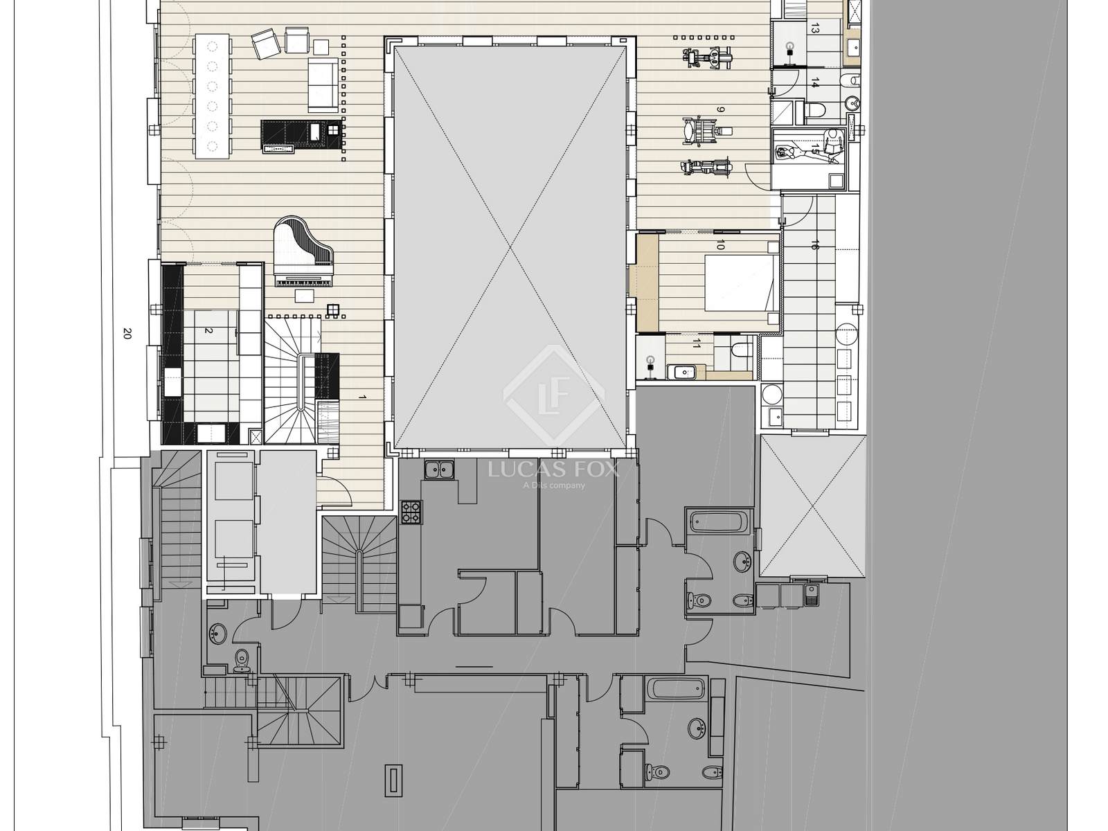 Fantástica cobertura de luxo de 250 m² no coração de Barcelona, com dois terraços que oferecem vistas espetaculares da cidade, do mar e das montanhas. Esta casa recém-construída está localizada no oitavo andar de um edifício histórico reformado no coração de Barcelona.