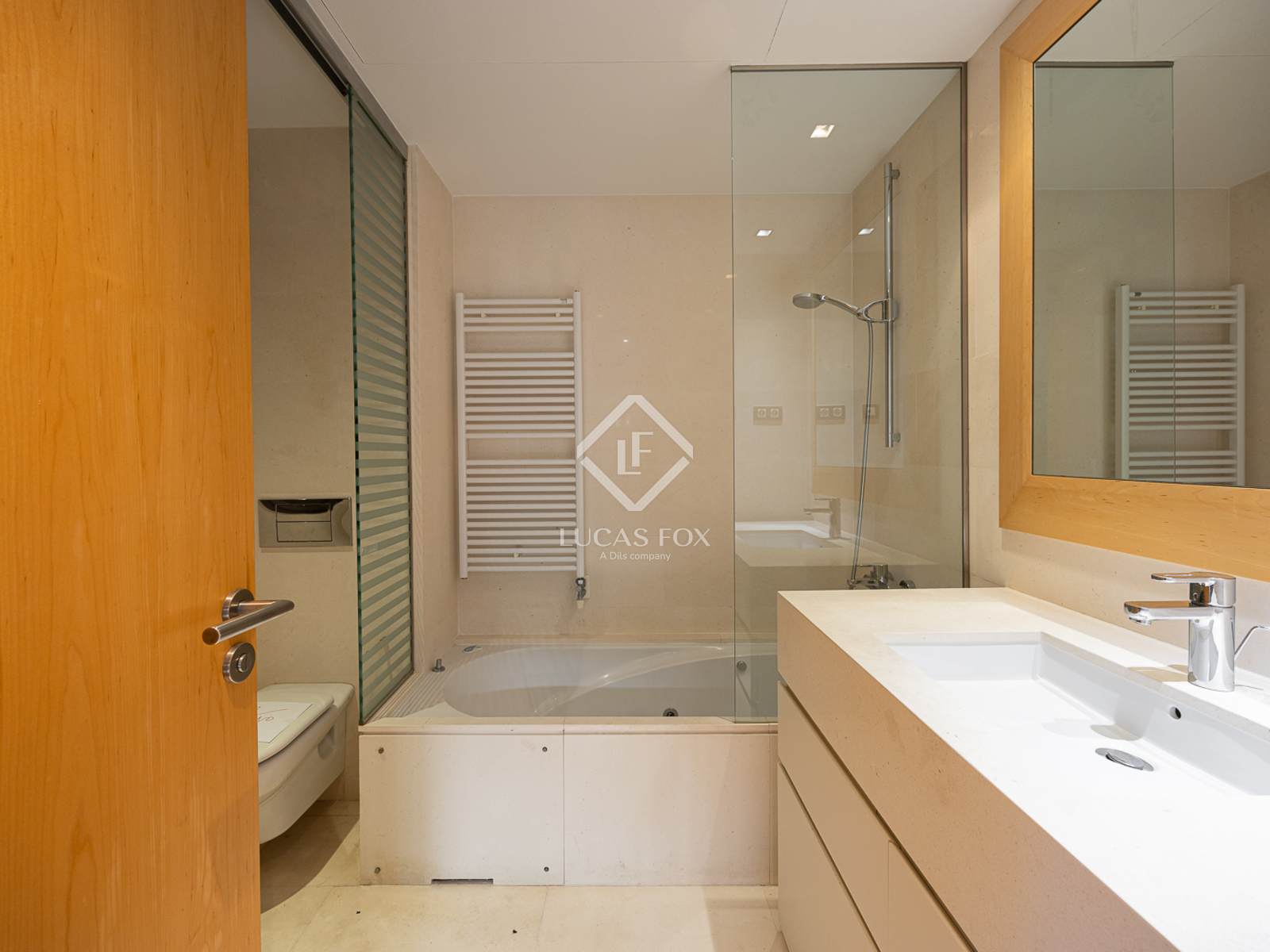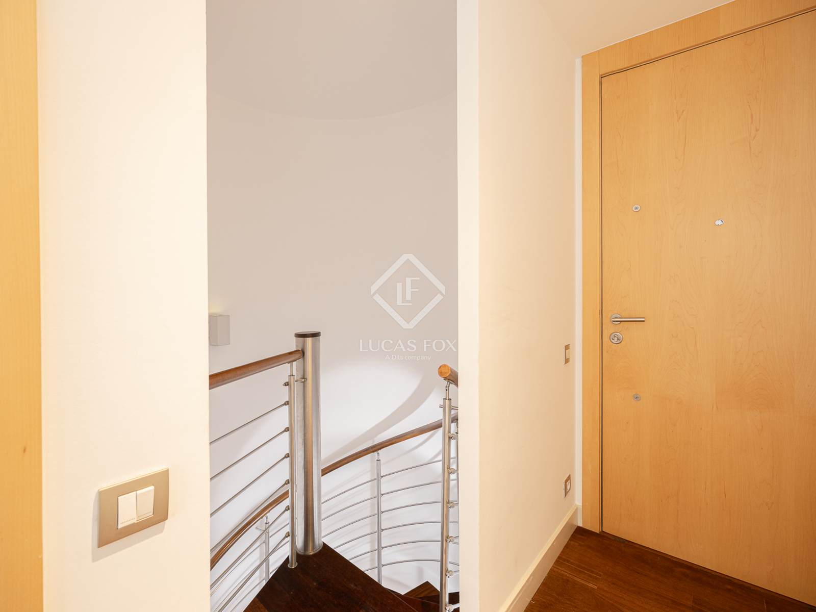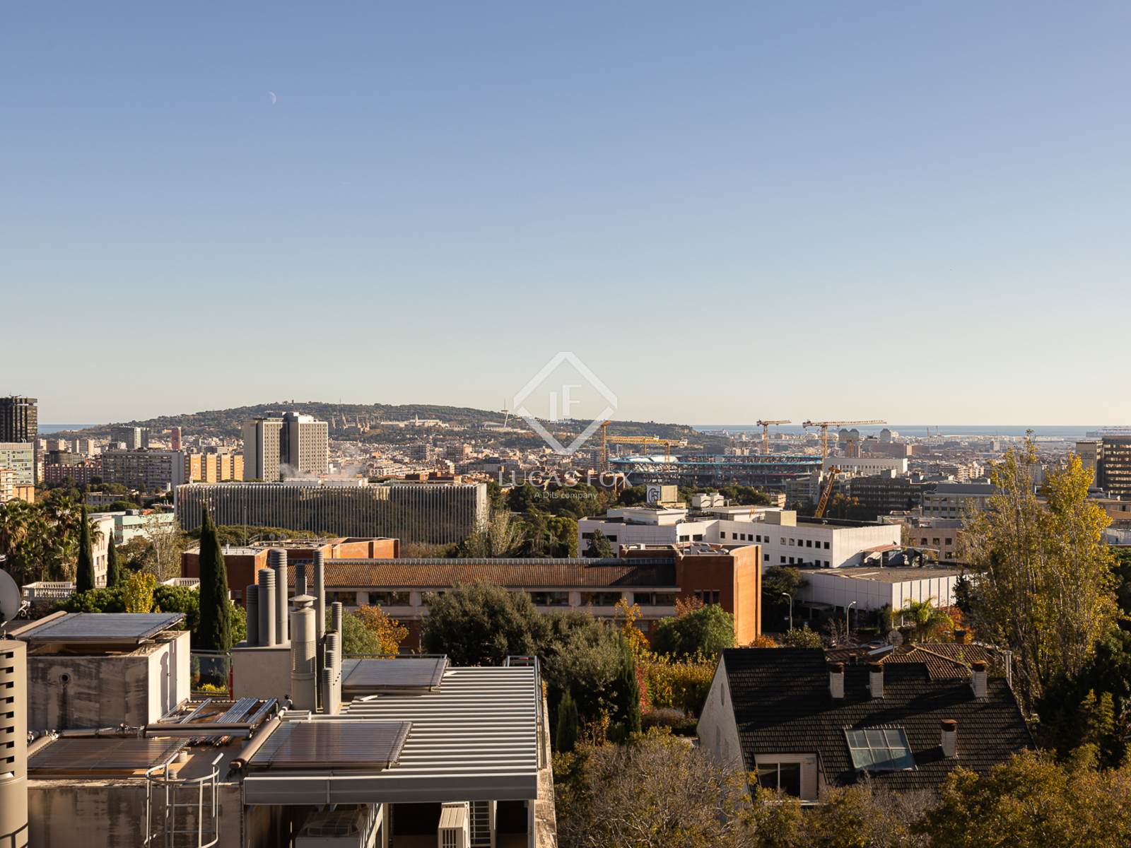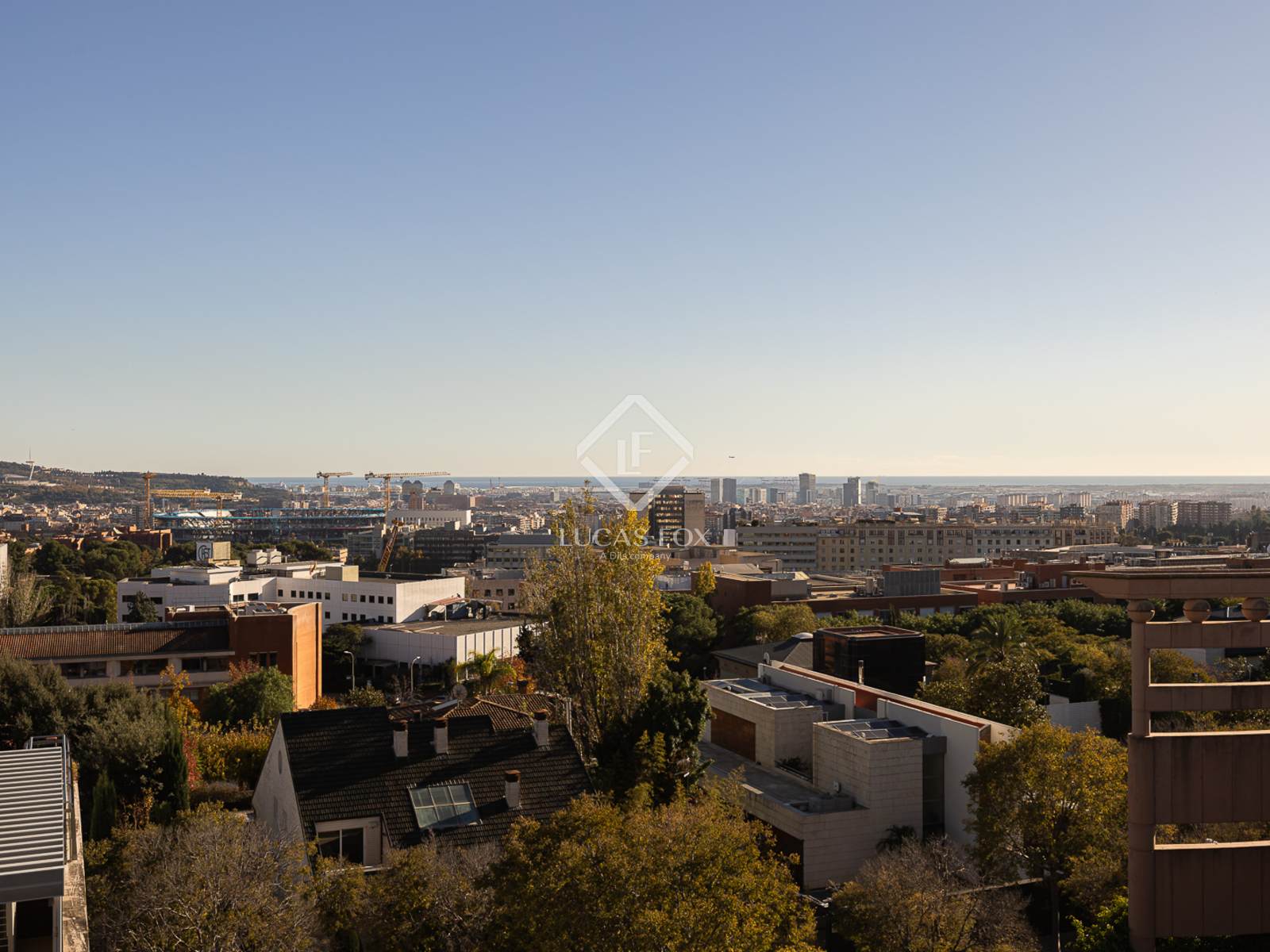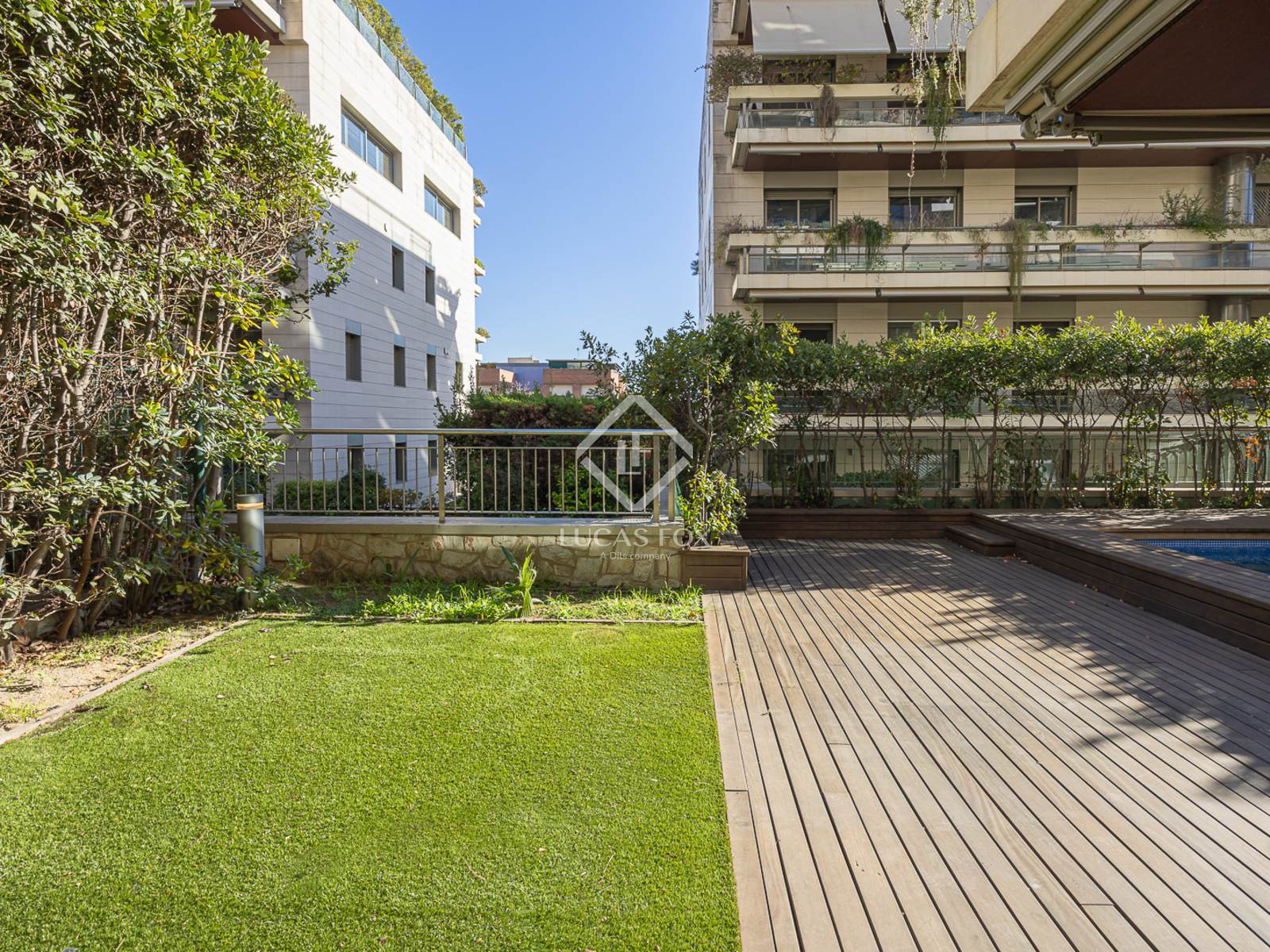 Apartamento duplex de 3 quartos com jardim e piscina privativos, área comum, segurança 24 horas e estacionamento em Pedralbes para aluguel de longa duração.