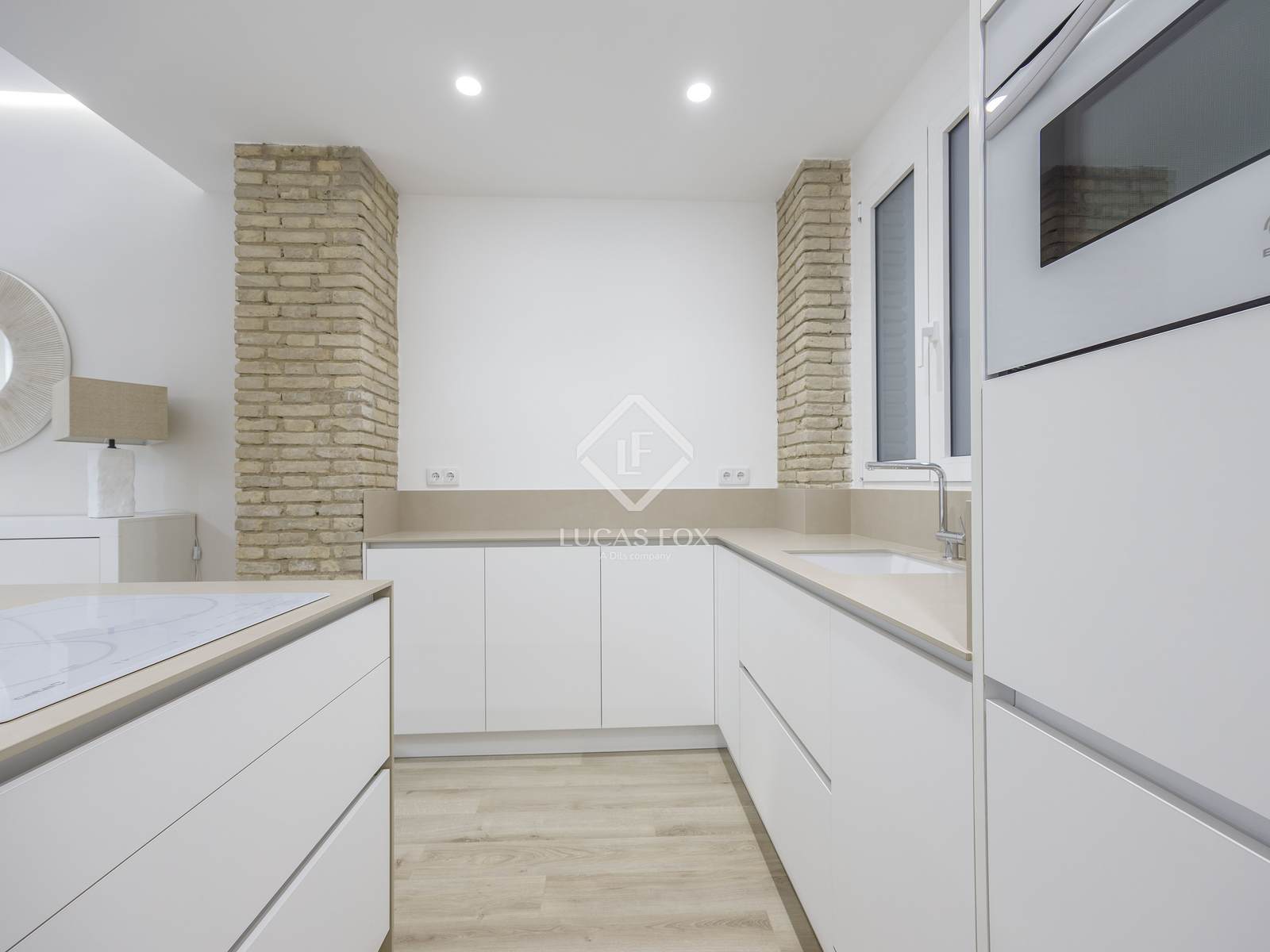 Apartamento recém-renovado com 3 quartos (2 de casal e um de solteiro) e dois banheiros completos com chuveiro, totalmente reformado com móveis de design, localizado em uma das ruas mais prestigiosas do bairro Plá del Remei, a poucos metros do Turia.
