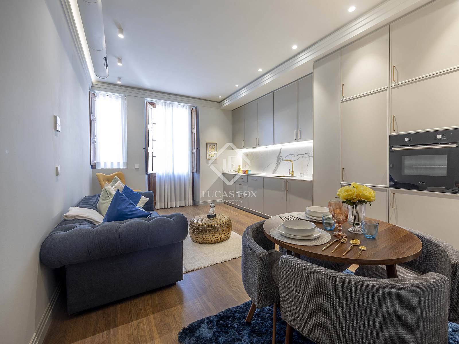 Apartamento elegante e exclusivo, totalmente reformado e mobiliado, com um quarto de casal e um banheiro para alugar em uma das melhores ruas do bairro de Ruzafa, perto do bairro Eixample de Valência.