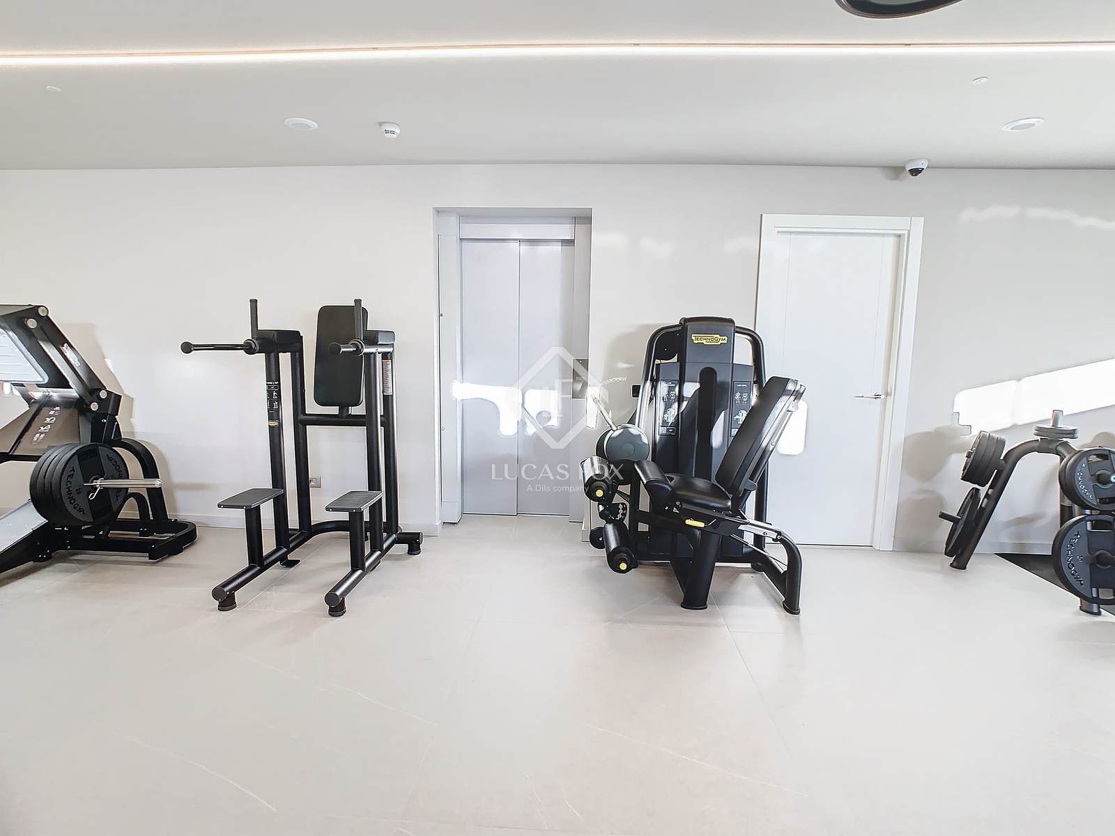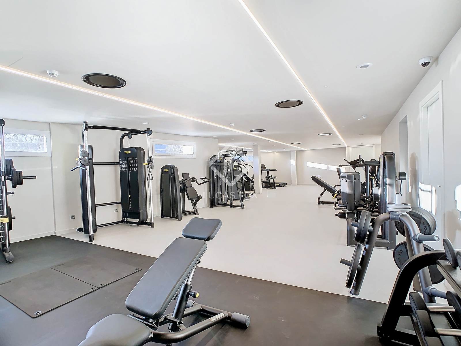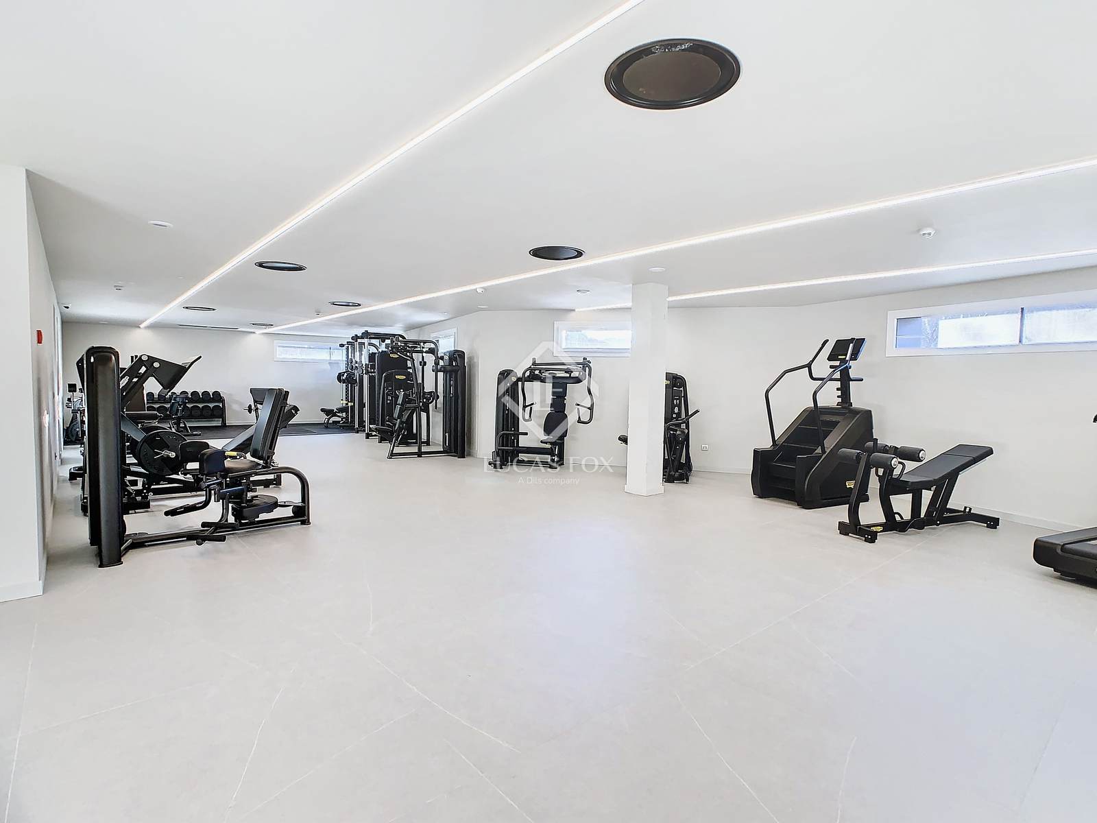 Ao chegar ao segundo andar, à esquerda fica a área de serviço, que inclui um pátio de 8 m². À direita, a entrada para a academia: uma incrível sala de 135 m² equipada com os melhores aparelhos do mercado (Technogym de última geração) e um banheiro de vários andares. Neste mesmo andar, você pode desfrutar de um espaçoso solário de 45 m², acessível apenas pela escada externa.