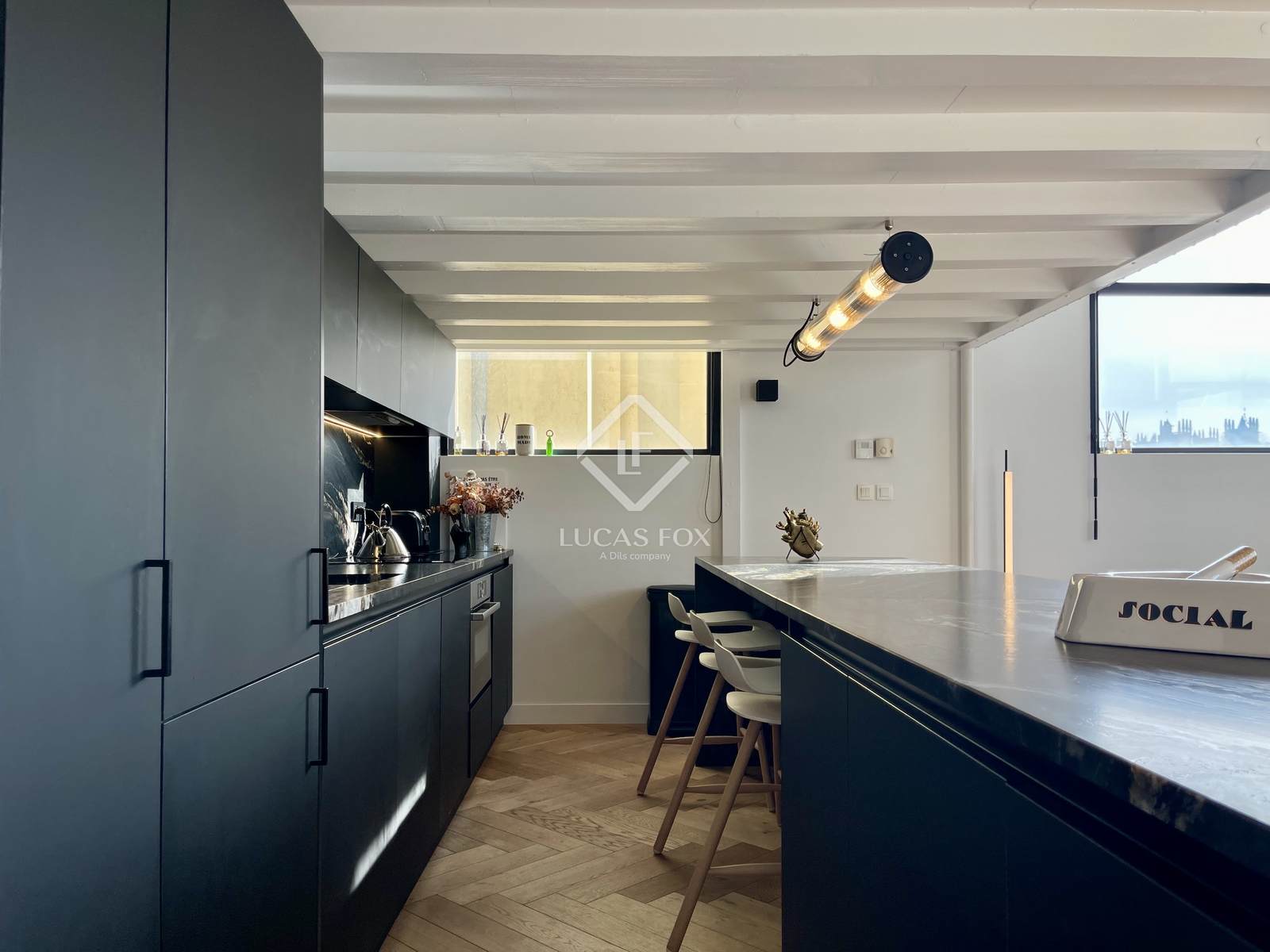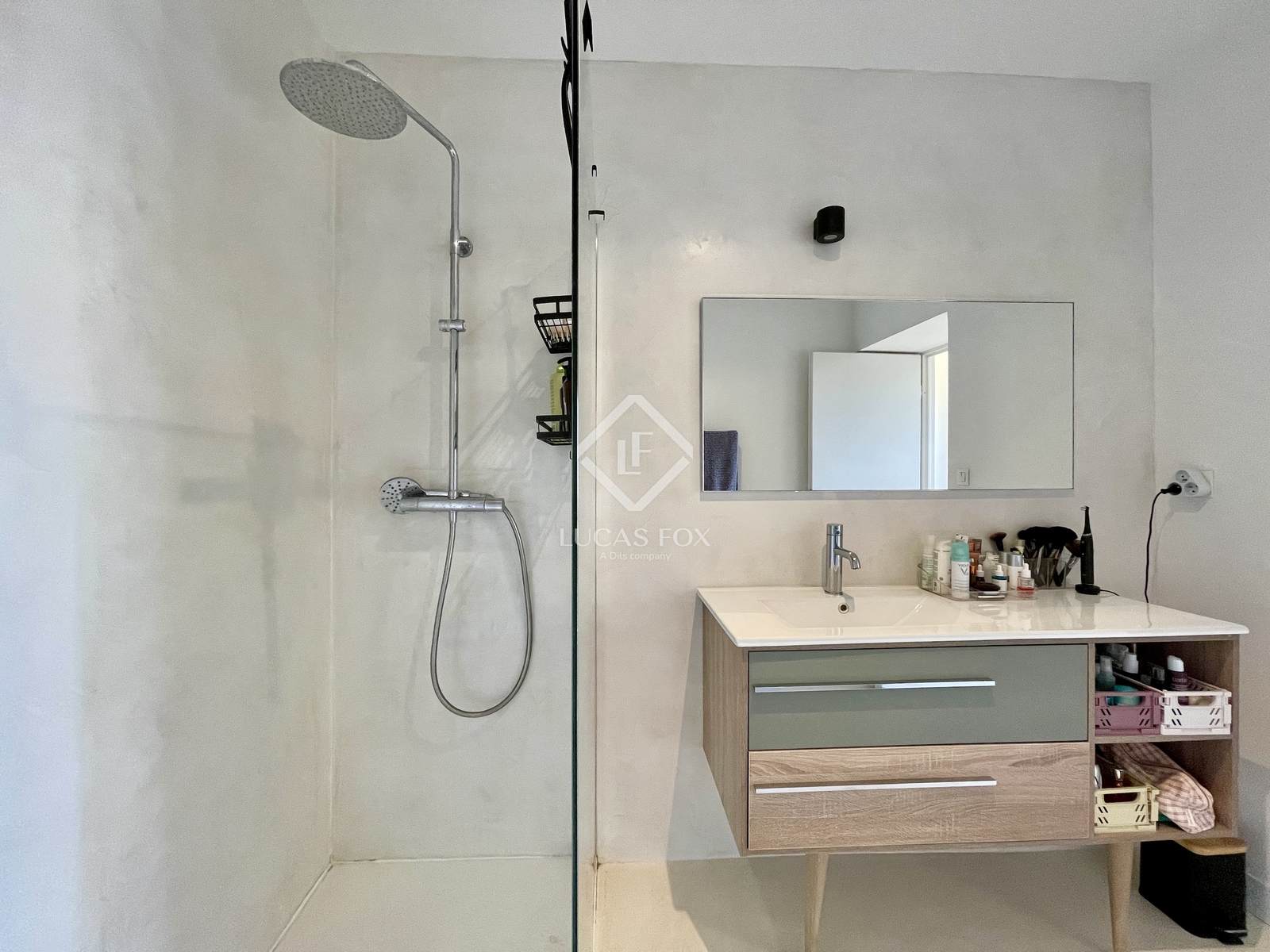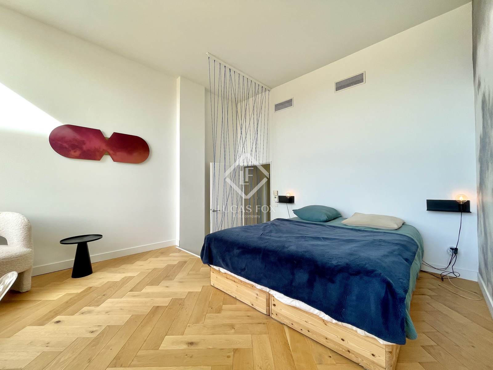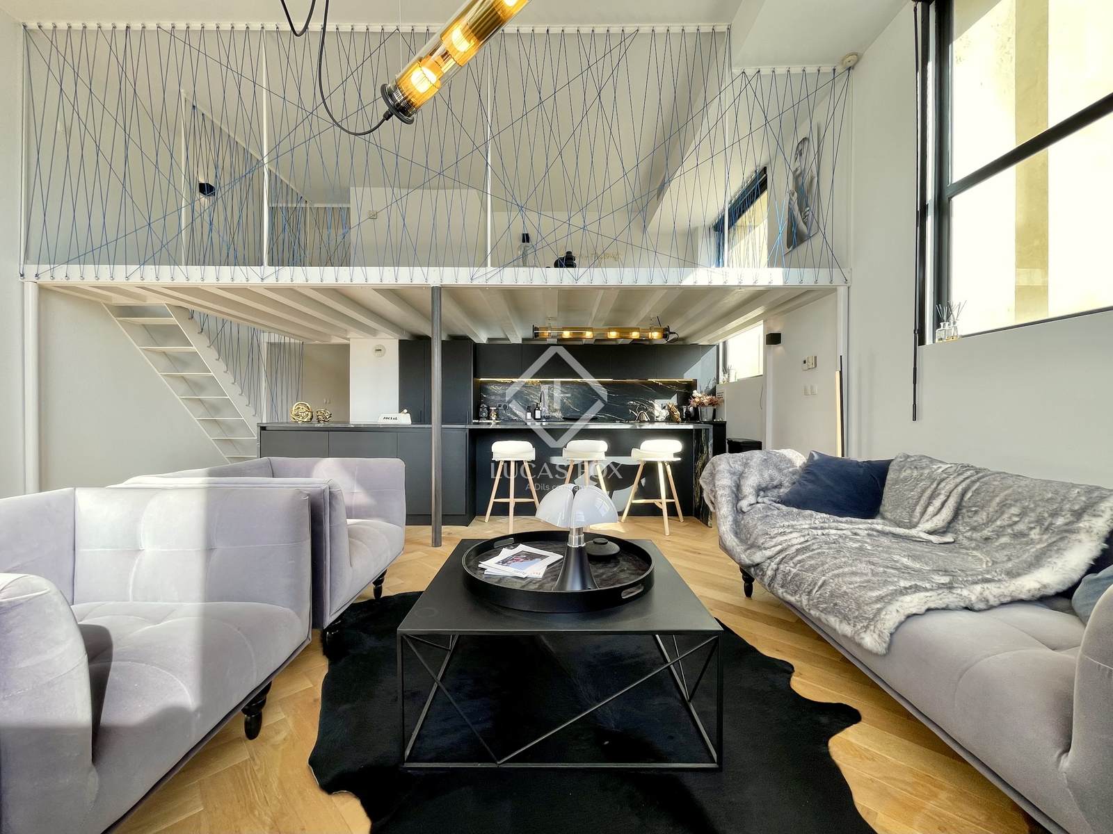 Um mezanino com área de leitura de 17,2 m² (lei Carrez) completa o conjunto, ideal para um escritório, oficina ou sala de estar privativa.