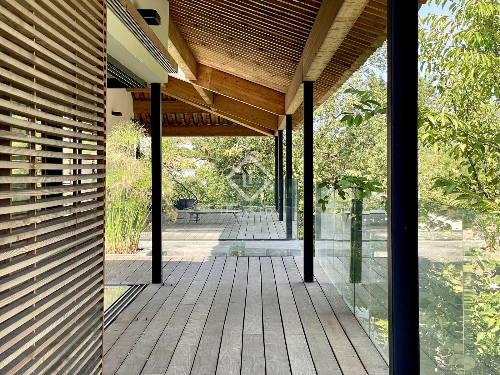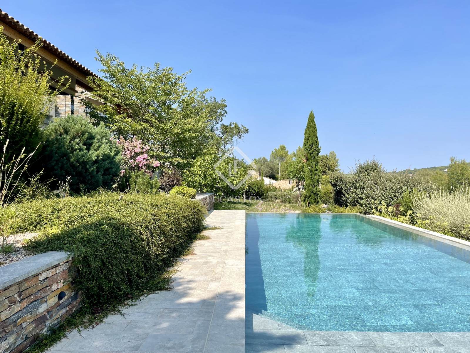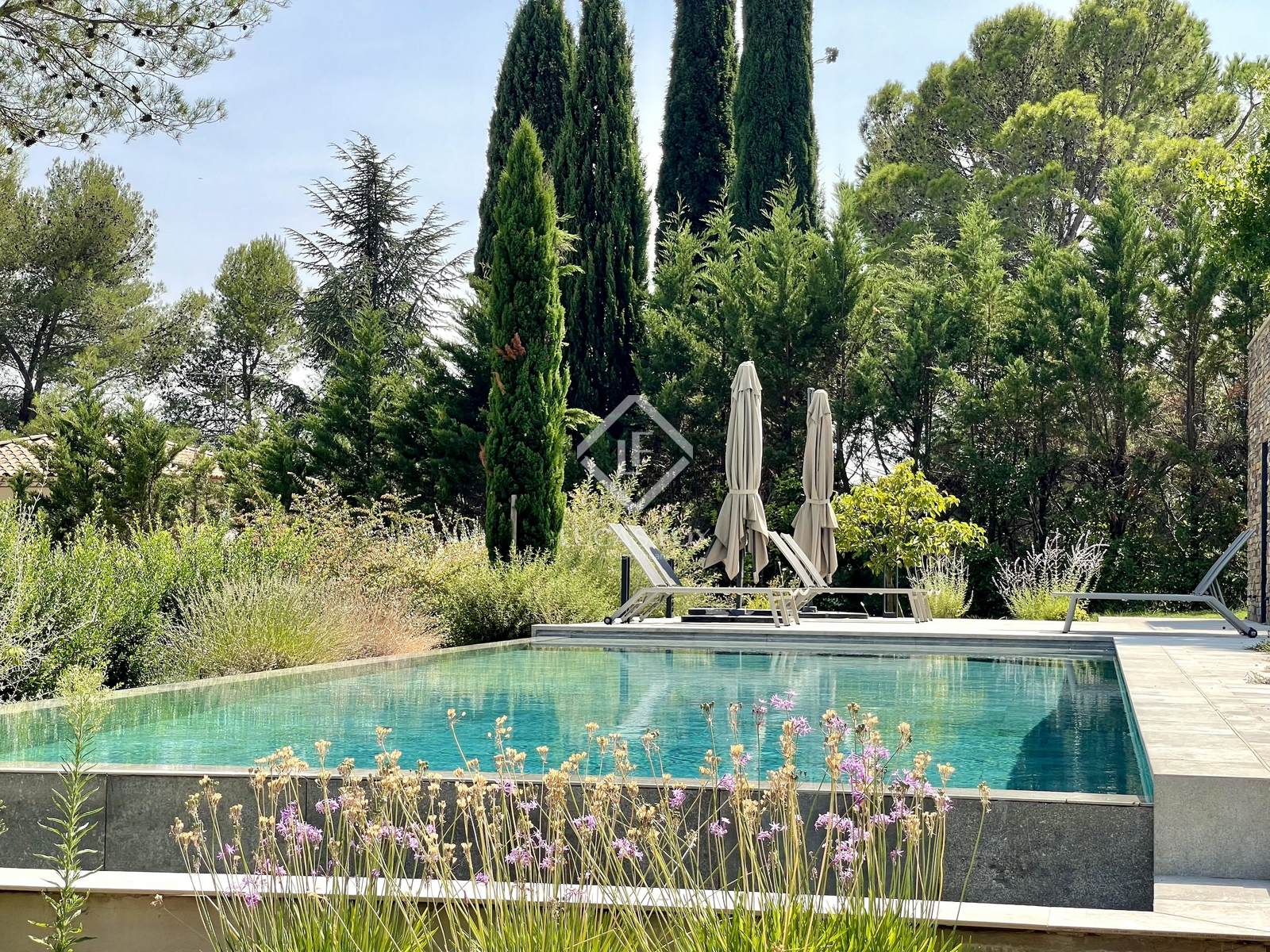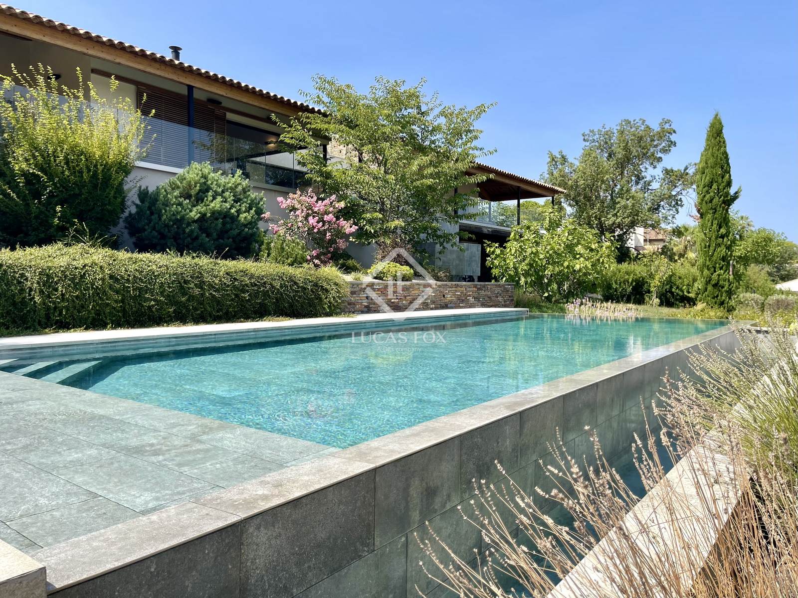 Construída em 2020 em um terreno de 3.000 m², esta propriedade de 400 m² está distribuída principalmente em um nível e se estende por mais de 150 m² de terraços. Os serviços oferecidos oferecem uma excelente qualidade de vida: grandes janelas salientes Technal, domótica, painéis solares, bacia de regulação de águas pluviais, piso radiante e arrefecimento, pé direito duplo e espaços amplos. O pátio arborizado, o lago com cascata e a omnipresença da madeira conferem à casa um ambiente tranquilo.