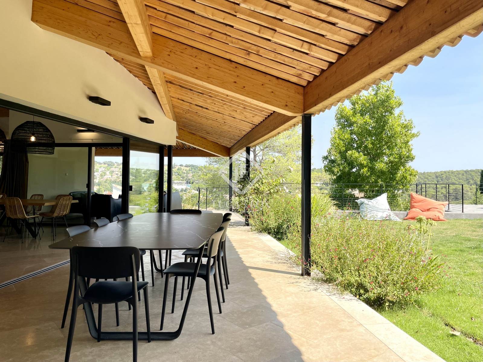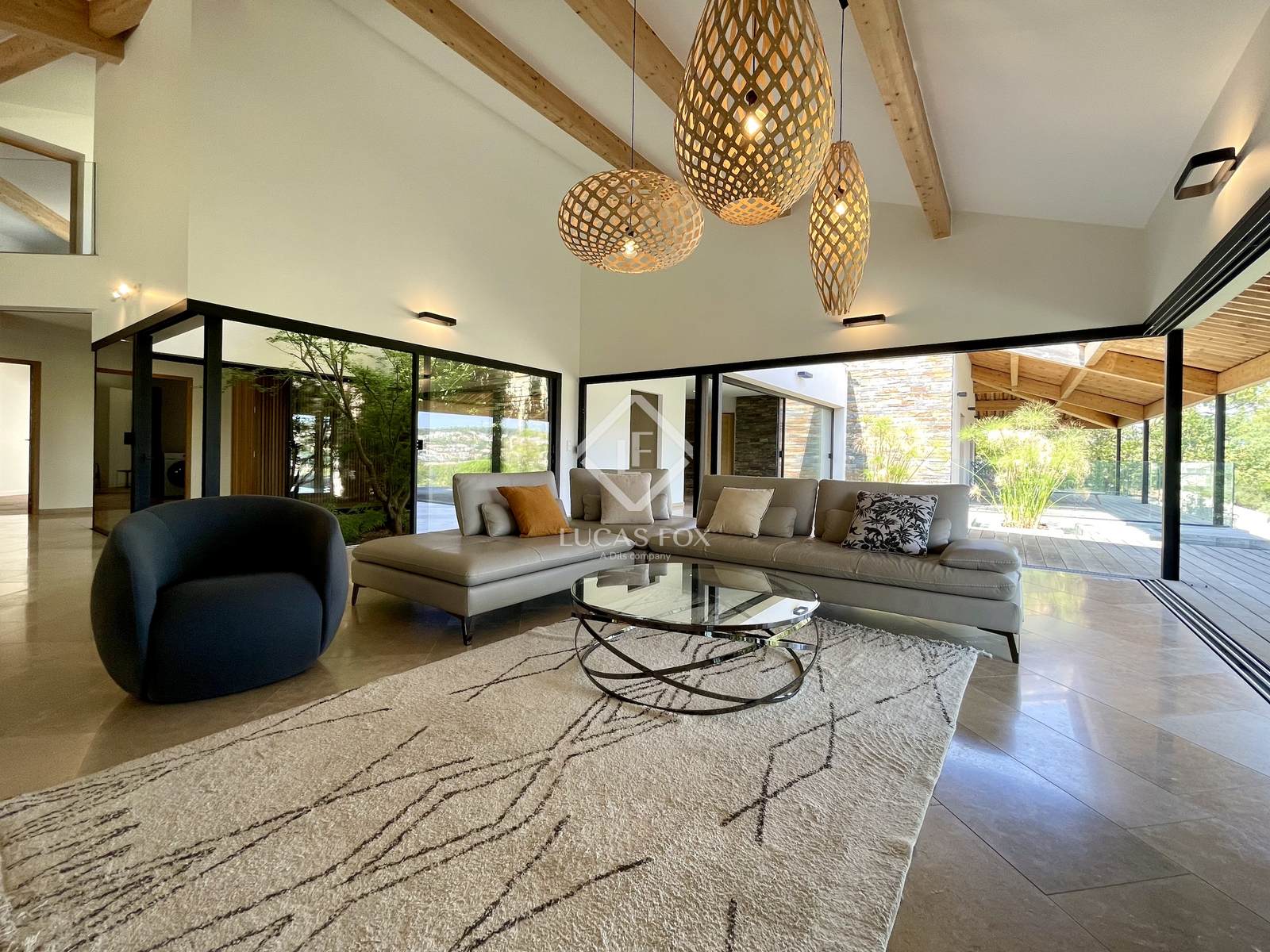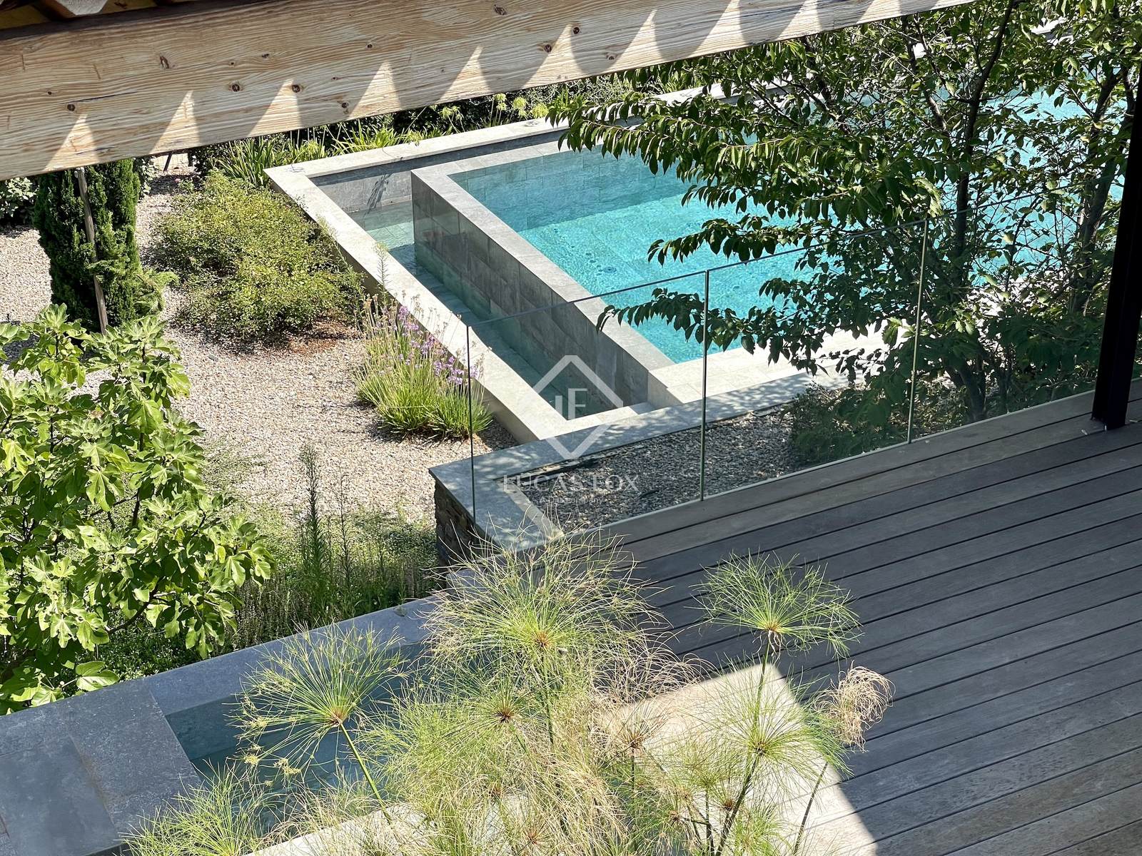Construída em 2020 em um terreno de 3.000 m², esta propriedade de 400 m² está distribuída principalmente em um nível e se estende por mais de 150 m² de terraços. Os serviços oferecidos oferecem uma excelente qualidade de vida: grandes janelas salientes Technal, domótica, painéis solares, bacia de regulação de águas pluviais, piso radiante e arrefecimento, pé direito duplo e espaços amplos. O pátio arborizado, o lago com cascata e a omnipresença da madeira conferem à casa um ambiente tranquilo.