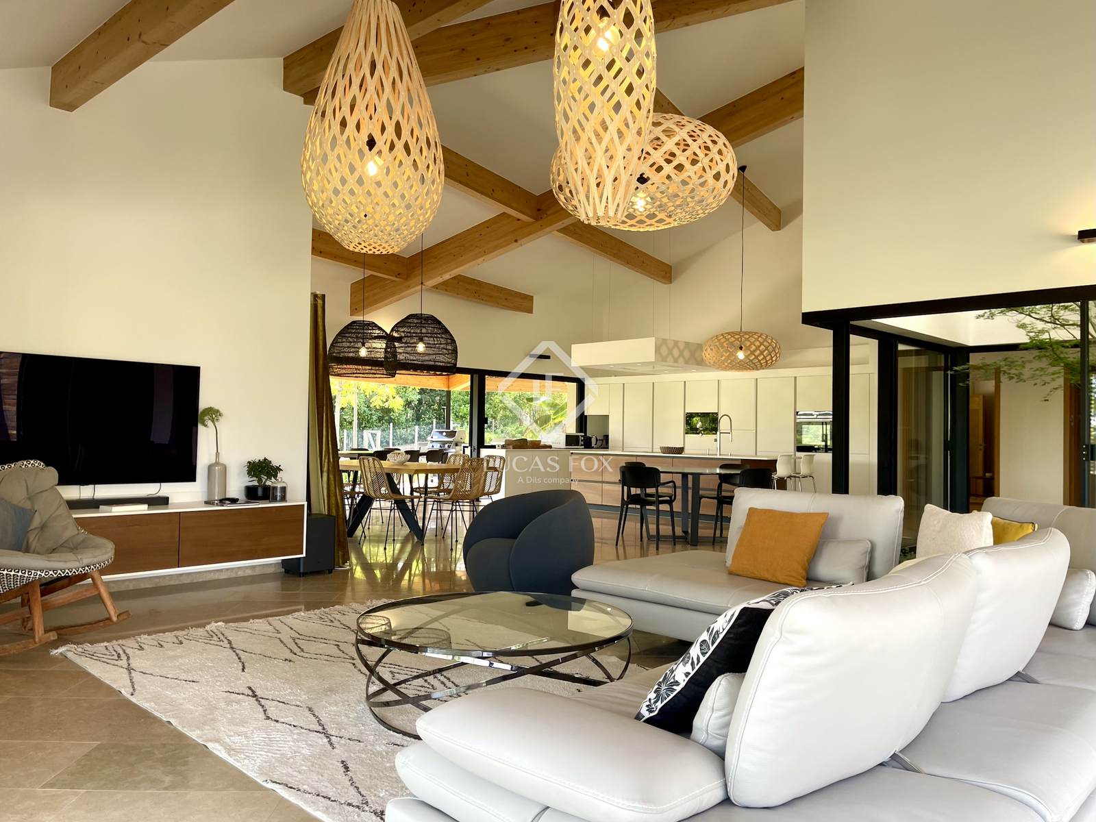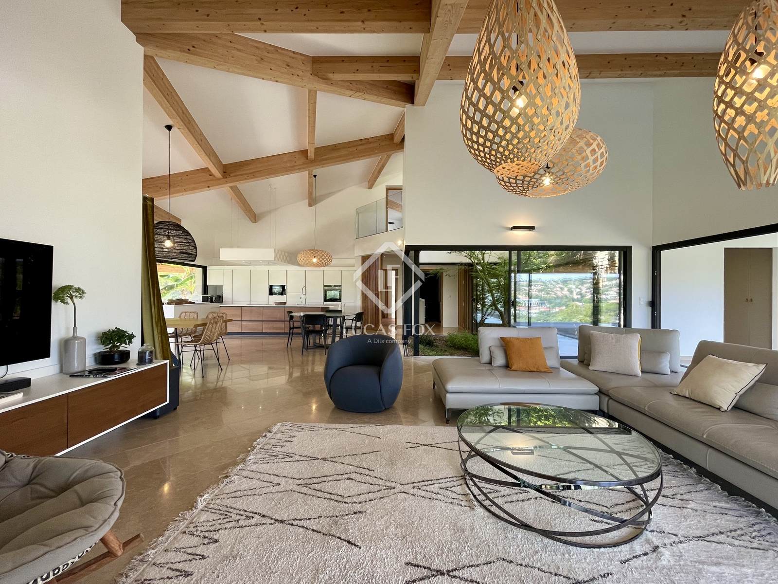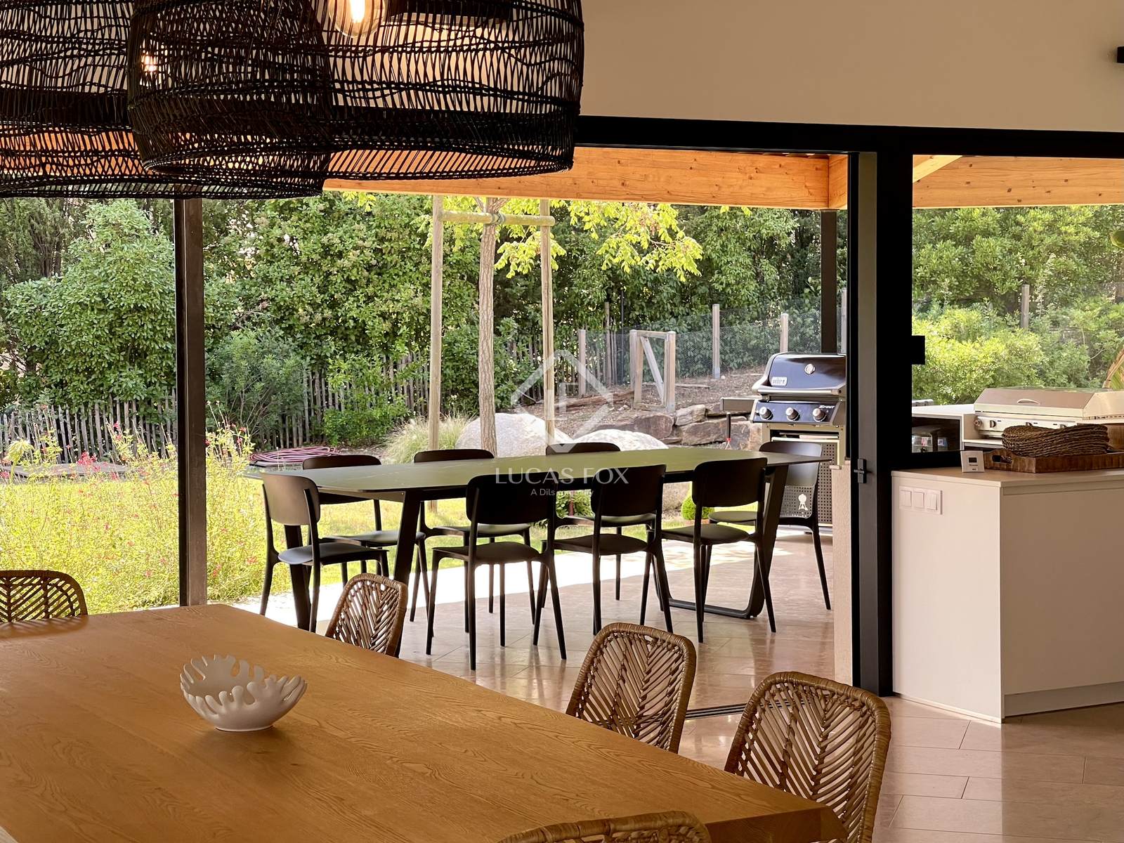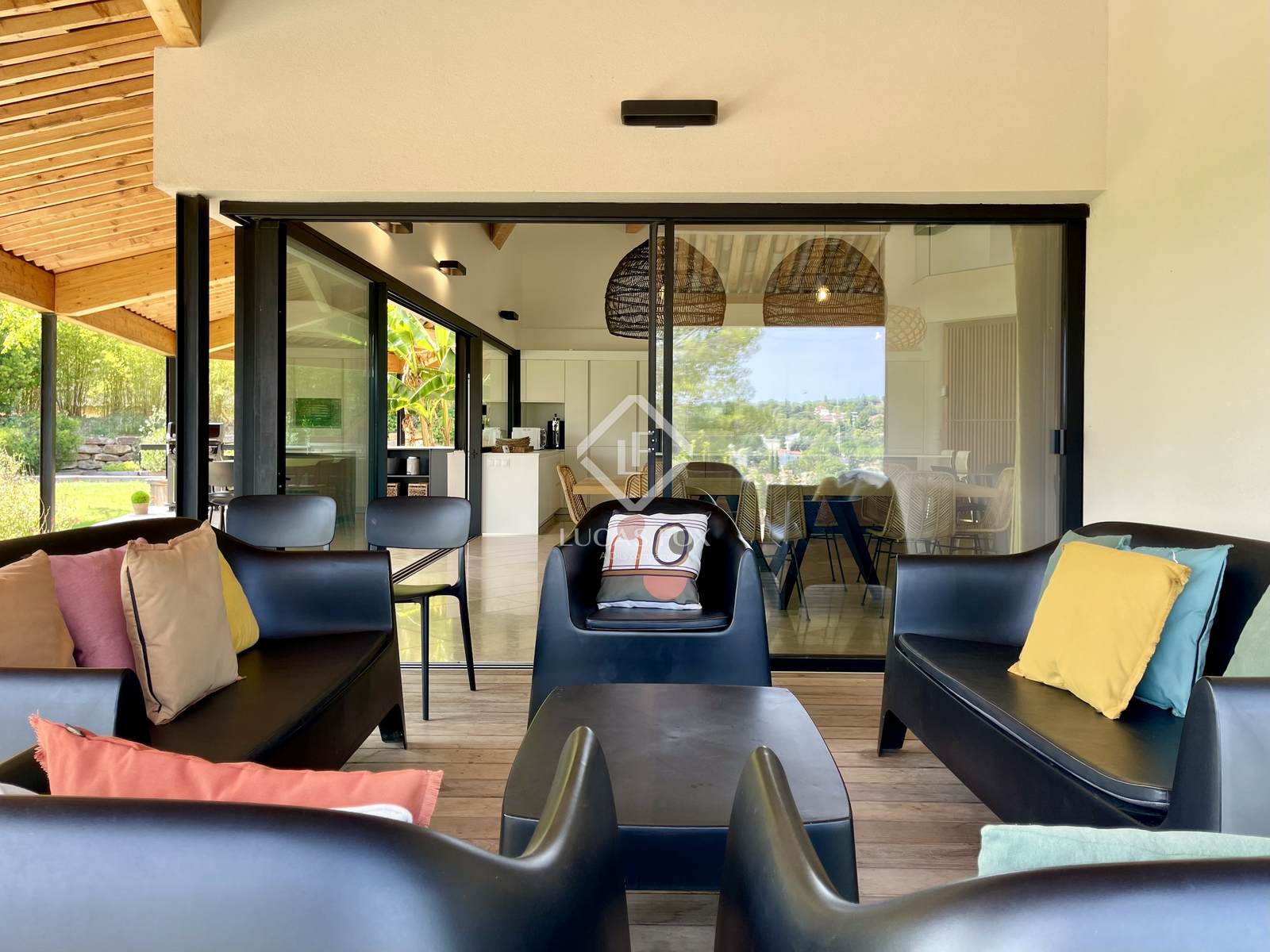 Construída em 2020 em um terreno de 3.000 m², esta propriedade de 400 m² está distribuída principalmente em um nível e se estende por mais de 150 m² de terraços. Os serviços oferecidos oferecem uma excelente qualidade de vida: grandes janelas salientes Technal, domótica, painéis solares, bacia de regulação de águas pluviais, piso radiante e arrefecimento, pé direito duplo e espaços amplos. O pátio arborizado, o lago com cascata e a omnipresença da madeira conferem à casa um ambiente tranquilo.