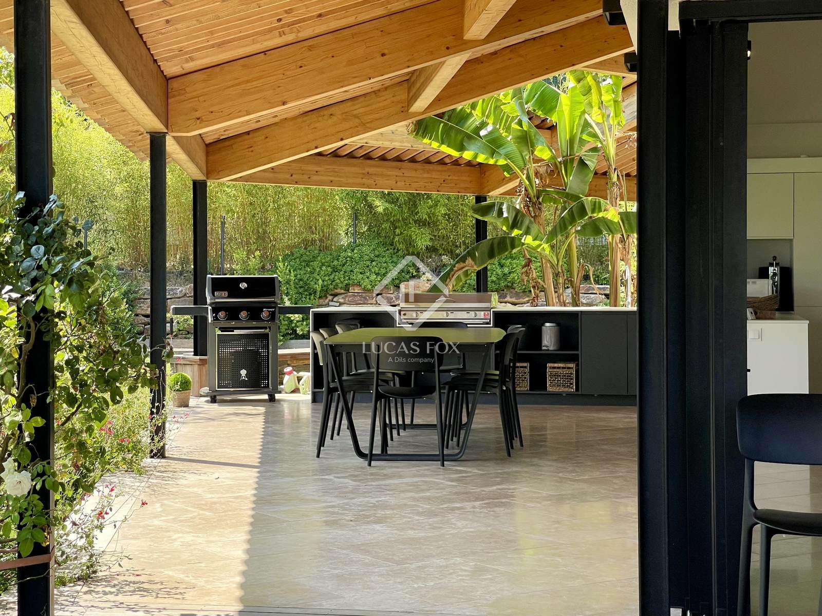 Os vários terraços cobertos prolongam todas as divisões (incluindo os quartos) e permitem um quotidiano com espírito In & Out: sala de estar, sala de jantar e cozinha exterior. Os quartos beneficiam do mesmo conforto. Uma deliciosa horta fica ao lado da cozinha, enquanto um pátio com bananeiras e um pequeno bambuzal dão a impressão de viajar até a suíte master. Aqui os materiais foram escolhidos com muito cuidado, as janelas e as grades de vidro permitem apreciar a vegetação deste cenário de todos os ângulos.