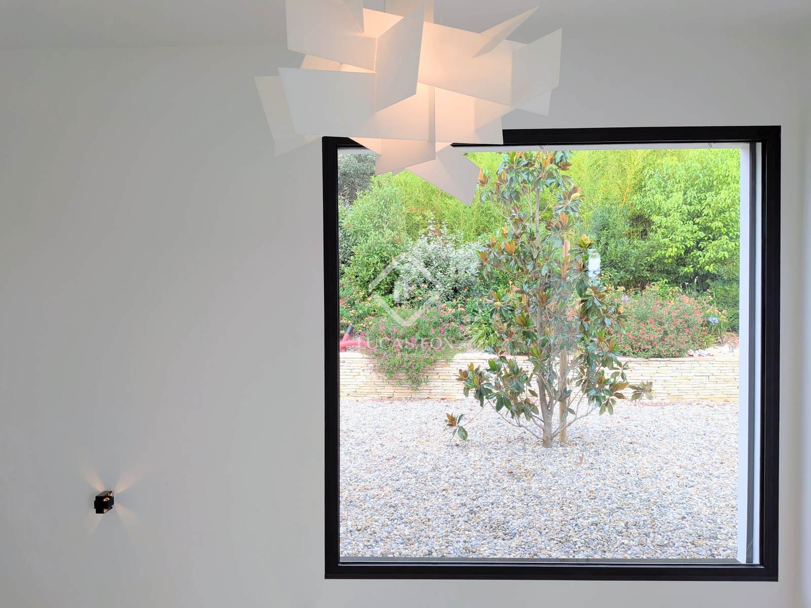 A 5 minutos da rodovia, em posição dominante, propriedade nova excepcional, principalmente em um nível, de 310 m² com acessórios de alta qualidade e seus jardins paisagísticos de 3.600 m², na orla do matagal.