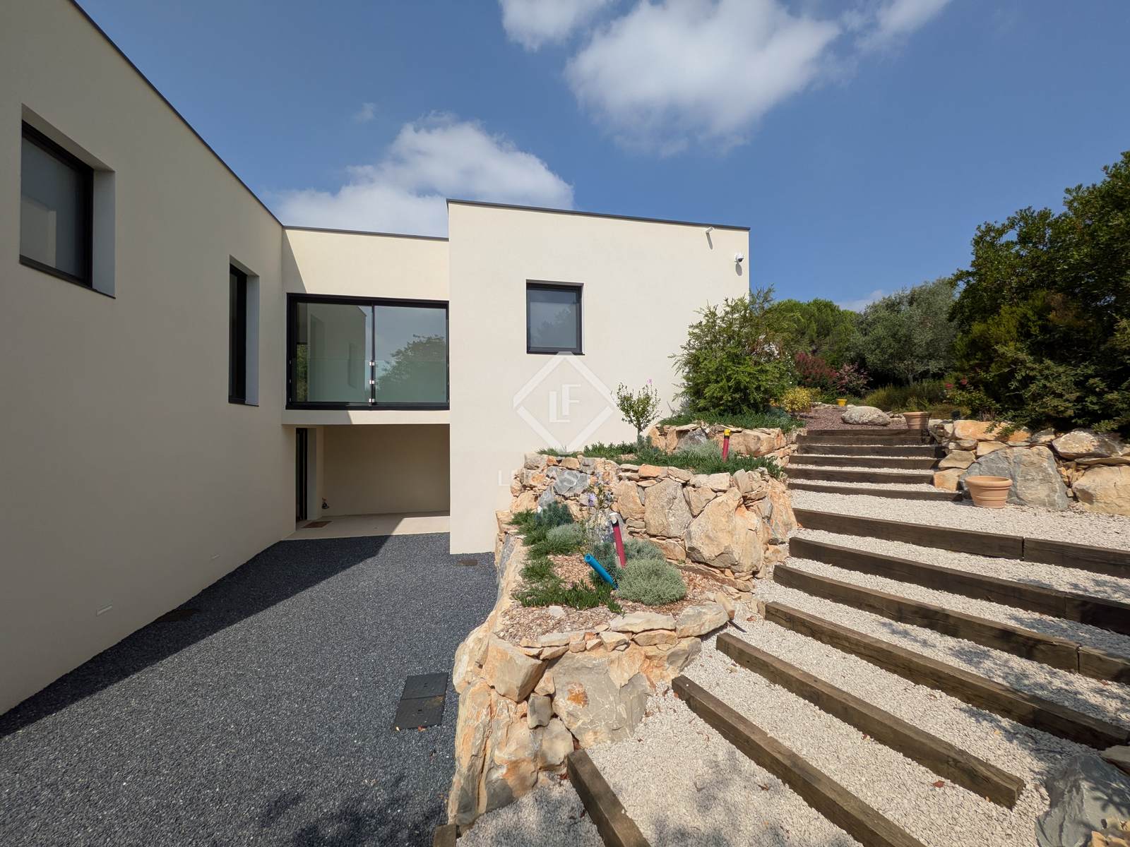 A meio caminho entre Montpellier e Nîmes, a 5 minutos da auto-estrada, propriedade nova excepcional, principalmente em um nível, com seus jardins paisagísticos de 3.600 m²
