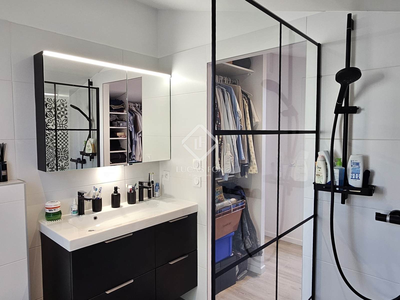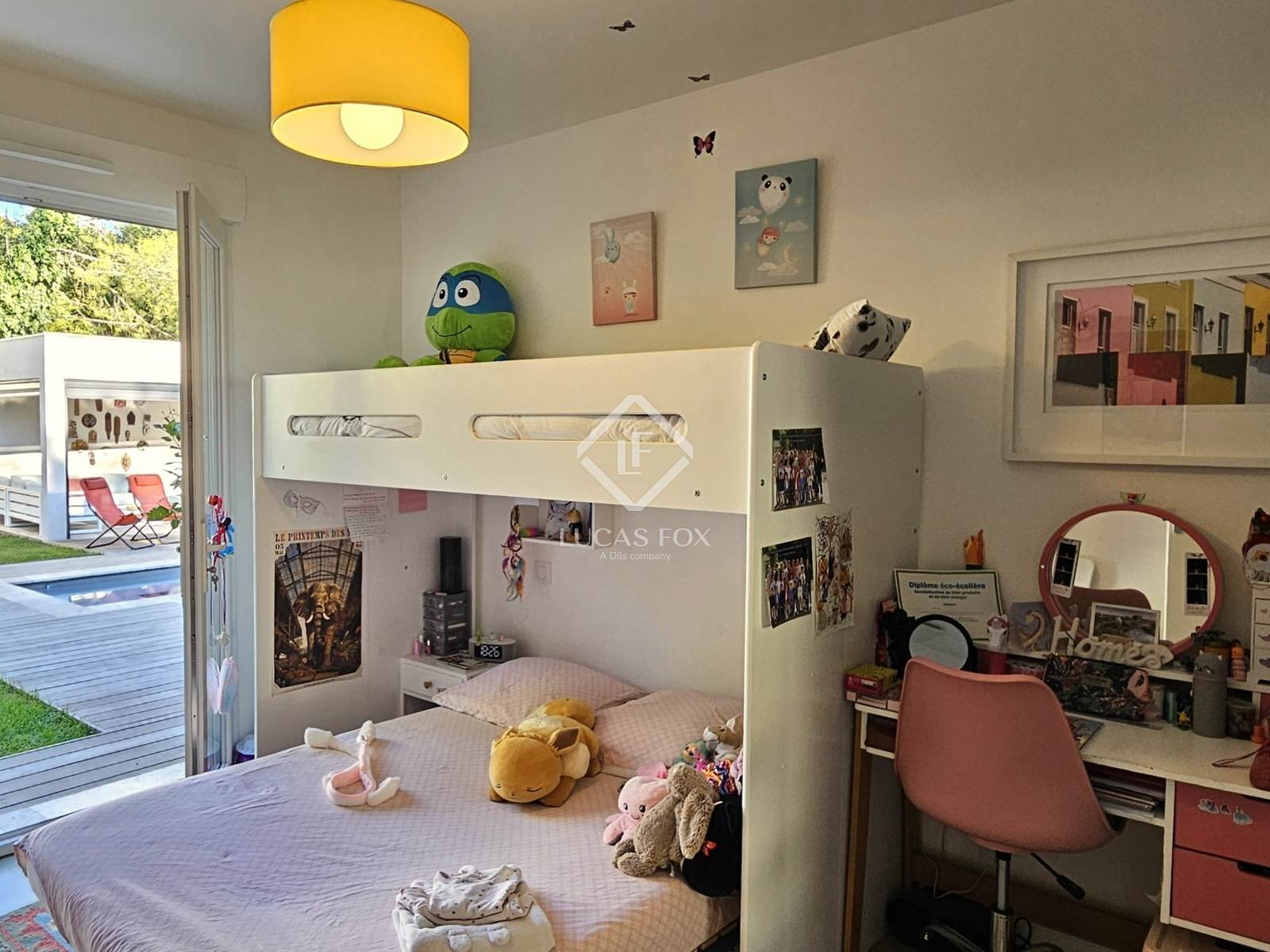 Esta casa, completamente reformada em 2019, destaca-se pelos seus espaços abertos, volumes generosos e pela qualidade dos seus materiais. A sua planta e comodidades bem pensadas proporcionam um excelente conforto: amplo espaço de arrumação, ar condicionado reversível, bomba de calor ar/ar, salamandra a pellets na sala de estar, casa da piscina e duche exterior... As janelas francesas em quase todos os quartos também contribuem para o conforto do local. Além de um mezanino com quarto e casa de banho, é possível considerar viver num único piso.