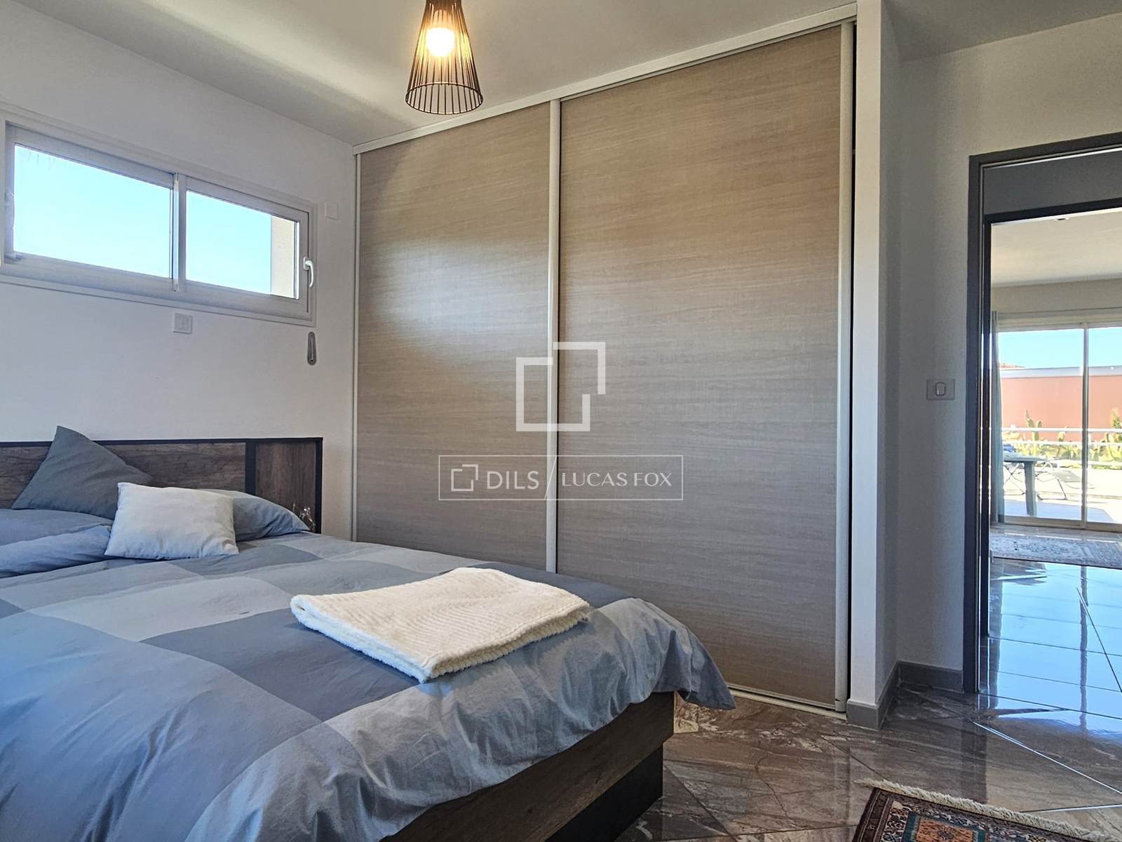 Separado do piso inferior por uma entrada independente no topo da escada, o piso superior compreende uma cozinha totalmente equipada que se abre para a sala de estar/jantar, dois quartos, um banheiro com chuveiro, um lavabo e uma despensa/lavanderia equipada. A sala de estar se abre para um encantador terraço de 29 m² com vista para os vinhedos circundantes e para a montanha Pic Saint-Loup.