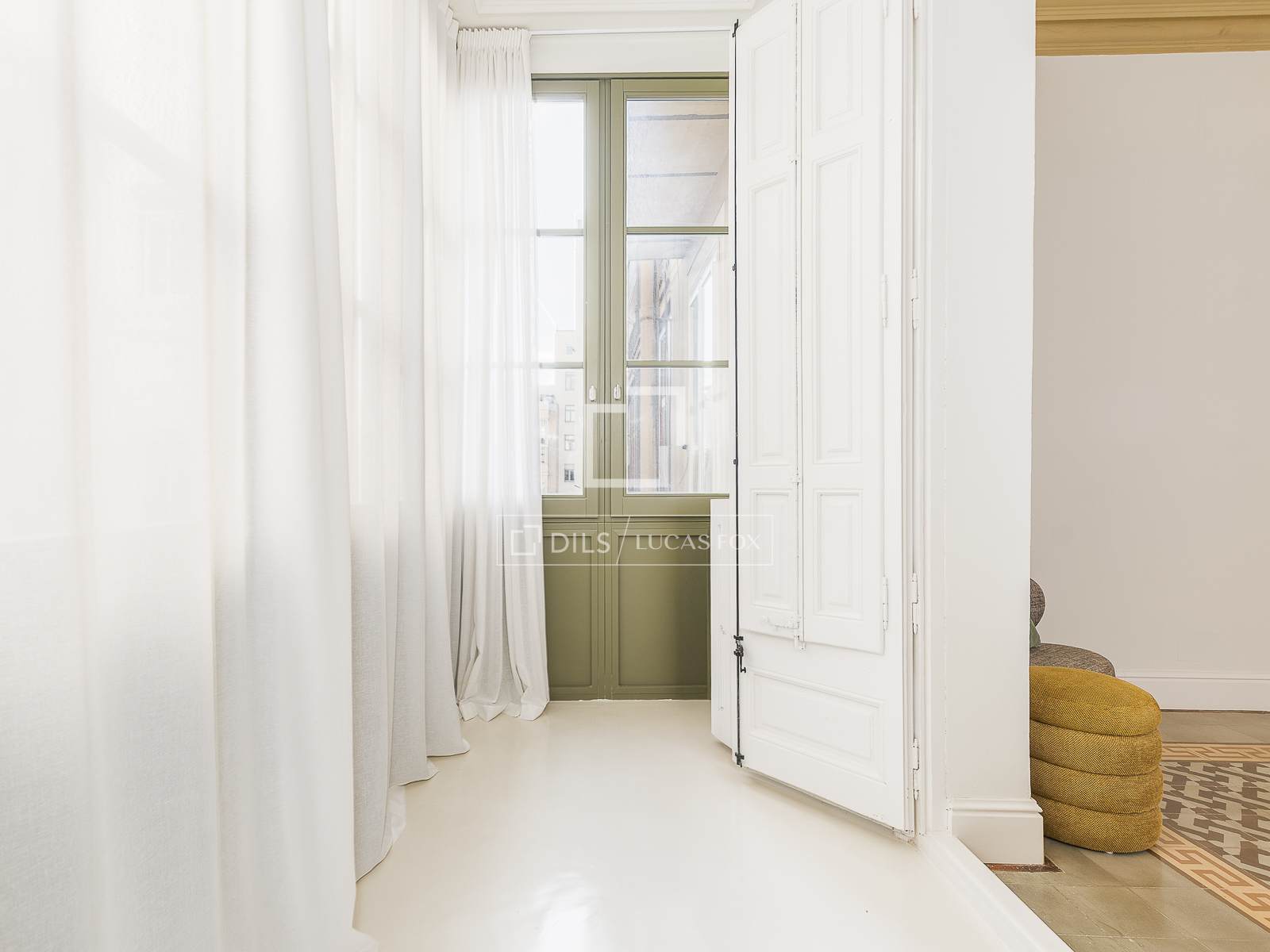 Luxuoso apartamento reformado de 190 m² na exclusiva área de Eixample, em Barcelona. Especificamente, está localizado na prestigiosa esquina da Rua Girona com a Gran Vía de las Cortes Catalanas, em um espetacular edifício de esquina de estilo clássico que se destaca por sua fachada imponente, entrada elegante e serviço de concierge.