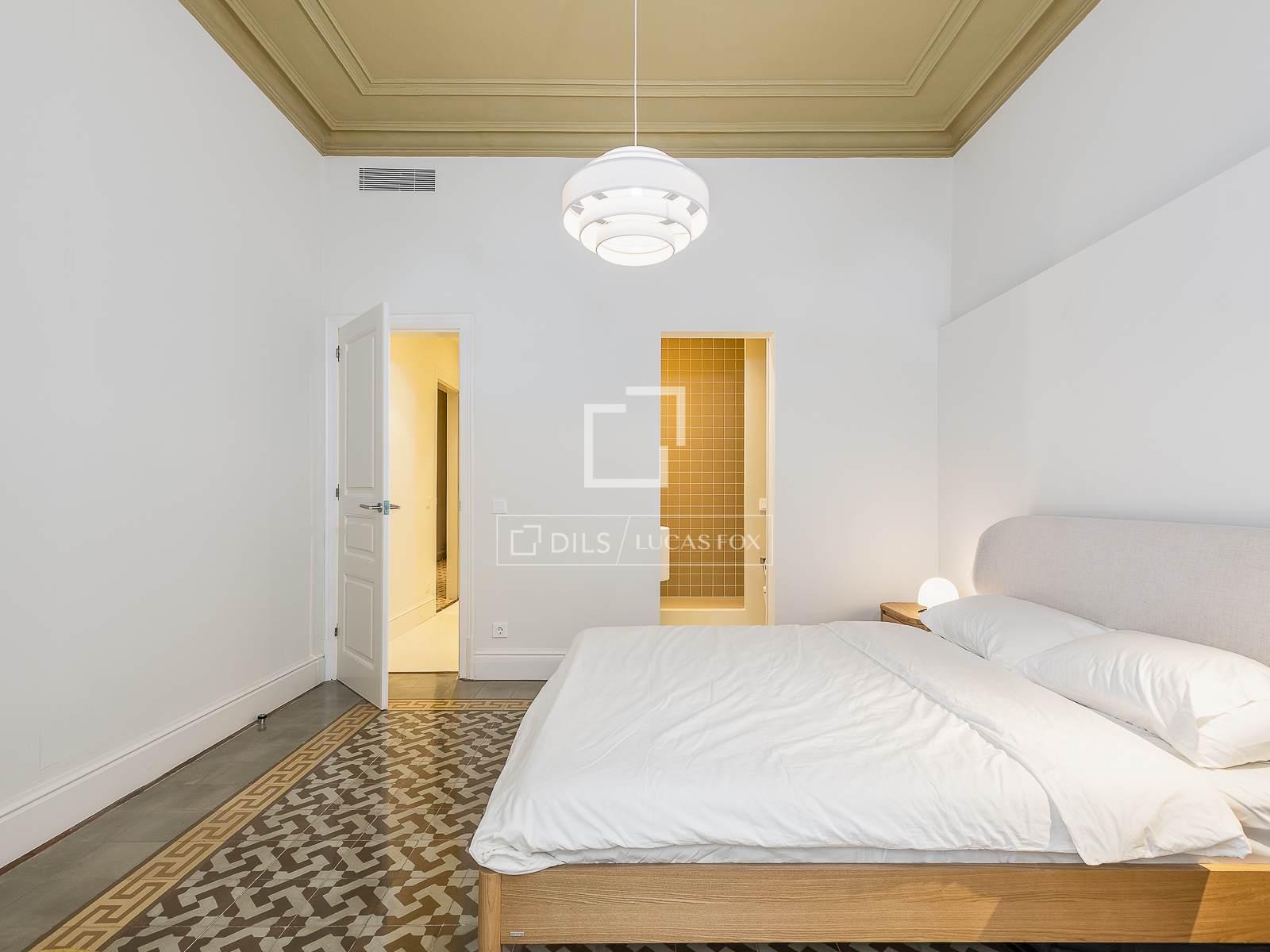 Durante o processo de renovação, os tetos originais com molduras delicadas do início do século foram preservados, combinados com pisos Nolla restaurados e microcimento de estilo contemporâneo. Da mesma forma, a madeira original foi restaurada para preservar o charme histórico do edifício.