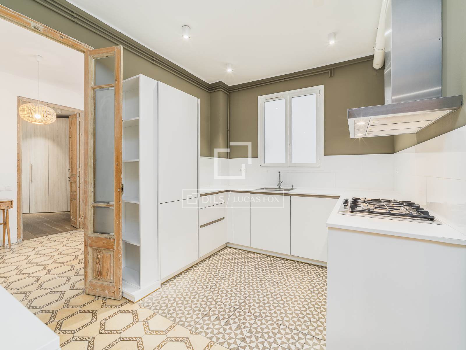 Apresentamos este imóvel no coração do bairro Eixample, um luminoso apartamento de 91 m² localizado a poucos passos da Plaza de España e com excelentes ligações de metrô e ônibus.