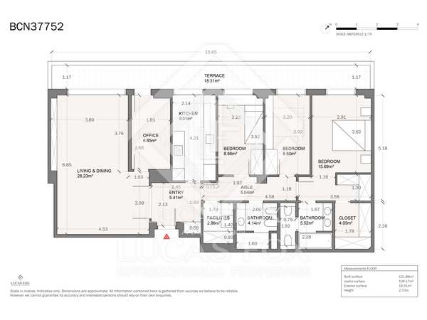 Localizado no primeiro andar (segundo andar em termos americanos/britânicos), o apartamento caracteriza-se pela sua excepcional luminosidade natural e por uma planta concebida para o máximo conforto. A espaçosa e elegante sala de estar principal abre-se para um terraço ensolarado com vistas agradáveis para a vegetação exuberante do parque, criando uma atmosfera de serenidade e exclusividade.