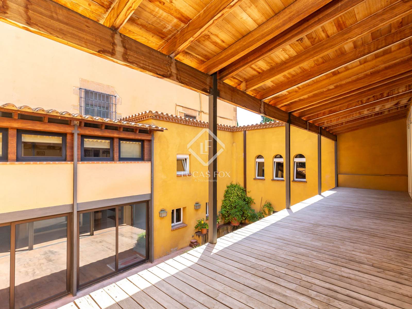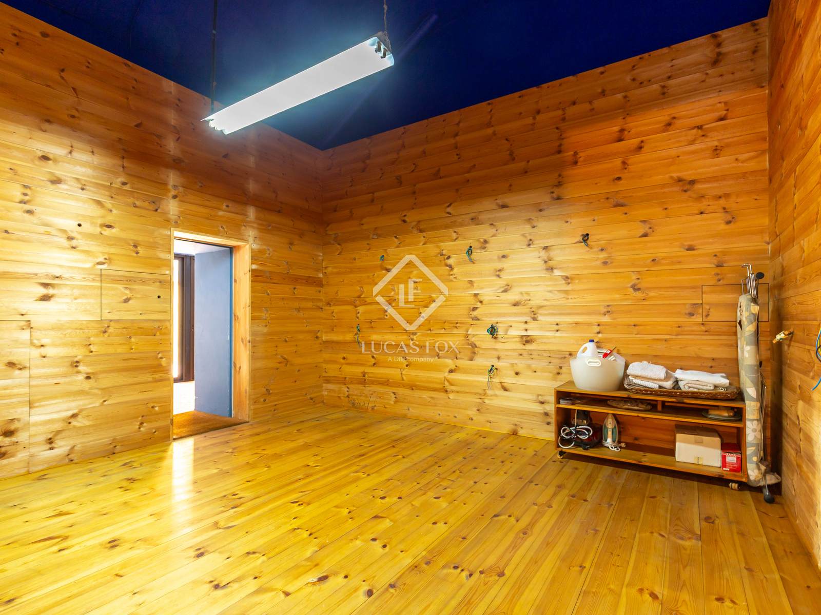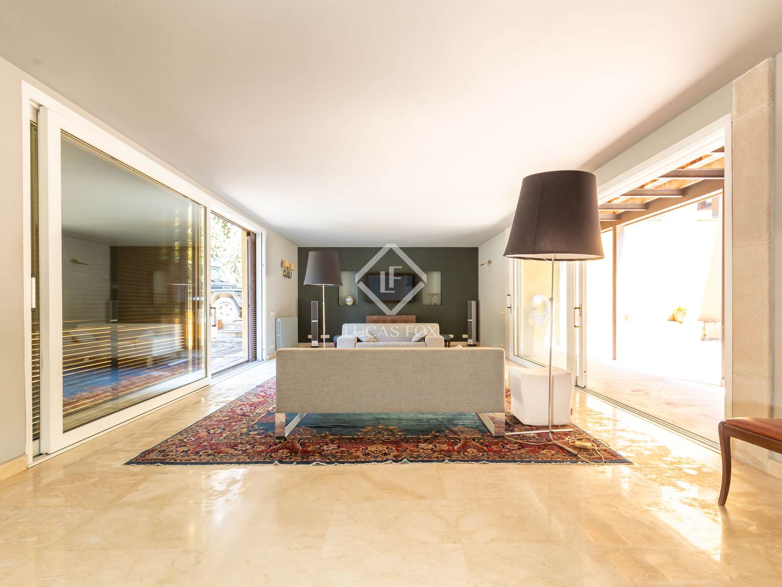 O acesso à casa é feito a partir do jardim compartilhado por uma área de cascalho no nível do solo. Um amplo hall de entrada nos recebe, oferecendo belas vistas e acesso ao pátio central com terraço de 60 m² e a uma varanda de 23 m², ao redor da qual se abrem os diferentes cômodos da propriedade, como nas antigas casas romanas. O hall de entrada possui guarda-roupas embutidos e apresenta a escada principal de madeira que leva ao primeiro andar. O banheiro de hóspedes com chuveiro está localizado neste mesmo espaço. O hall de entrada leva a duas salas de estar espaçosas. A convidativa sala de estar e jantar formal de dois níveis, com piso em parquet de mogno e uma escada secundária, ideal para o inverno, desfruta de vistas do jardim compartilhado e privativo de um lado e do pátio do outro. Este espaço se comunica diretamente com a cozinha e a espetacular biblioteca. A biblioteca se destaca por seu teto alto, composto por uma abóbada de berço e uma grande janela voltada para o sul, por onde flui a luz natural, tornando-a um espaço ideal para ler, ouvir música ou relaxar. A casa tem um segundo acesso a partir do hall da área comum através da biblioteca mencionada anteriormente, pois está localizada na seção central da casa de fazenda palaciana. Uma sala multiuso com paredes revestidas de madeira conecta a biblioteca e a sala de jantar da família. A sala de jantar diária ou familiar se abre através de grandes portas francesas para o pátio central, inundando-o com luz natural. É adjacente à cozinha confortável com janelas com vista para o pátio e dois balcões de café da manhã paralelos, ideais para cozinhar com luz natural. A cozinha também tem acesso direto à sala de jantar formal. Do hall de entrada, você pode acessar a segunda sala de estar espaçosa, que está localizada do outro lado do pátio, em frente à sala de jantar da família. Esta sala de estar maravilhosa e convidativa possui pisos de mármore e grandes portas francesas, permitindo que o espaço interno-externo flua perfeitamente, tanto para o pátio quanto para o jardim privativo, que está conectado a um terraço de 29 m² com deck de madeira a oeste, ideal para uma área de relaxamento. É um espaço ideal para as noites de verão e para desfrutar do jardim. O térreo é completado por uma garagem privativa para dois carros, motos e bicicletas, dois depósitos e uma escada de serviço com um corredor que leva à sala de jantar da família.