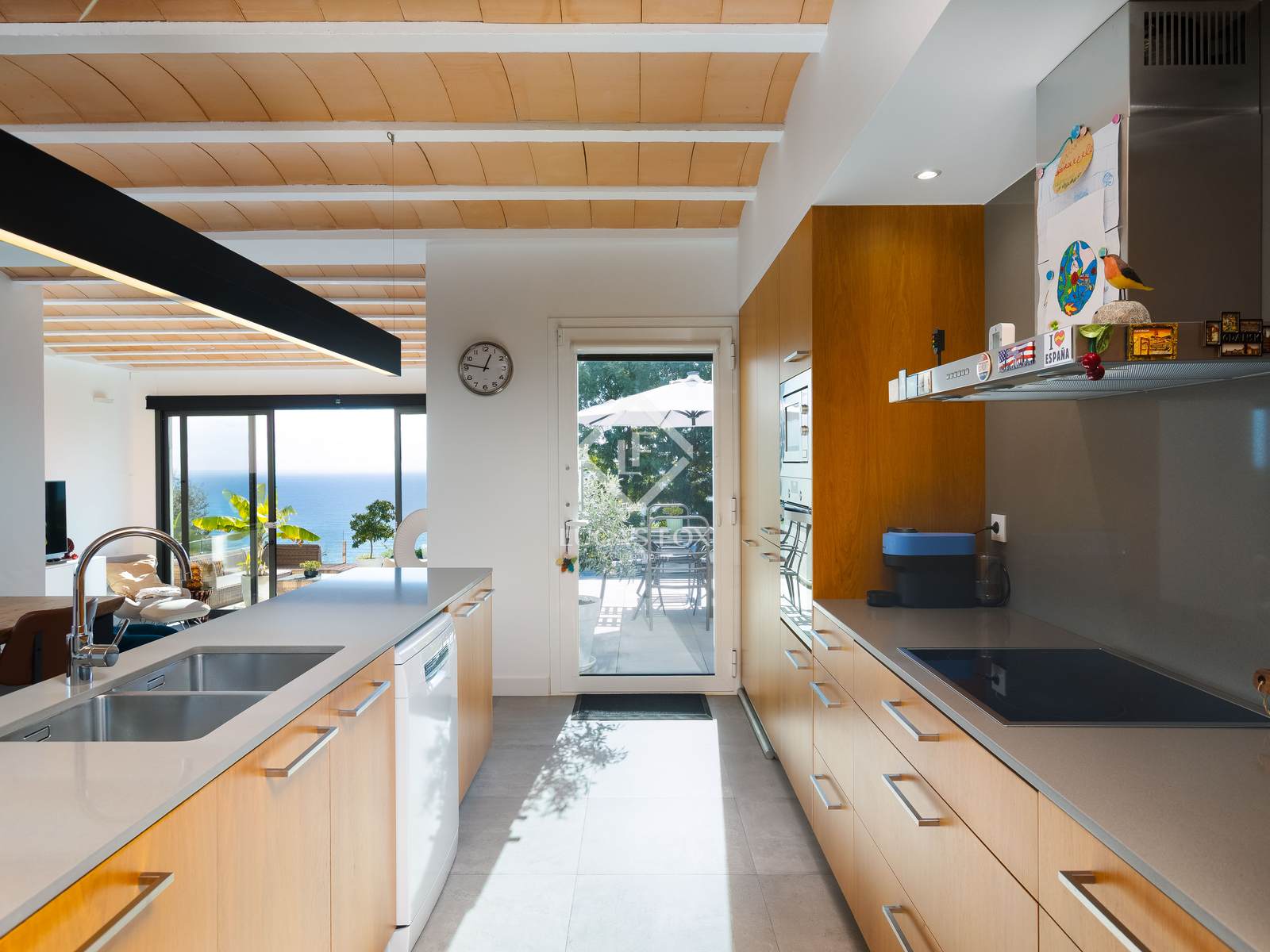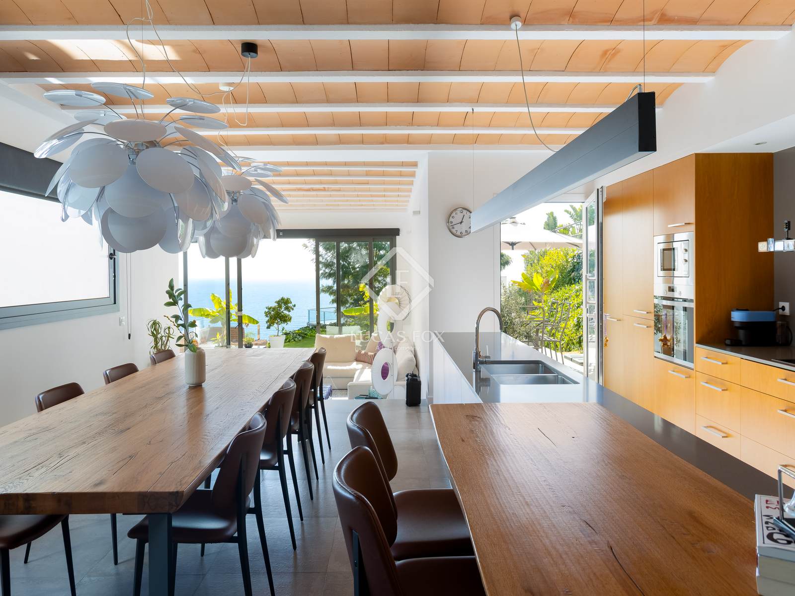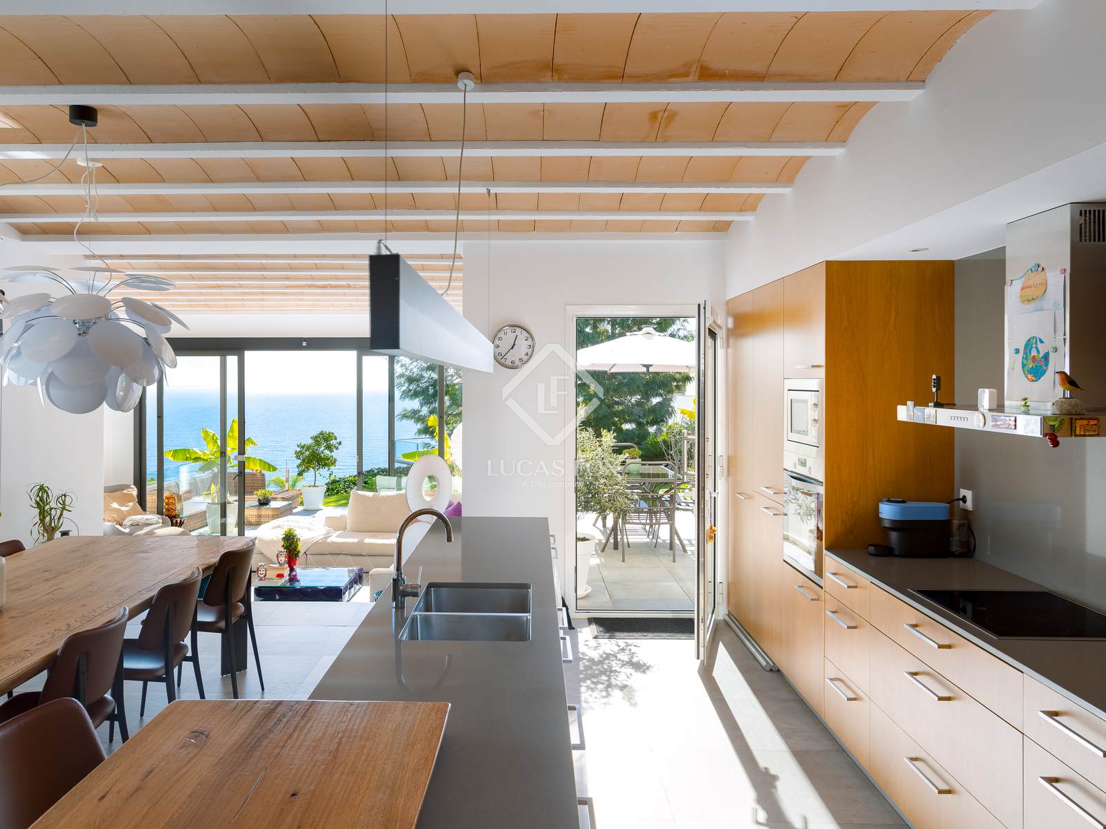 No térreo, há uma encantadora garagem para dois carros e amplo espaço de armazenamento. O primeiro andar foi projetado para uma vida confortável, apresentando uma sala de estar espetacular com tetos abobadados catalães, janelas impressionantes, lareira e uma integração perfeita entre a sala de estar e a cozinha americana. De todos os cantos deste andar, você pode desfrutar de vistas deslumbrantes para o mar.