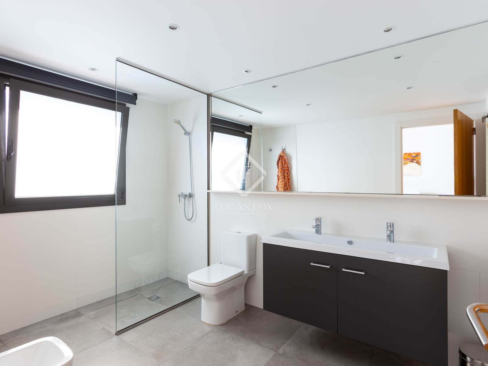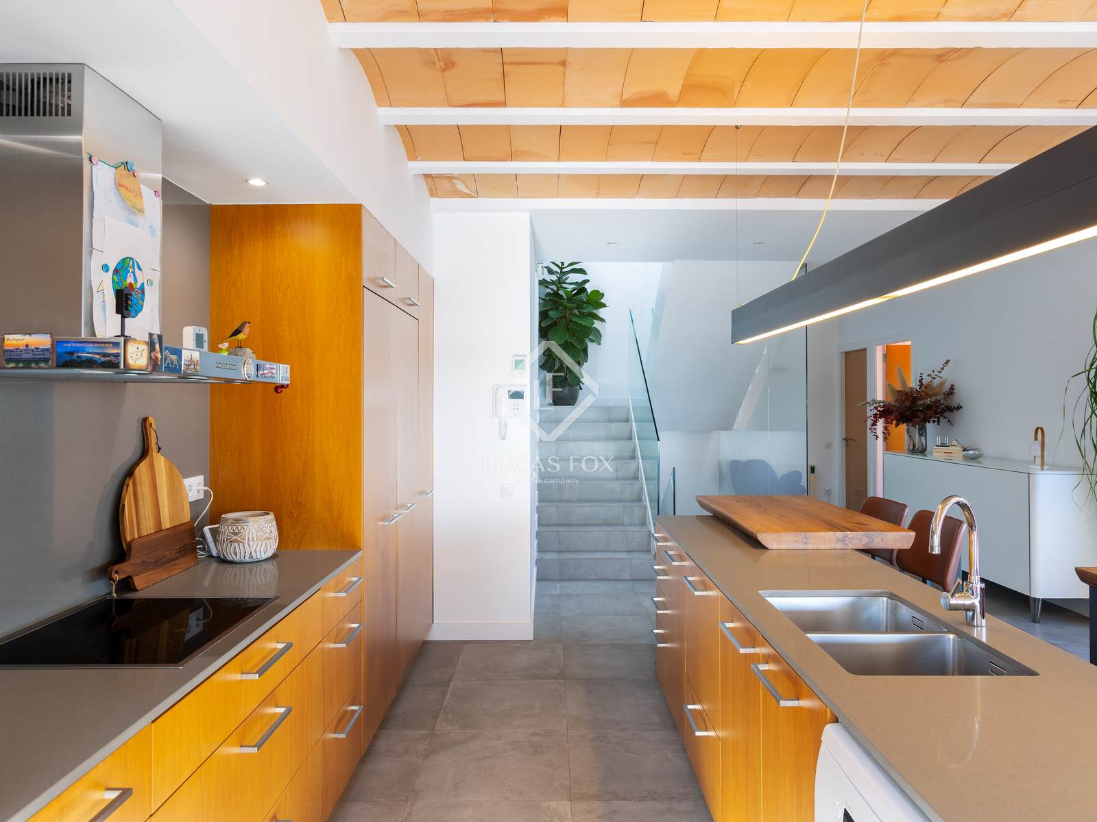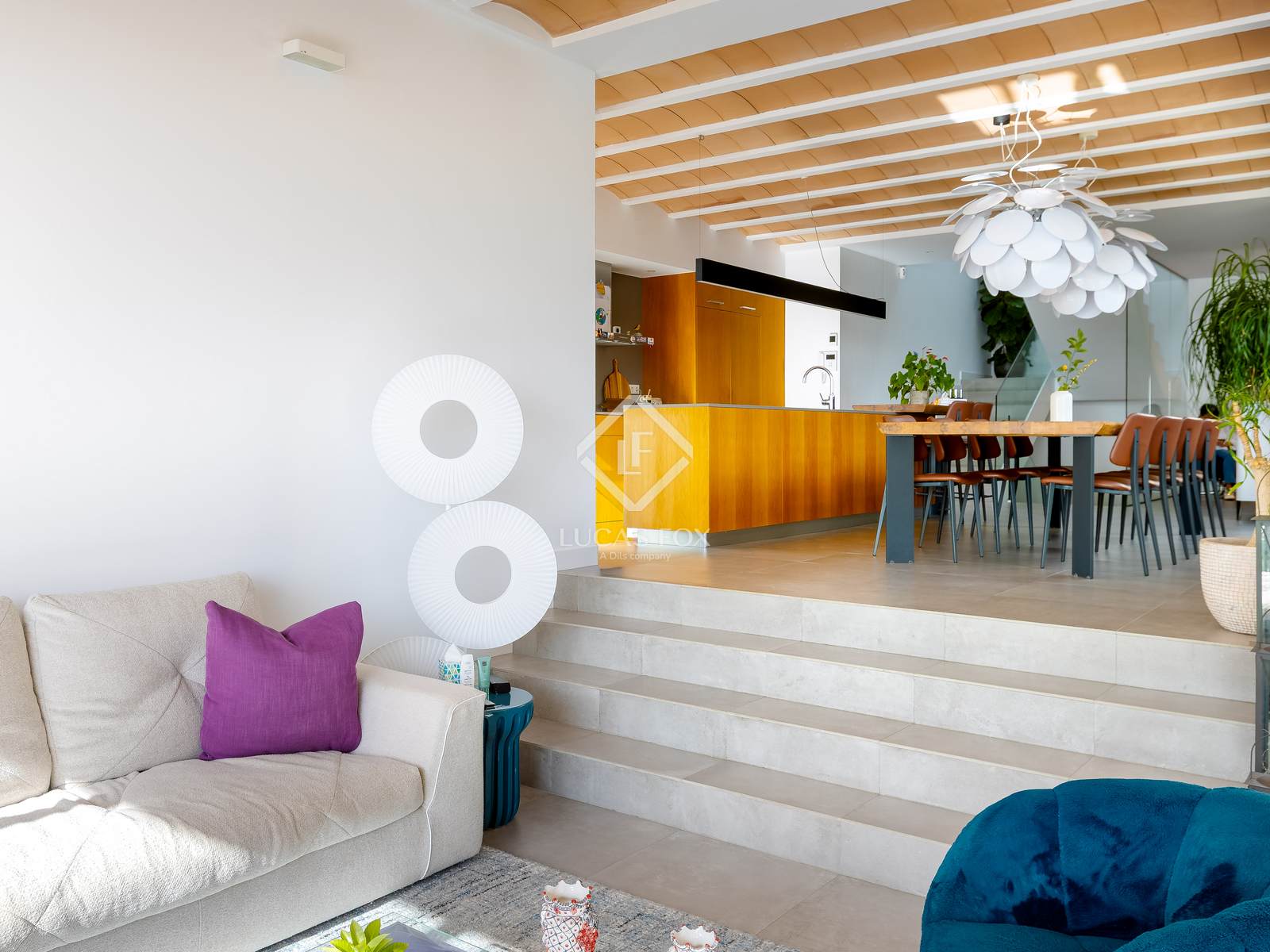 No térreo, há uma encantadora garagem para dois carros e amplo espaço de armazenamento. O primeiro andar foi projetado para uma vida confortável, apresentando uma sala de estar espetacular com tetos abobadados catalães, janelas impressionantes, lareira e uma integração perfeita entre a sala de estar e a cozinha americana. De todos os cantos deste andar, você pode desfrutar de vistas deslumbrantes para o mar.