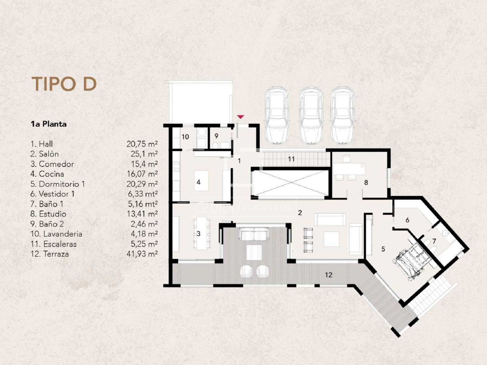 - Estacionamento coberto com capacidade para três veículos.