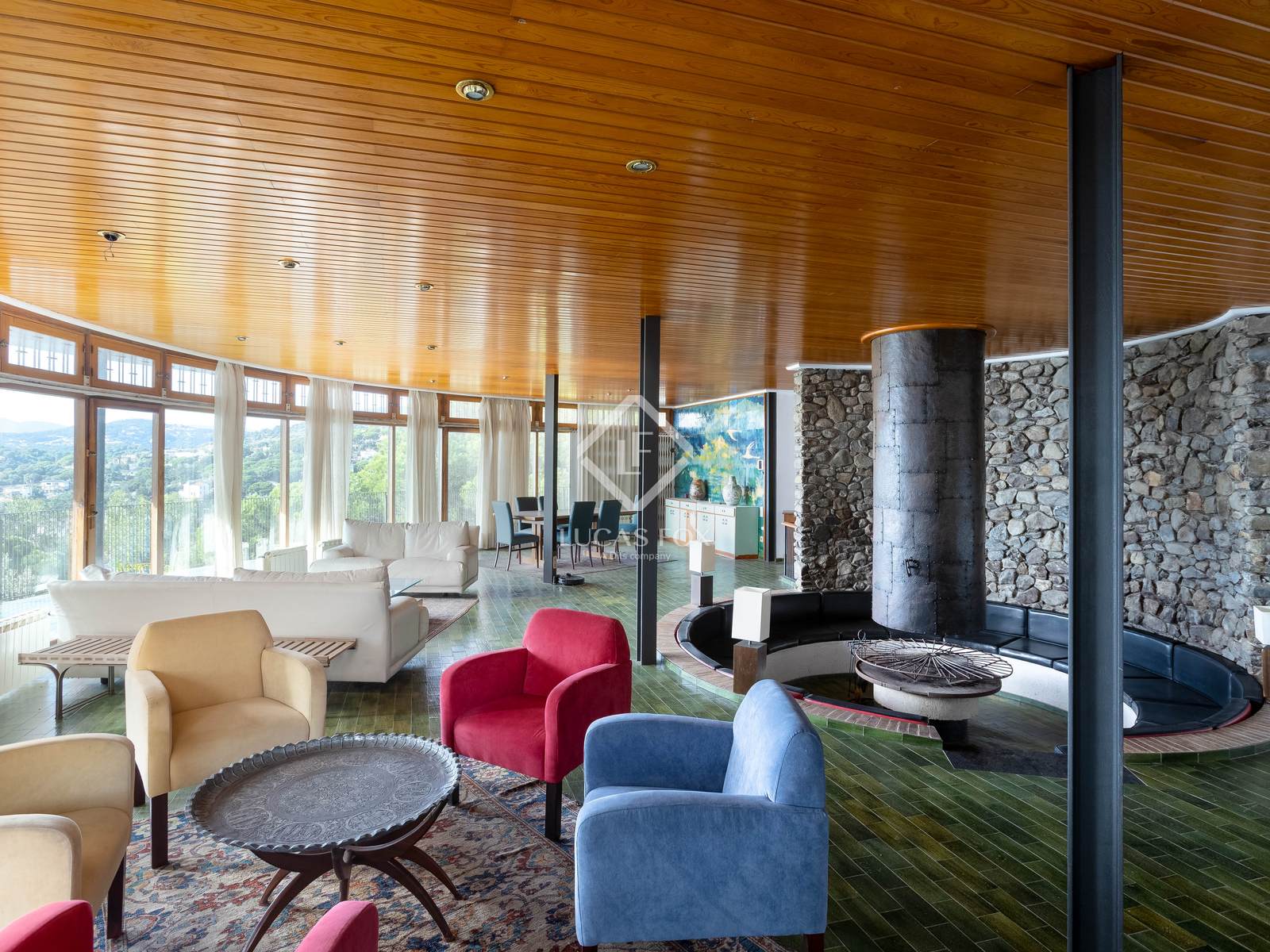 Projetada pelo renomado arquiteto Mario Català Nebot, esta extraordinária villa de formato circular em Sant Pol de Mar está situada em um terreno elevado de 13.000 m² com vistas panorâmicas deslumbrantes para o mar.