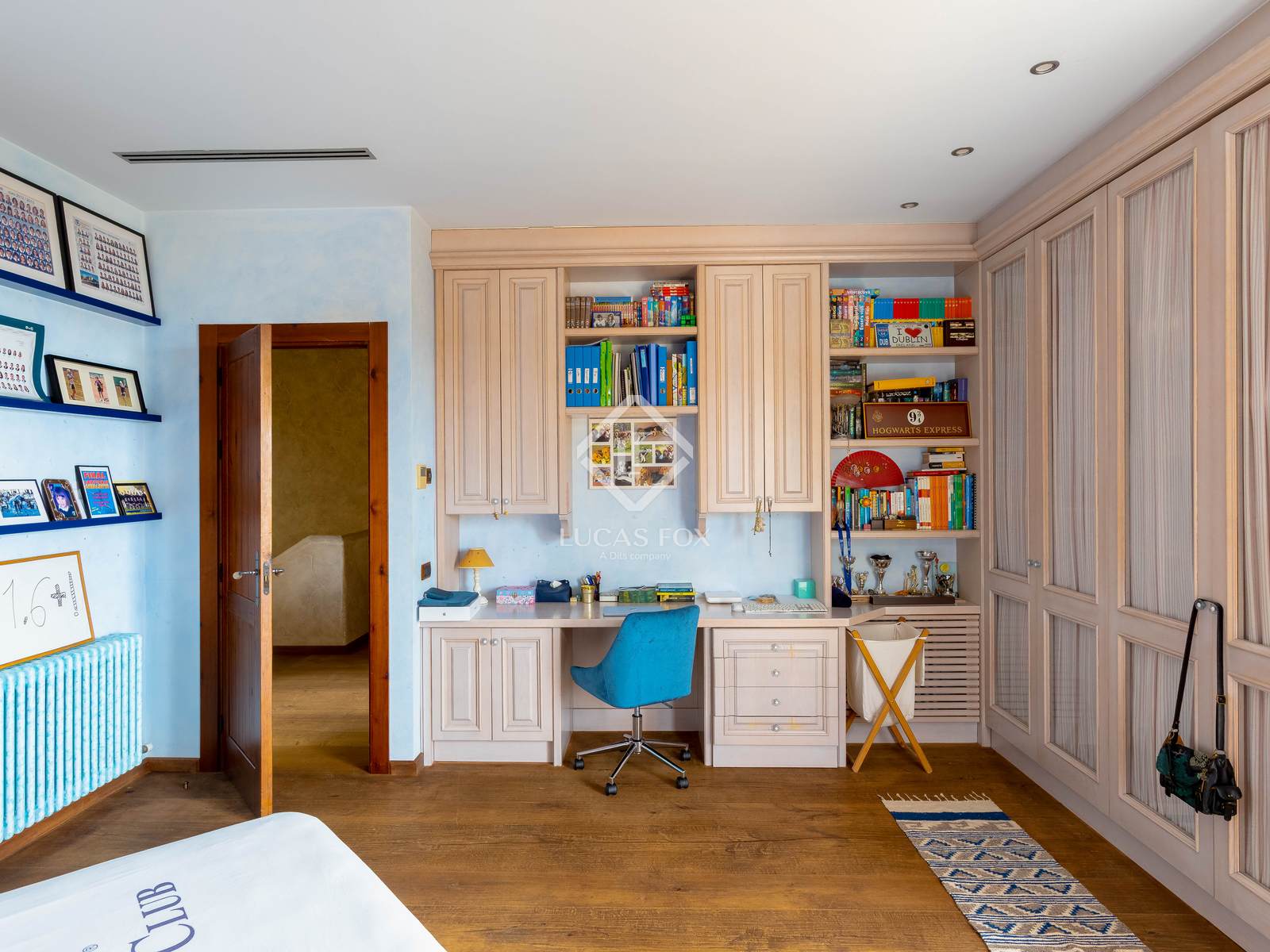 O andar superior, dedicado ao relaxamento, abriga uma ampla suíte máster com closet, terraço privativo e banheiro com jacuzzi. Inclui também outra suíte com terraço privativo, um quarto de casal e um escritório.