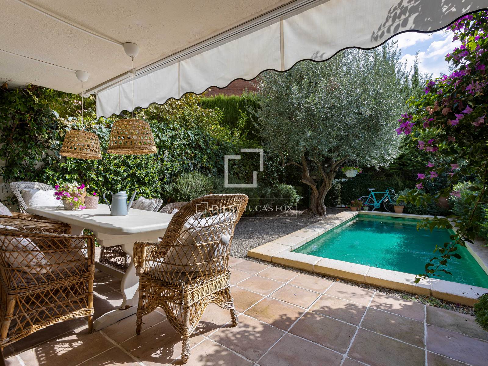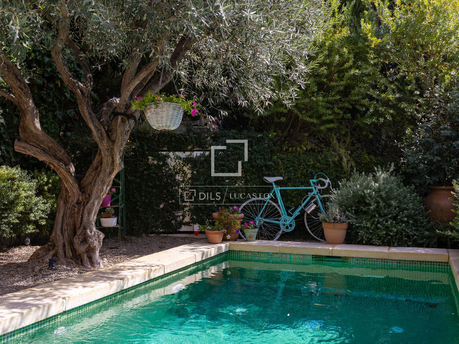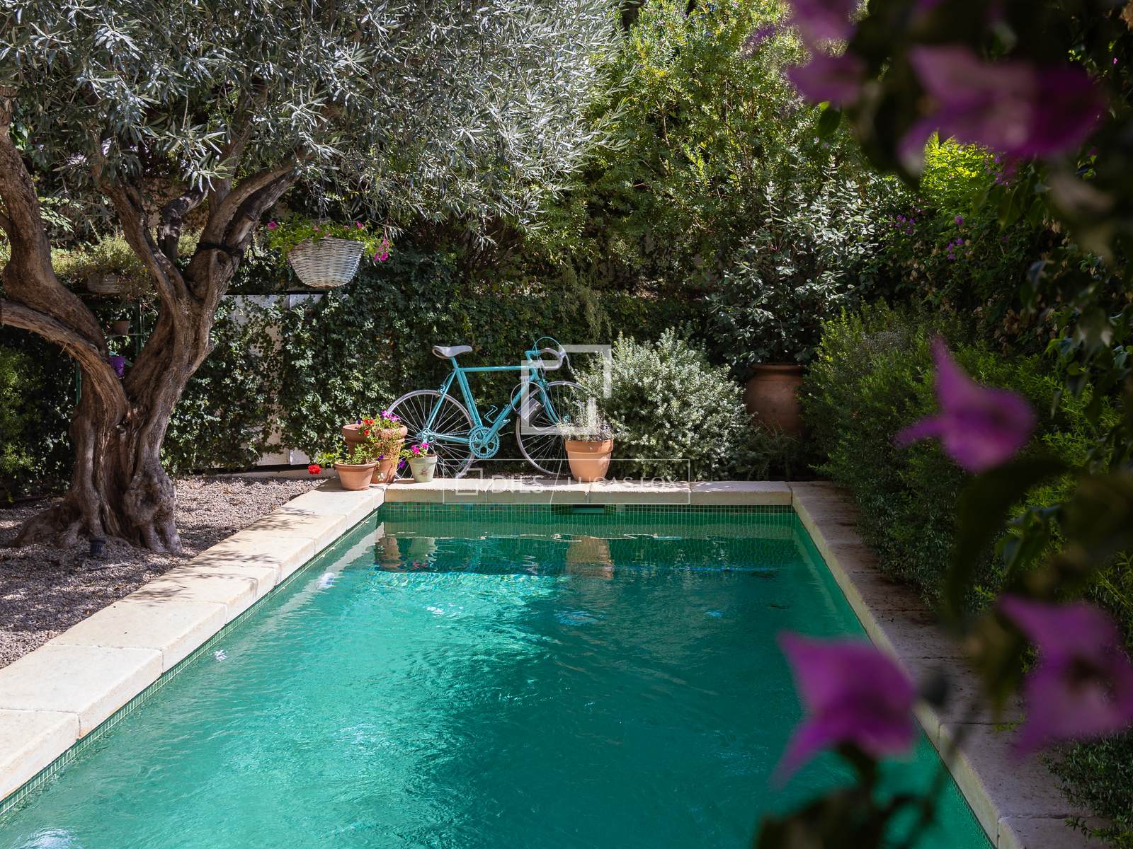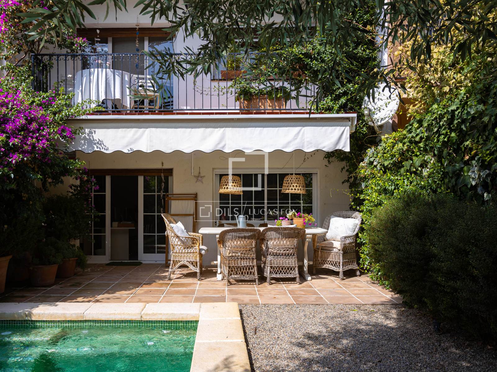 No exterior, a propriedade dispõe de um encantador jardim privado e área de piscina, ideal para desfrutar do clima mediterrâneo num ambiente íntimo e relaxante.
