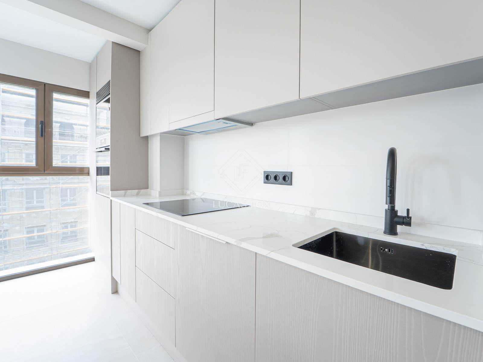 A cozinha está equipada com eletrodomésticos de última geração e uma ilha móvel para maior conforto e funcionalidade. A suíte principal possui banheiro privativo e vistas maravilhosas da Catedral de São Nicolau, enquanto o segundo e o terceiro quartos compartilham um elegante banheiro completo. Há também um lavabo separado, guarda-roupas embutidos e ar-condicionado integrado para maior conforto.