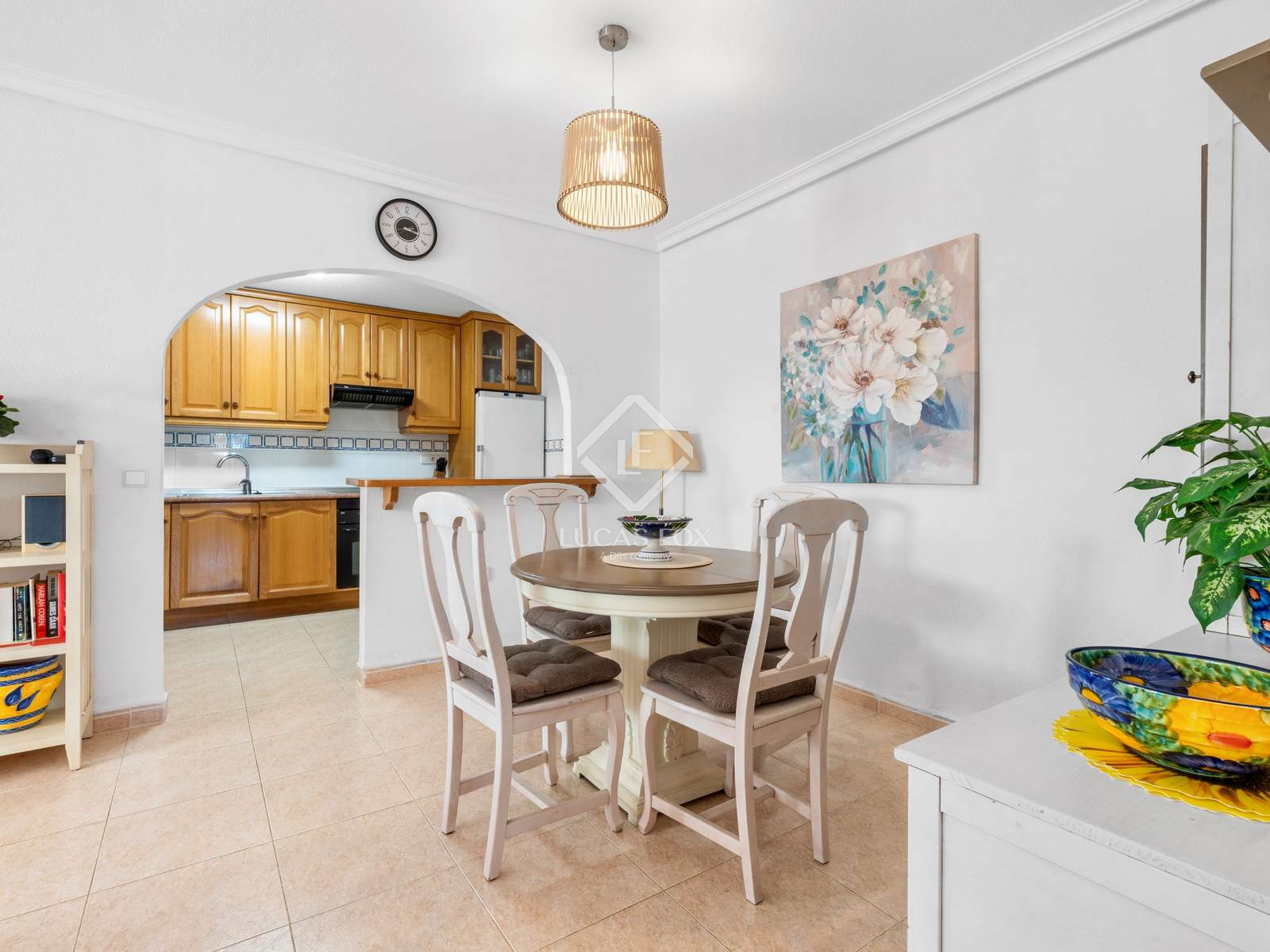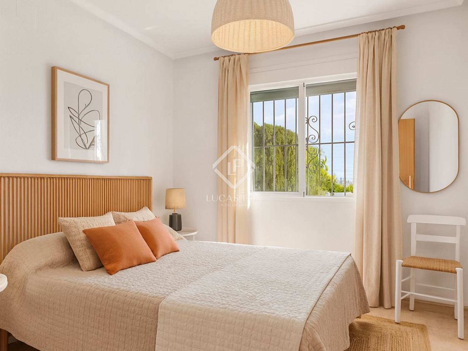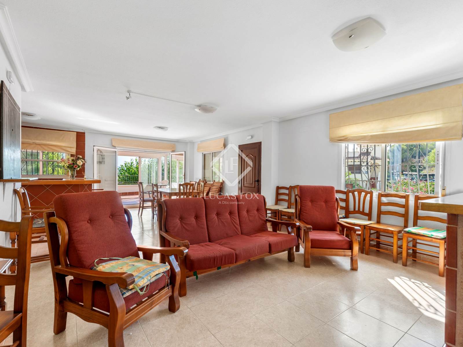 A casa é muito acolhedora e destaca-se pela sua luminosidade e amplitude. A sala de estar principal abre-se para um agradável terraço coberto que funciona como uma extensão natural do interior, e de lá se acede ao amplo jardim. As grandes janelas do chão ao teto não só inundam o espaço com luz natural, como também criam uma ligação direta com o exterior, ideal para desfrutar do clima mediterrânico durante todo o ano. Este jardim de dimensões generosas torna-se o local perfeito para reuniões familiares, celebrações ou momentos de relaxamento num ambiente privado e sereno.