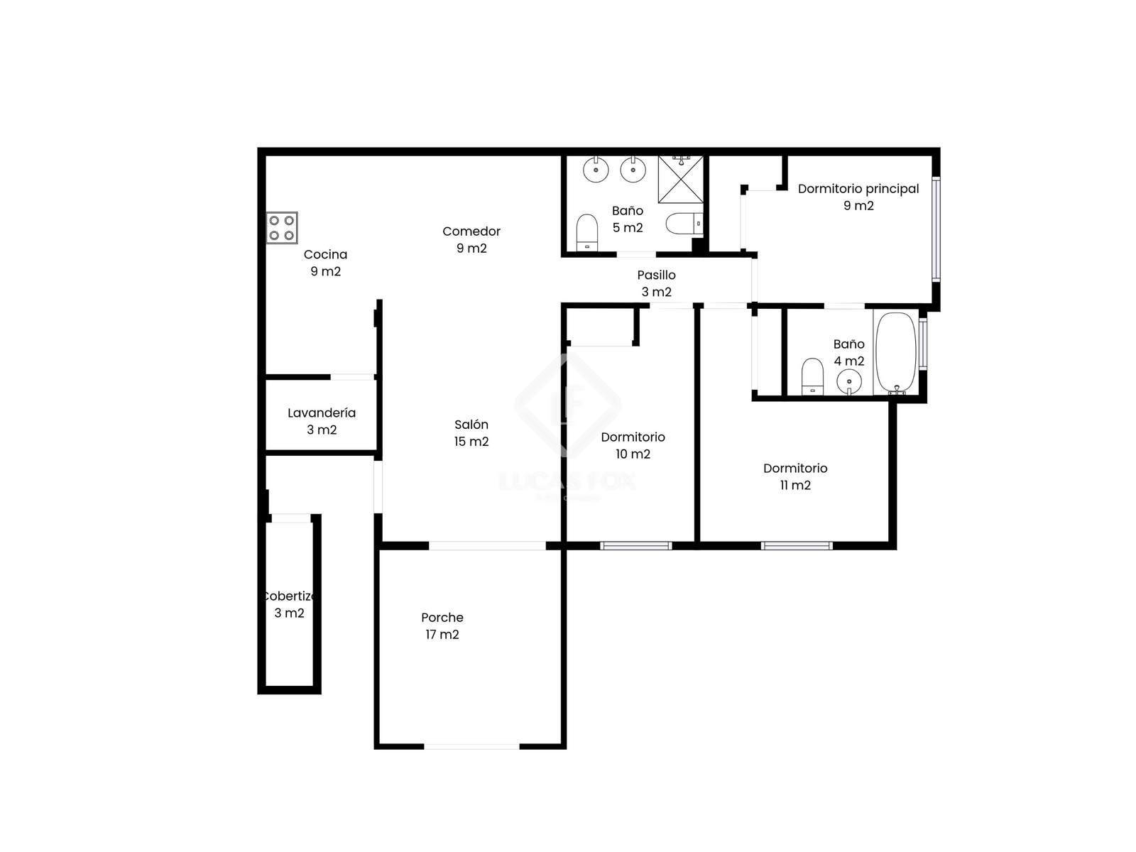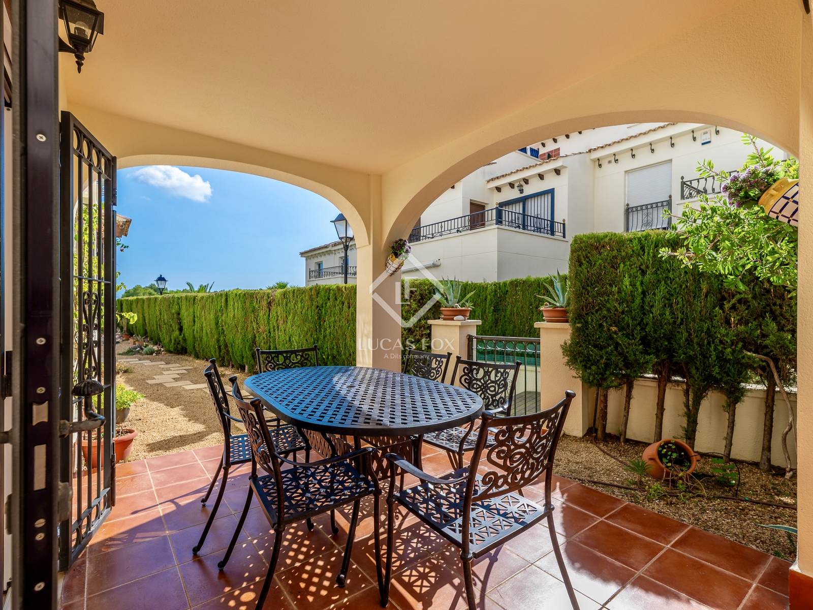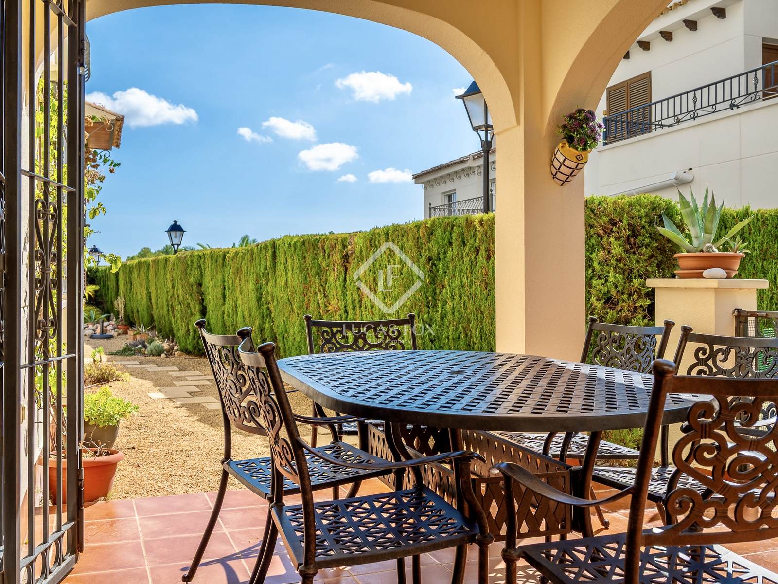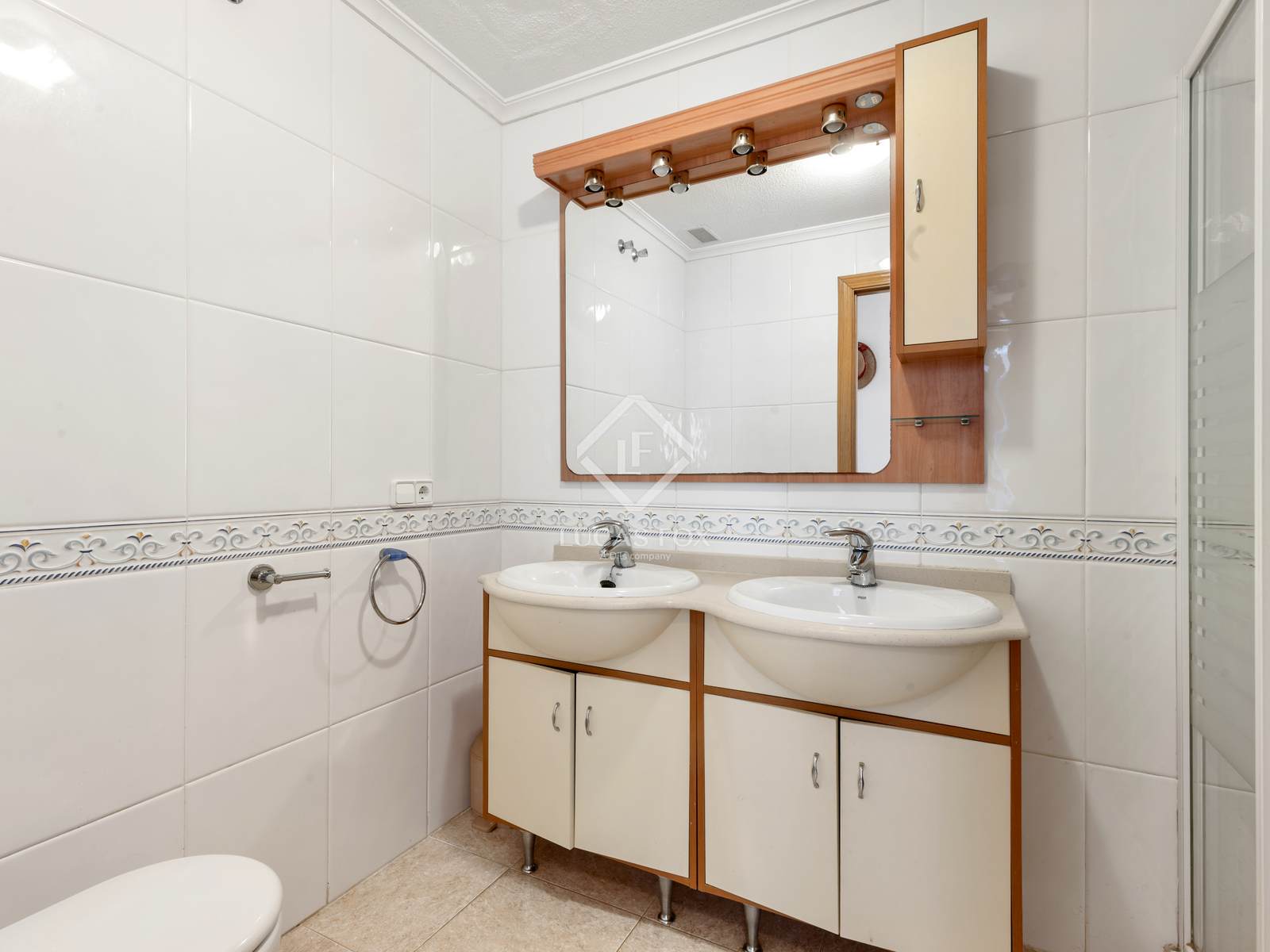 A casa é muito acolhedora e destaca-se pela sua luminosidade e amplitude. A sala de estar principal abre-se para um agradável terraço coberto que funciona como uma extensão natural do interior, e de lá se acede ao amplo jardim. As grandes janelas do chão ao teto não só inundam o espaço com luz natural, como também criam uma ligação direta com o exterior, ideal para desfrutar do clima mediterrânico durante todo o ano. Este jardim de dimensões generosas torna-se o local perfeito para reuniões familiares, celebrações ou momentos de relaxamento num ambiente privado e sereno.