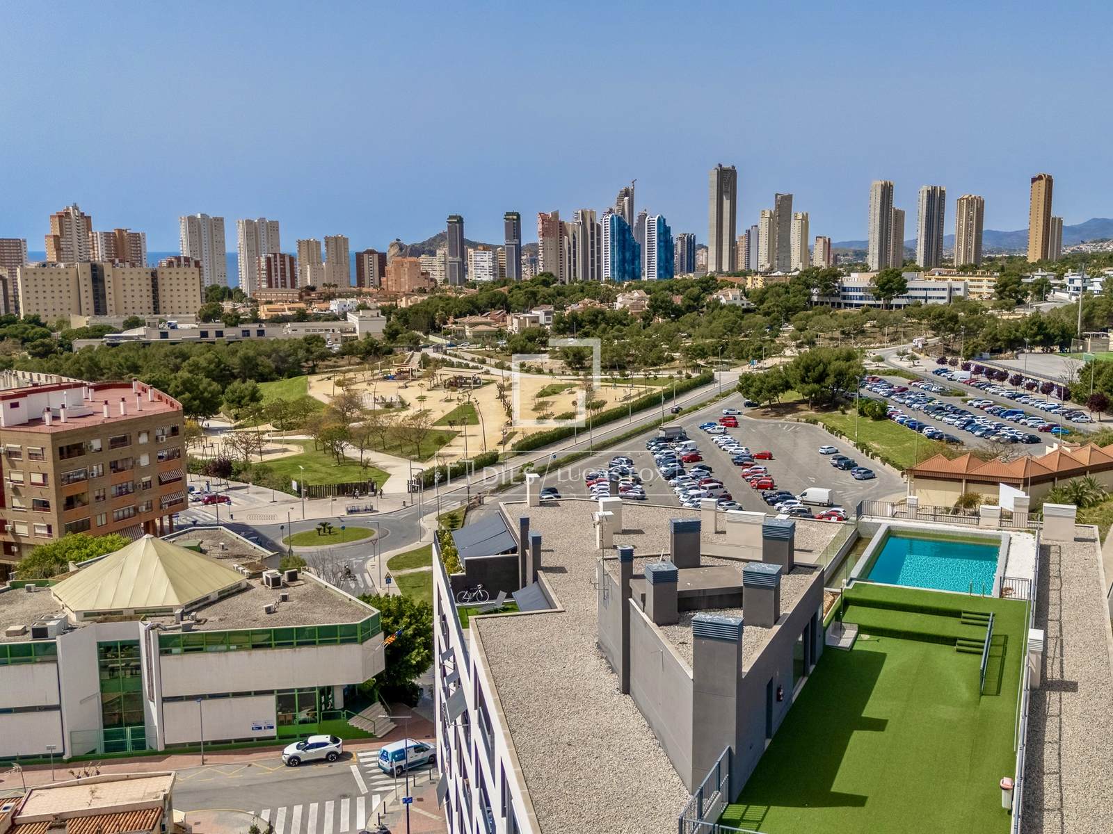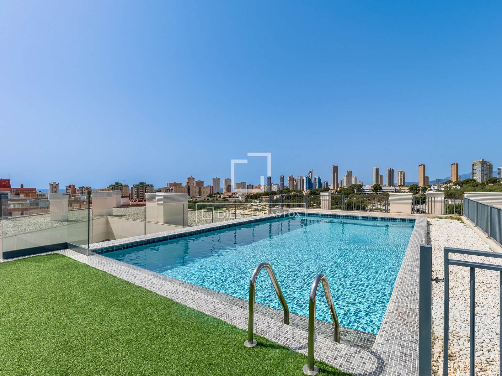 Apartamento moderno de 2 quartos com piscina na cobertura, a 15 minutos da Praia de Poniente.