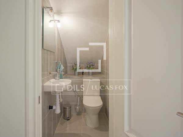 A cozinha totalmente equipada, com eletrodomésticos Bosch e elegantes bancadas Silestone, está diretamente conectada à sala de estar em plano aberto.