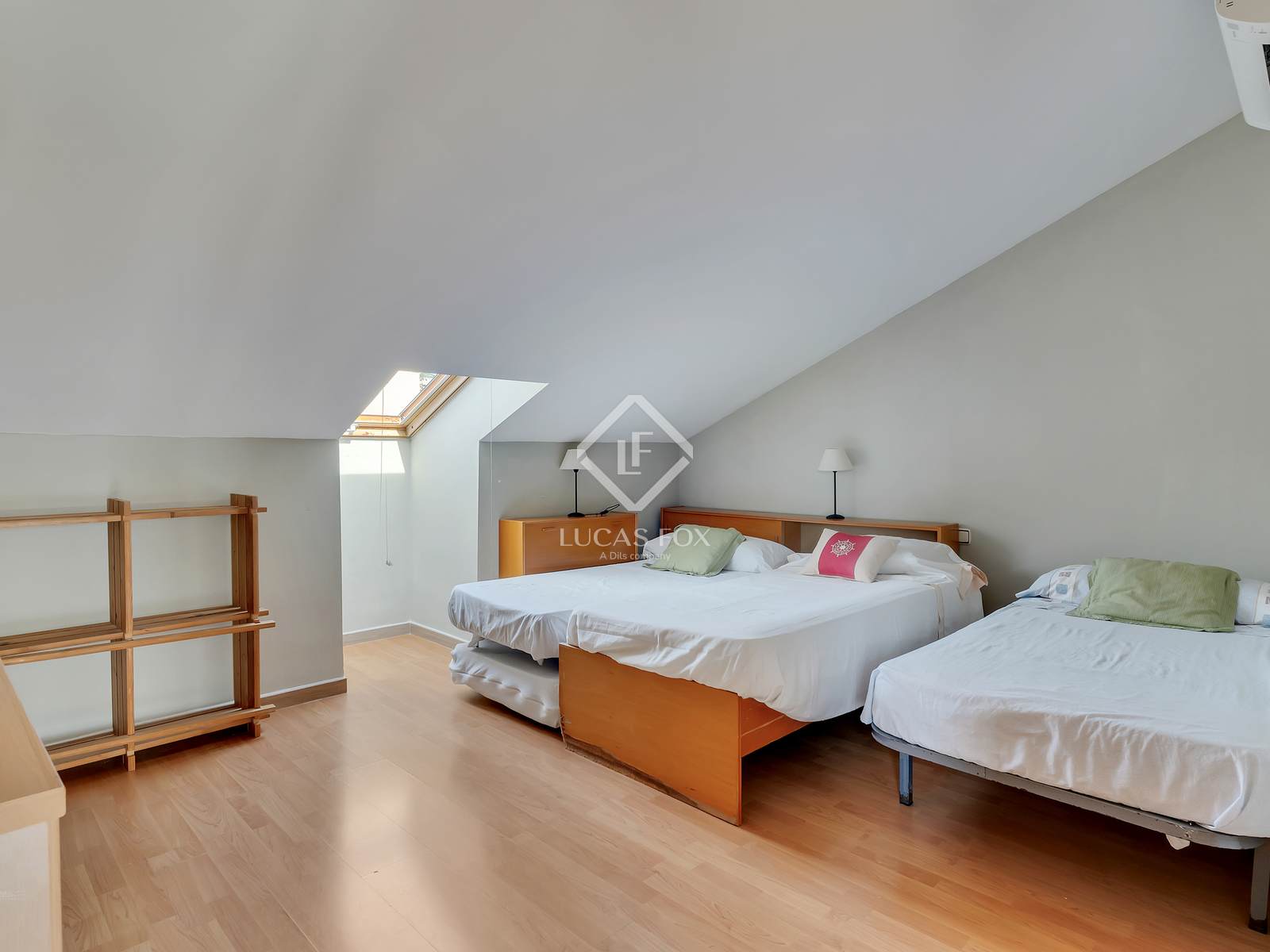 No andar superior, a área de dormir inclui dois quartos espaçosos, cada um com seu próprio banheiro privativo. A suíte principal também tem acesso a um terraço isolado, proporcionando um refúgio tranquilo para relaxamento e privacidade.