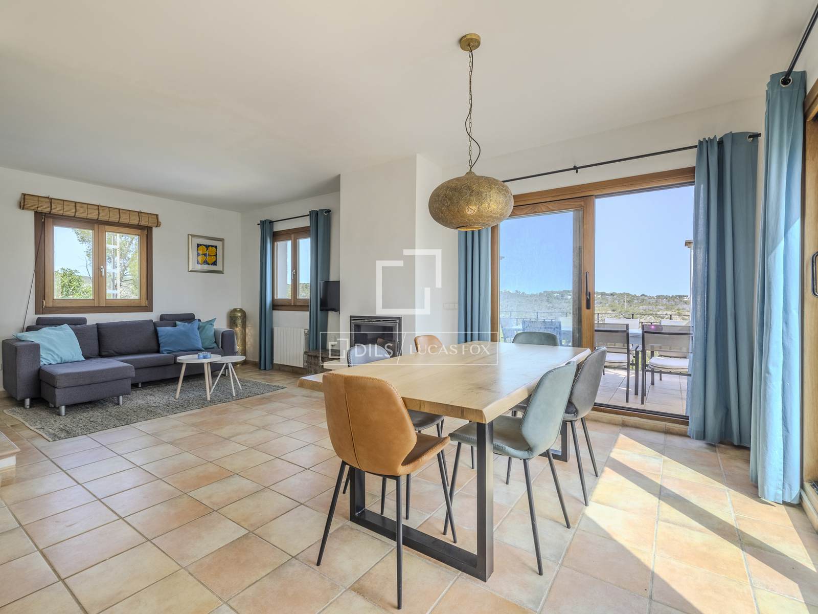 A propriedade dispõe de quatro quartos espaçosos e dois banheiros, uma cozinha semiaberta e uma acolhedora sala de estar e jantar com lareira. Grandes portas de correr conectam harmoniosamente o interior com os espaços externos, dando acesso a um amplo terraço de onde se pode desfrutar de vistas panorâmicas deslumbrantes do Parque Granadella.
