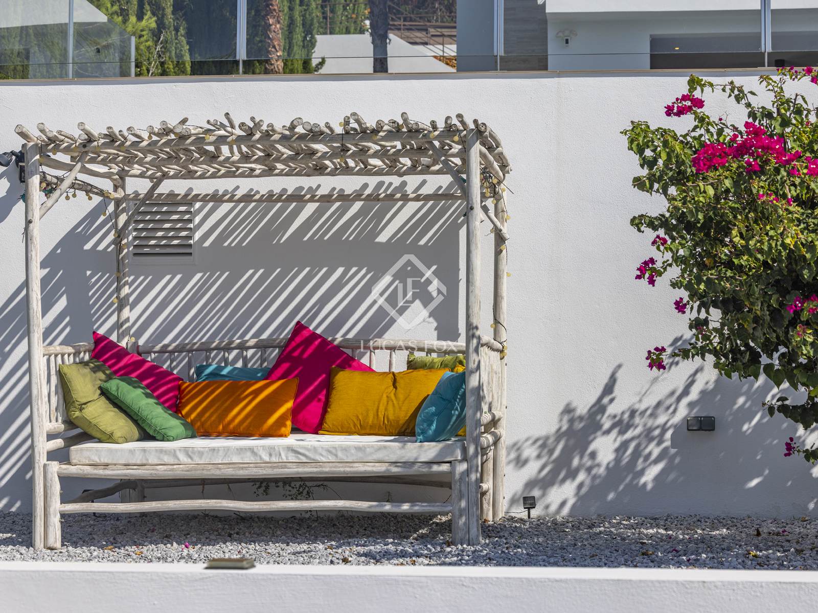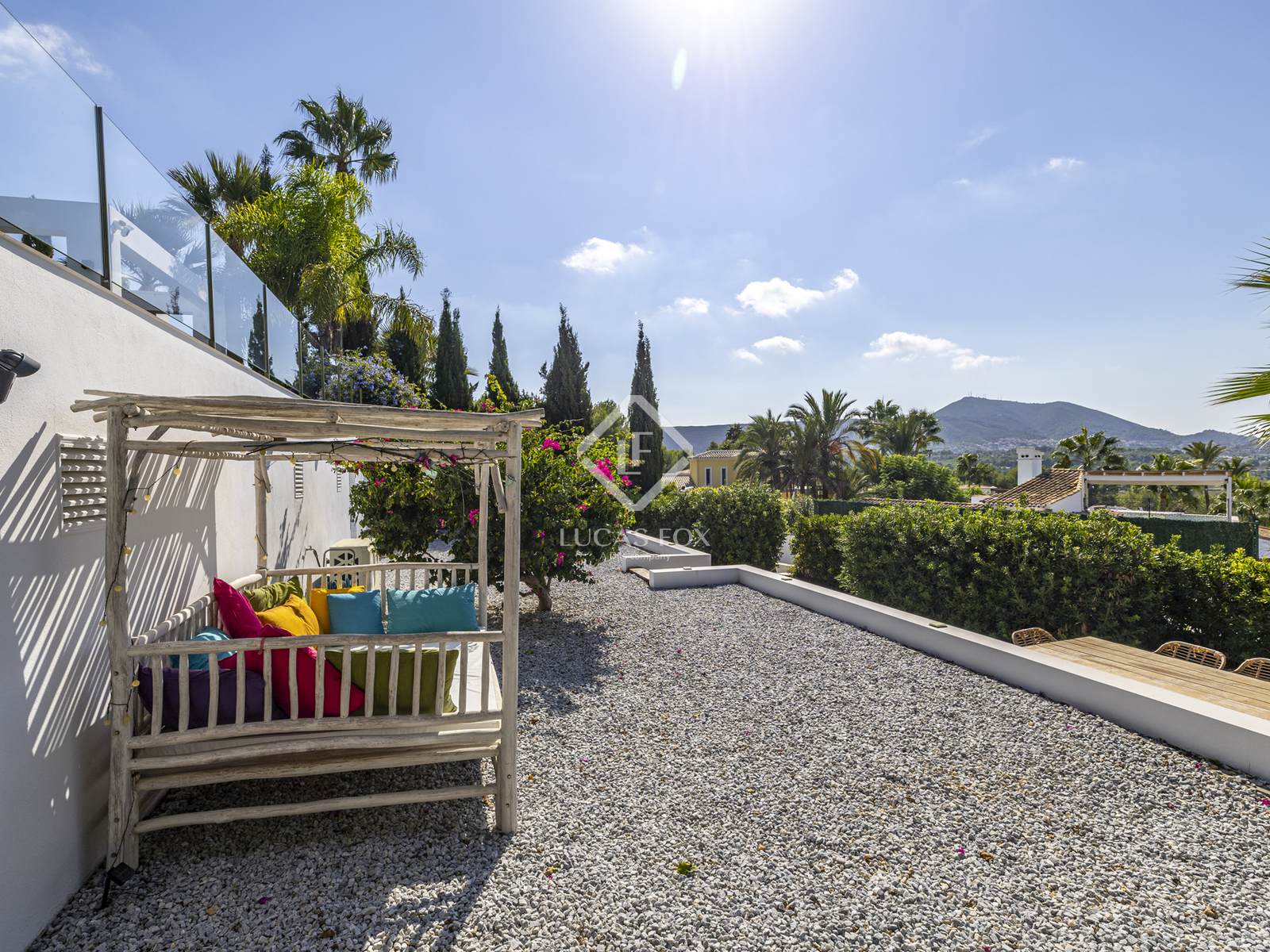 A sala de estar principal se abre diretamente para a piscina e o terraço, ideal para entretenimento ao ar livre e para desfrutar do clima excepcional de Jávea. O quarto principal possui seu próprio terraço privativo, o local perfeito para relaxar e apreciar o pôr do sol.