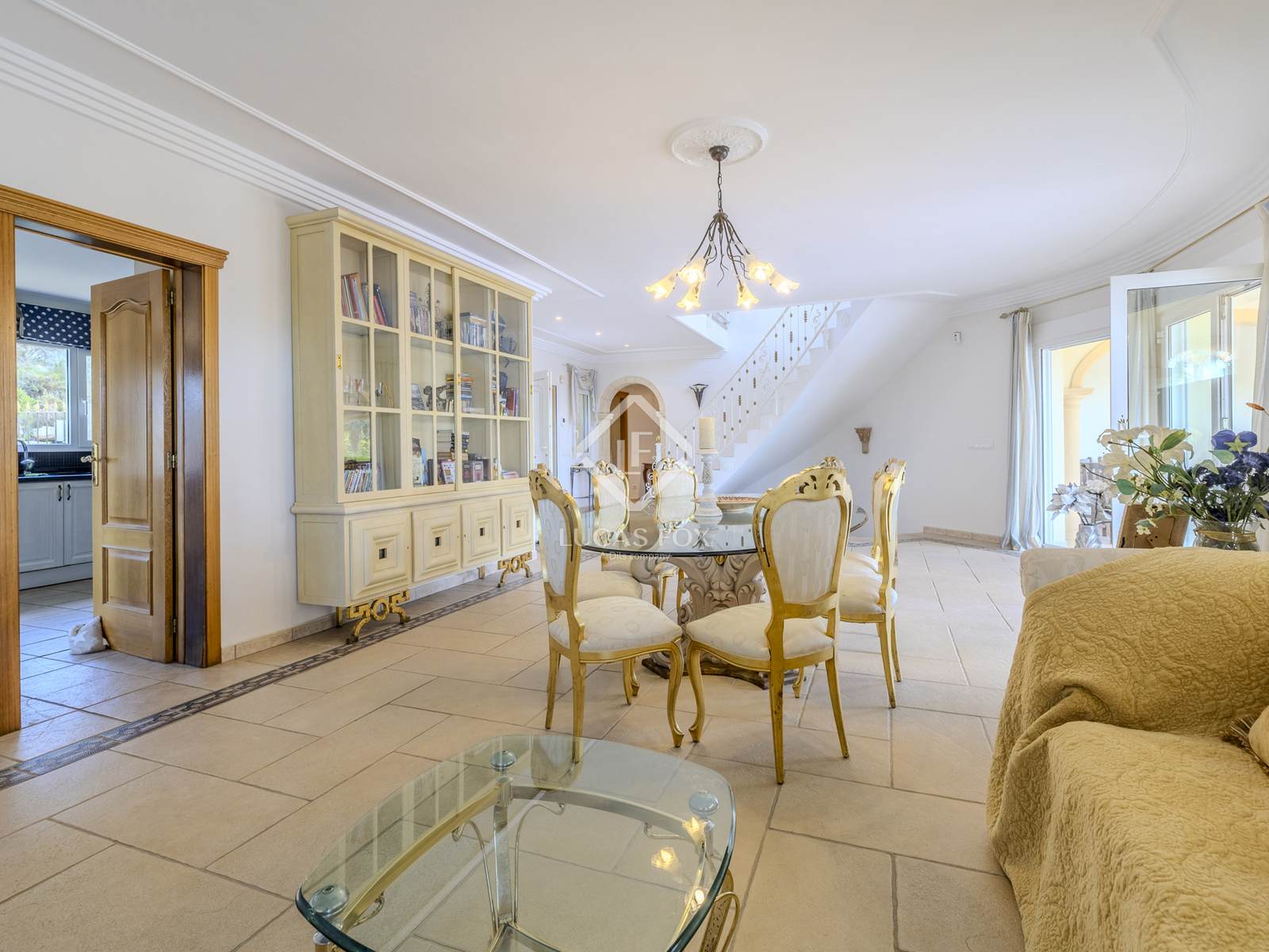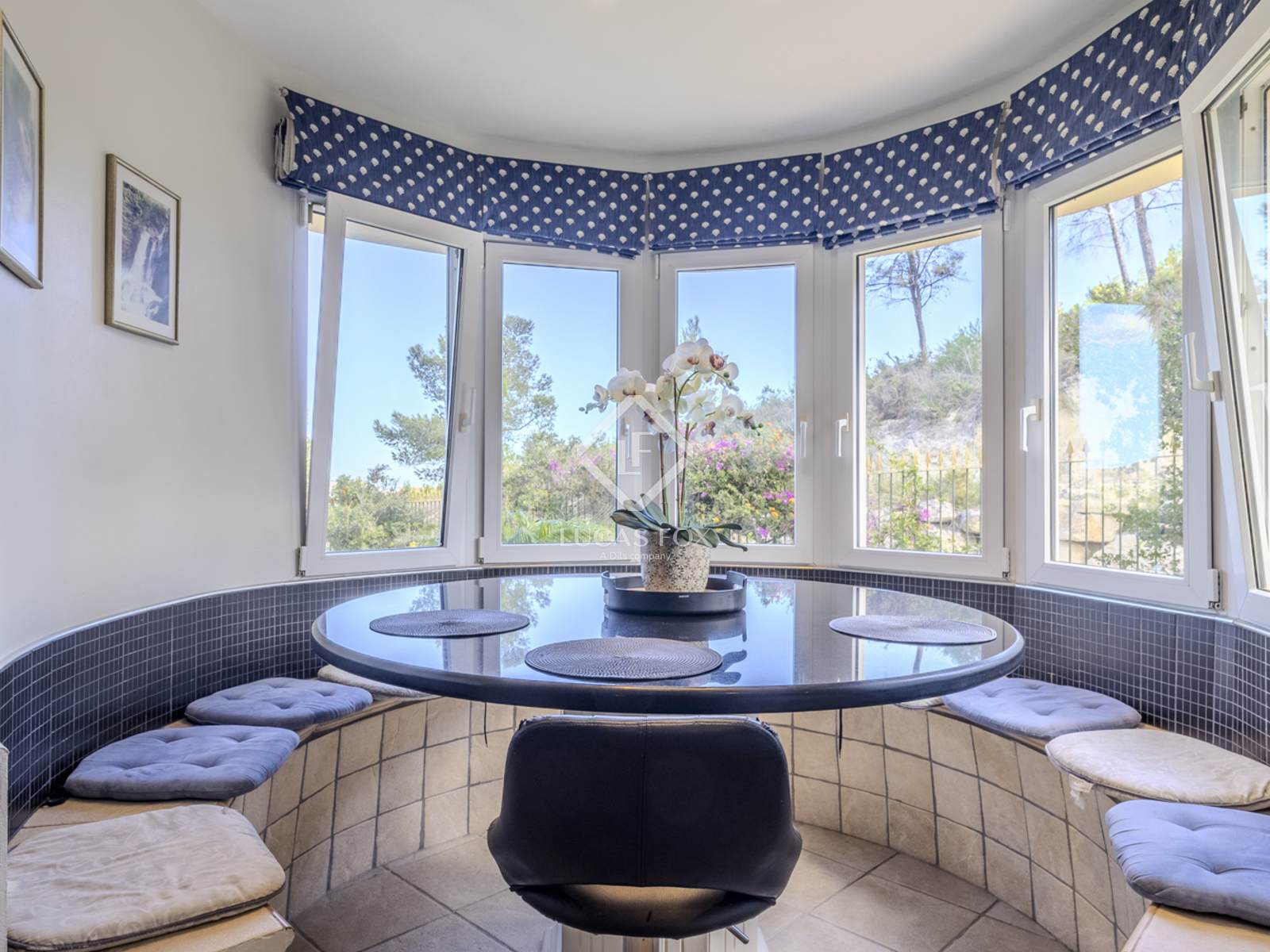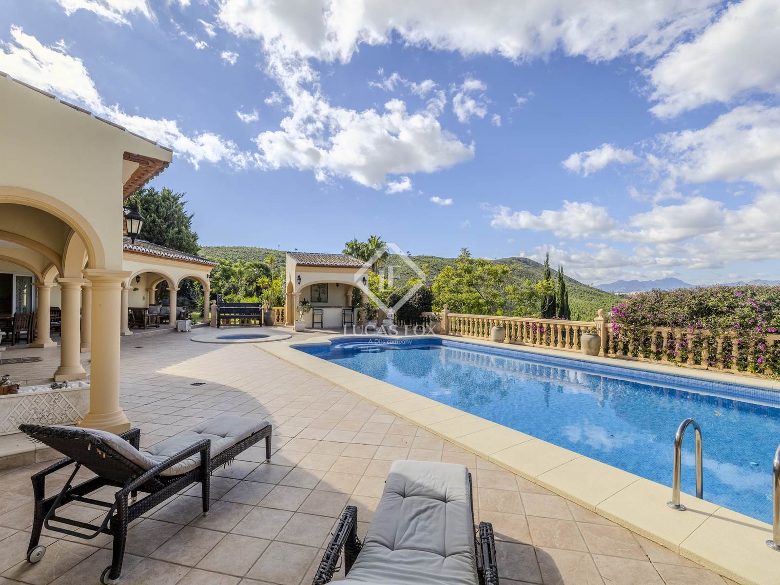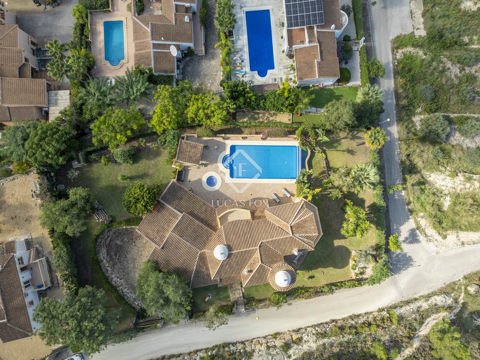 Situada numa posição elevada numa zona residencial tranquila, esta casa excecional oferece privacidade e está rodeada por uma vegetação exuberante e colinas ondulantes. A propriedade desfruta de vistas panorâmicas deslumbrantes e de uma atmosfera serena, estando, no entanto, a poucos minutos de todas as comodidades. A dez minutos de carro, é possível chegar a supermercados e a todos os serviços, bem como à praia de areia de Jávea e ao seu animado passeio marítimo com uma variedade de restaurantes, bares e cafés.