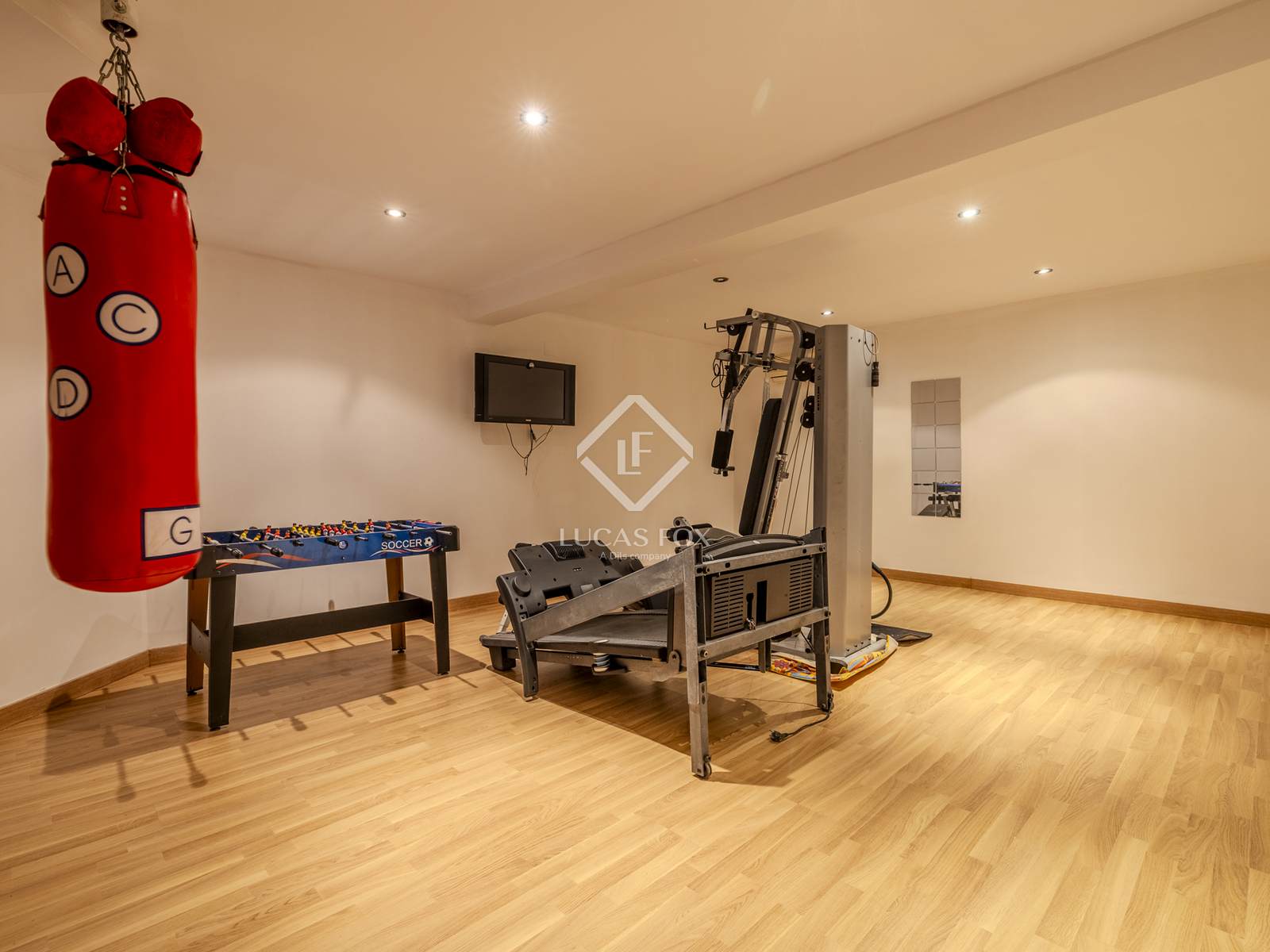 O piso inferior da casa abriga uma ampla garagem para dois veículos, uma lavanderia/depósito e uma academia totalmente equipada. A área externa conta com uma magnífica piscina de 12x7 metros, cercada por terraços ensolarados e um jardim impecavelmente cuidado. O jardim é gramado e apresenta uma variedade de plantas nativas, arbustos, palmeiras e árvores frutíferas, tudo com sistema de irrigação automática.