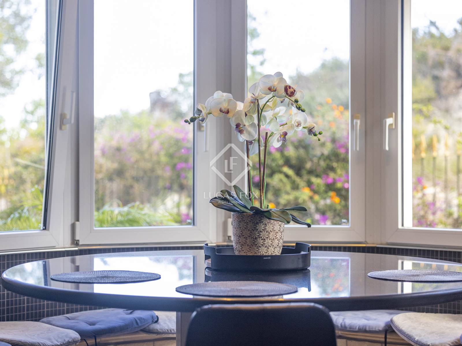 Inundada de luz natural graças às múltiplas janelas e portas de vidro, a sala de estar flui harmoniosamente para dois terraços, um dos quais circunda a impressionante piscina infinita de 12x7 metros. Este terraço parcialmente coberto oferece amplo espaço para refeições ao ar livre, relaxamento e entretenimento, contando com uma excelente cozinha de verão, área para churrasco e jacuzzi, o cenário perfeito para encontros com familiares e amigos.