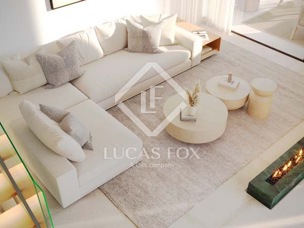 Uma escadaria leva ao andar superior, onde encontramos uma maravilhosa segunda sala de estar e uma espaçosa suíte principal completa com closet, amplo banheiro privativo e acesso ao terraço superior com vistas panorâmicas.