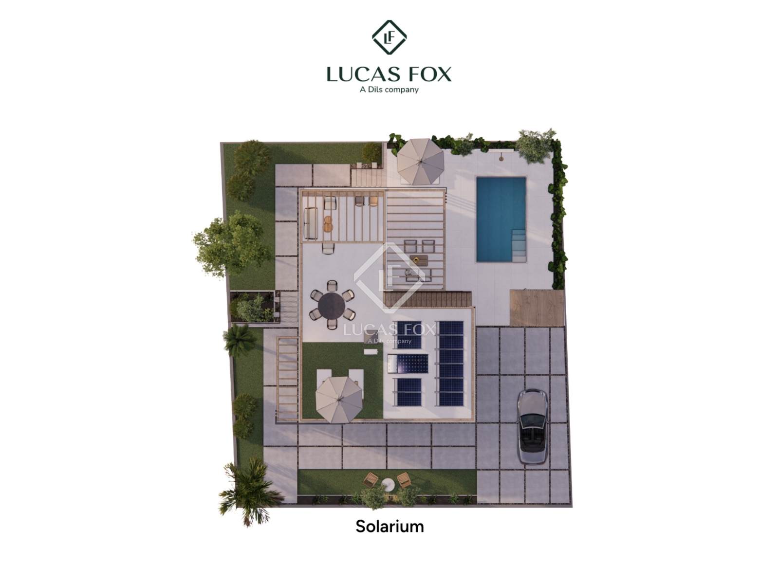 O solário de 95 m² foi projetado como uma área de relaxamento exclusiva e incorpora painéis solares. O imóvel possui classificação energética A e persianas externas motorizadas, reafirmando seu compromisso com a sustentabilidade e o conforto.