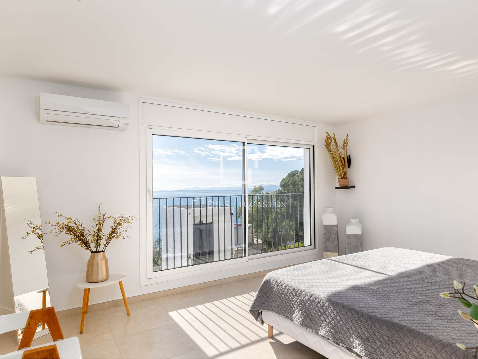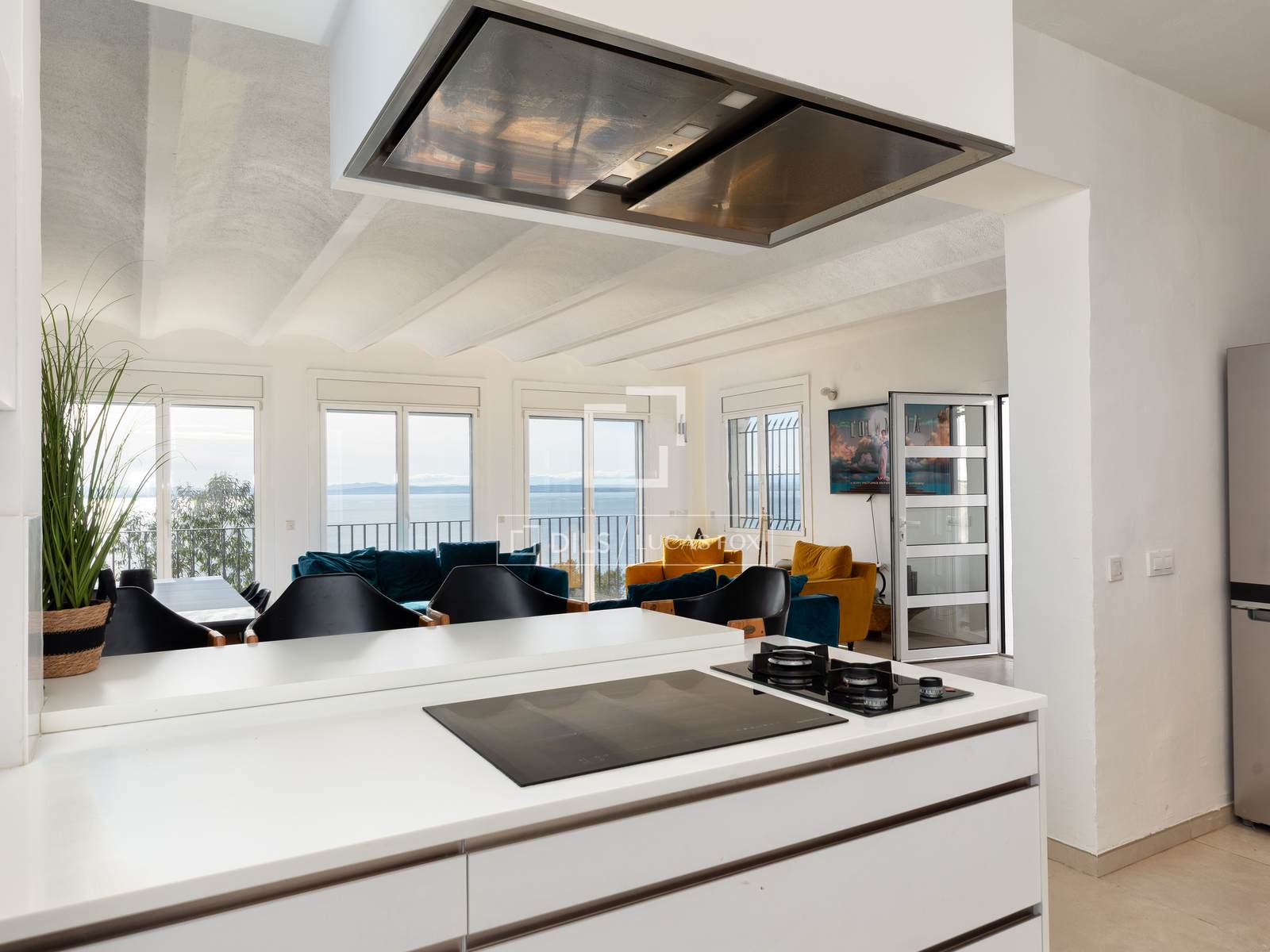 No piso inferior situa-se uma segunda sala de estar e jantar e três quartos duplos adicionais, um deles com casa de banho privativa. Todas as divisões desfrutam igualmente de vista mar, um elemento particularmente valorizado e pouco comum.