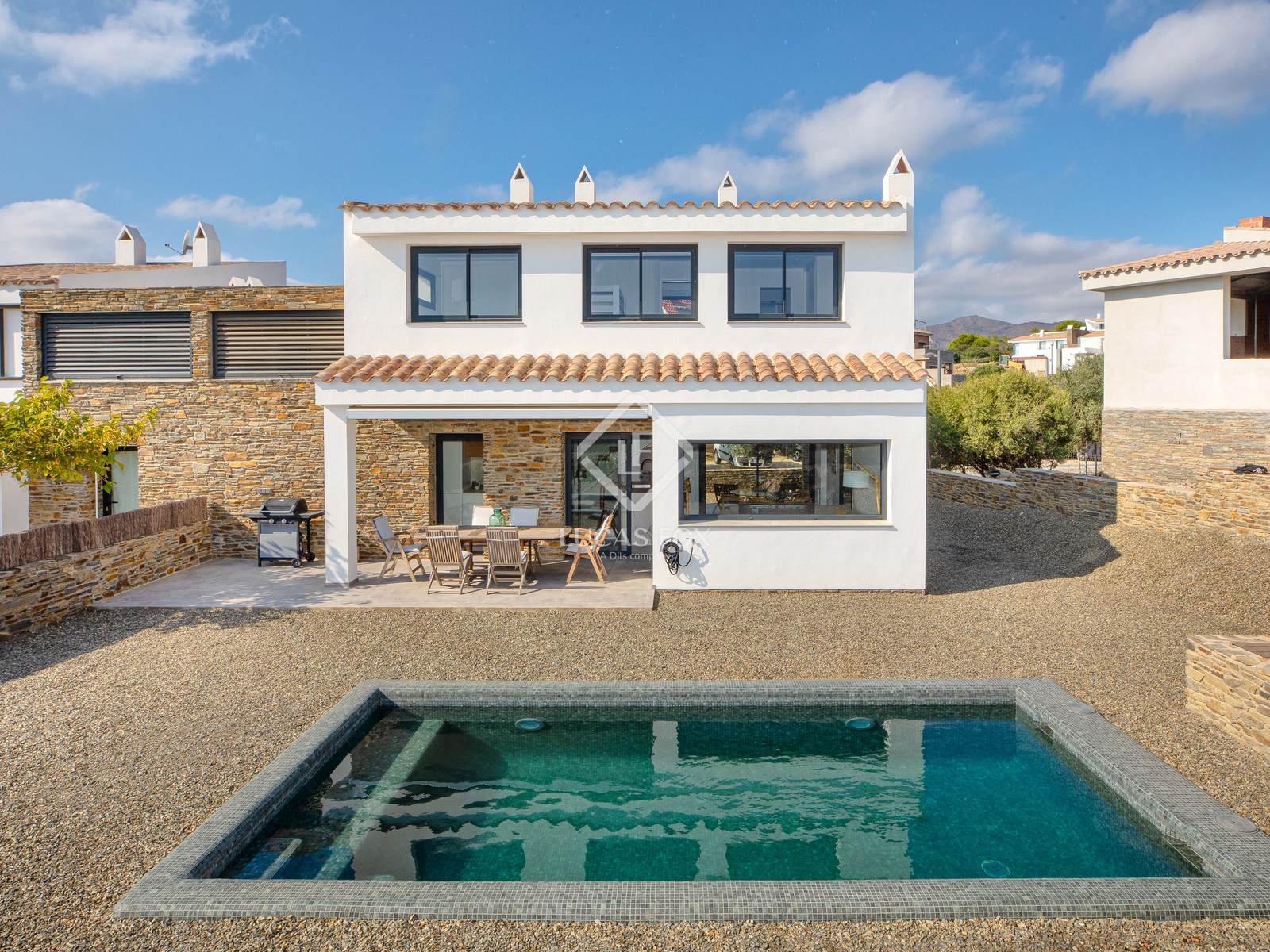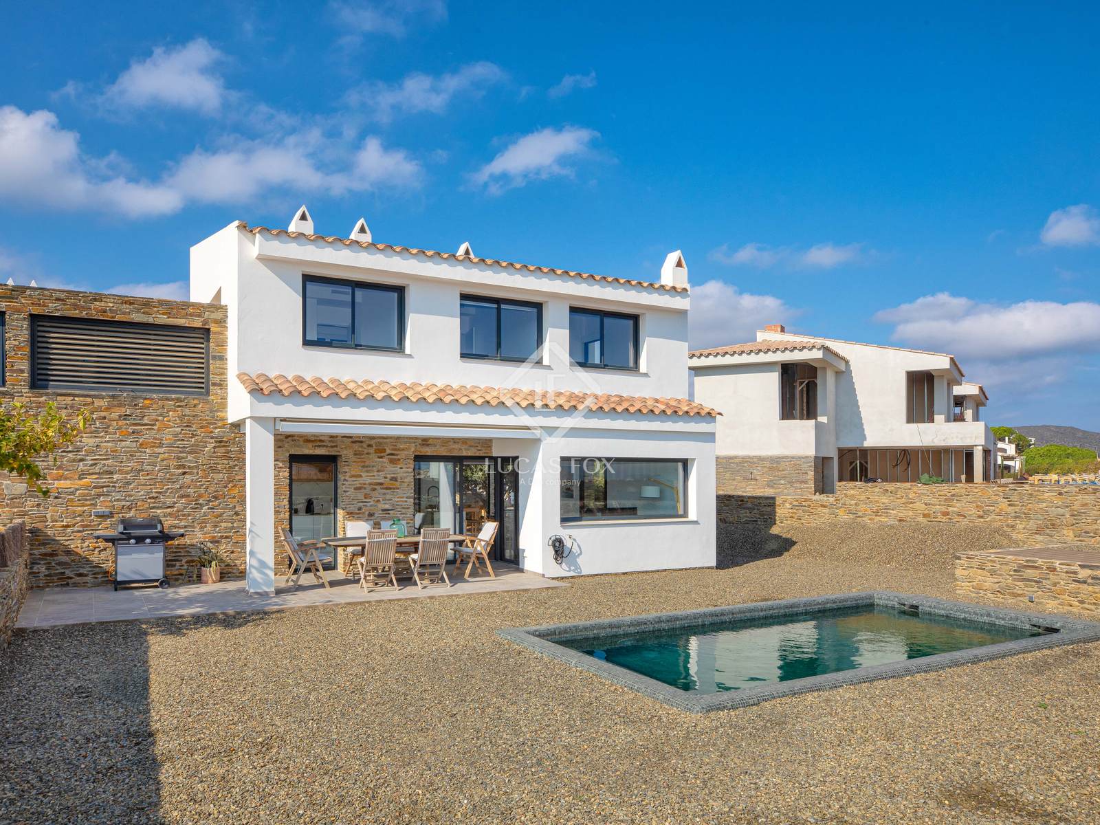 Moradia nova, construída a partir de 2023, com 3 quartos duplos, garagem fechada, piscina e aquecimento aerotérmico, à venda em Cadaqués, numa zona protegida, a poucos minutos da fronteira francesa.