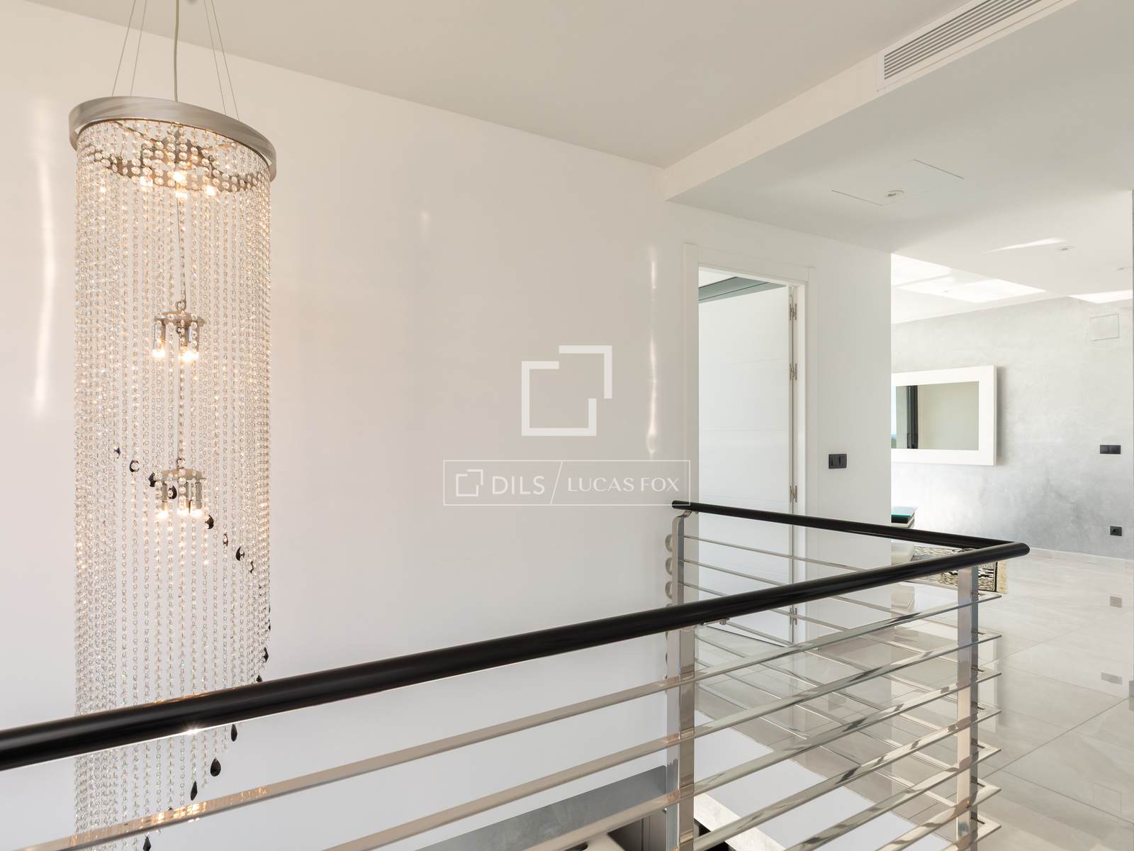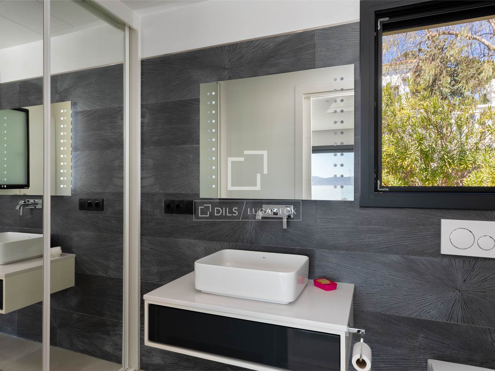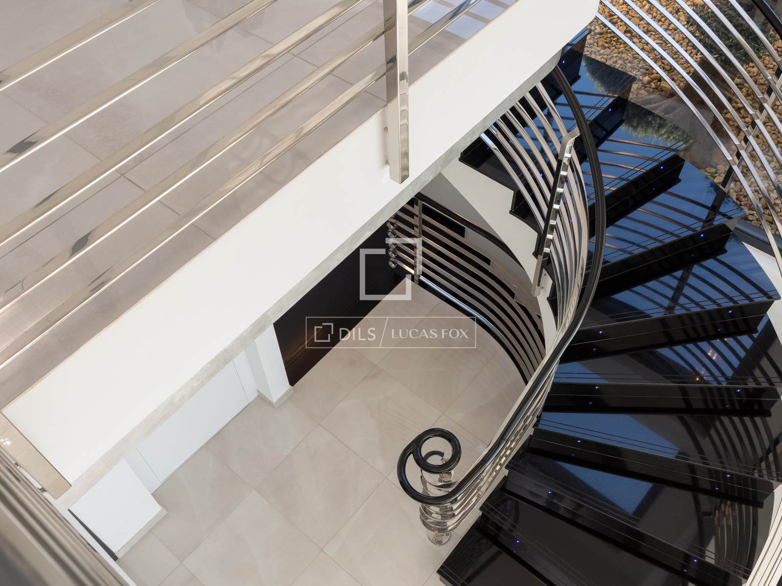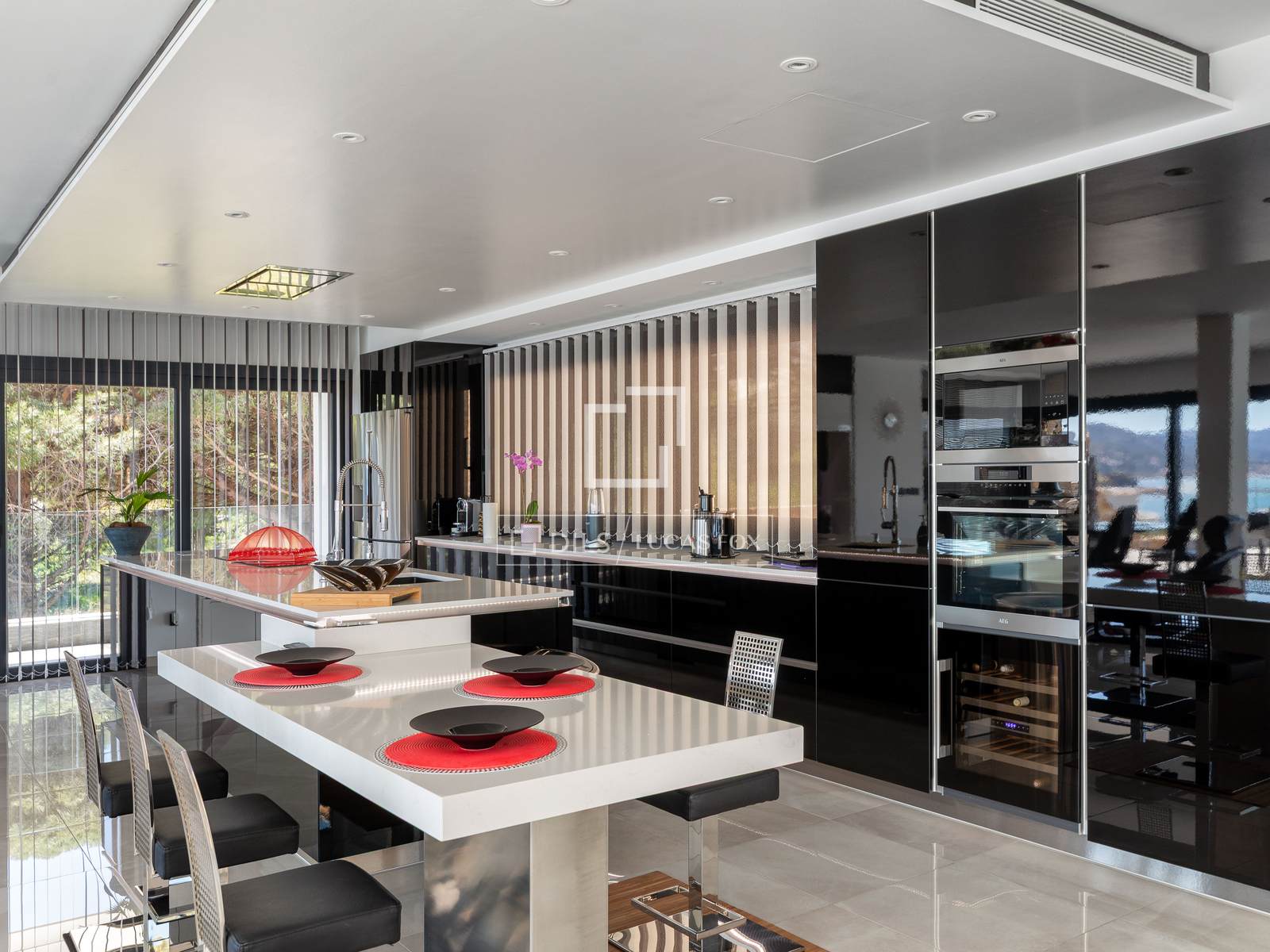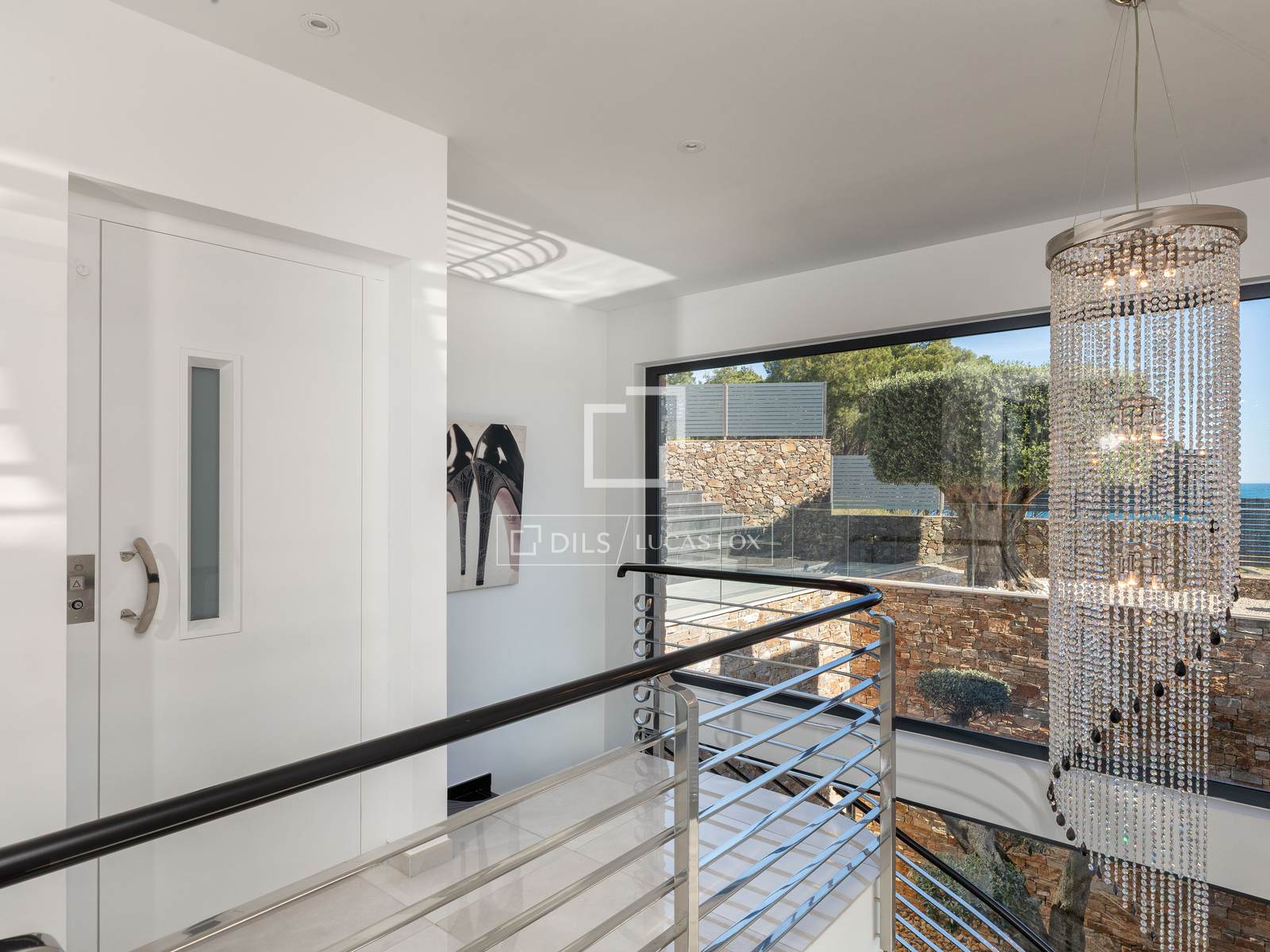 Do lado de fora, o jardim lindamente projetado desce suavemente pela encosta, complementado por amplos terraços com vista para o jardim e para o mar, criando espaços únicos para relaxamento e contemplação do Mediterrâneo. A deslumbrante piscina infinita, magistralmente integrada à arquitetura da casa, torna-se um dos elementos mais marcantes da propriedade, conferindo frescor, beleza e exclusividade.
