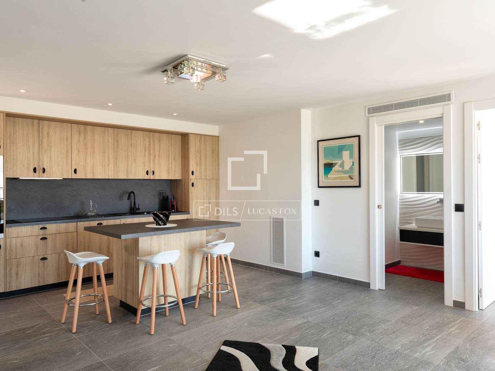 O andar superior é dedicado ao descanso e relaxamento, com dois quartos adicionais espaçosos com casa de banho privativa, cada um com chuveiro e banheira, além de uma segunda sala de estar e um lavabo. Todos os quartos têm acesso direto a um amplo terraço com vista panorâmica para o mar.