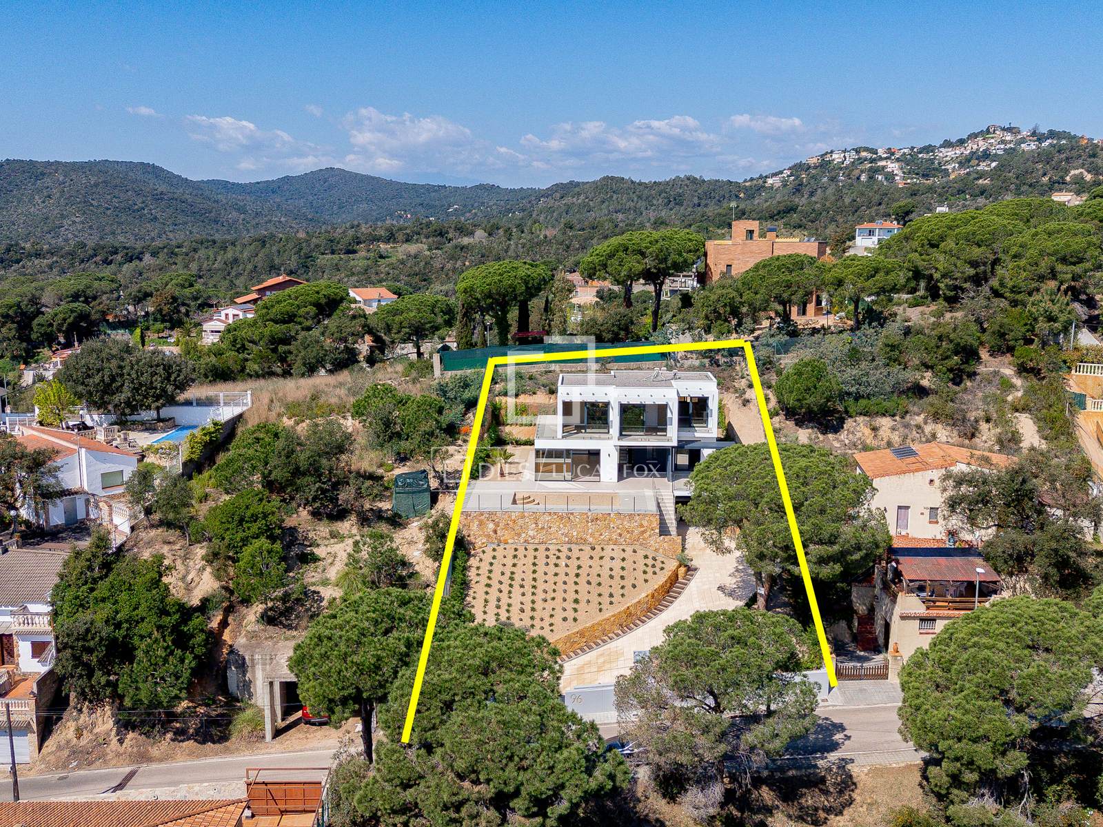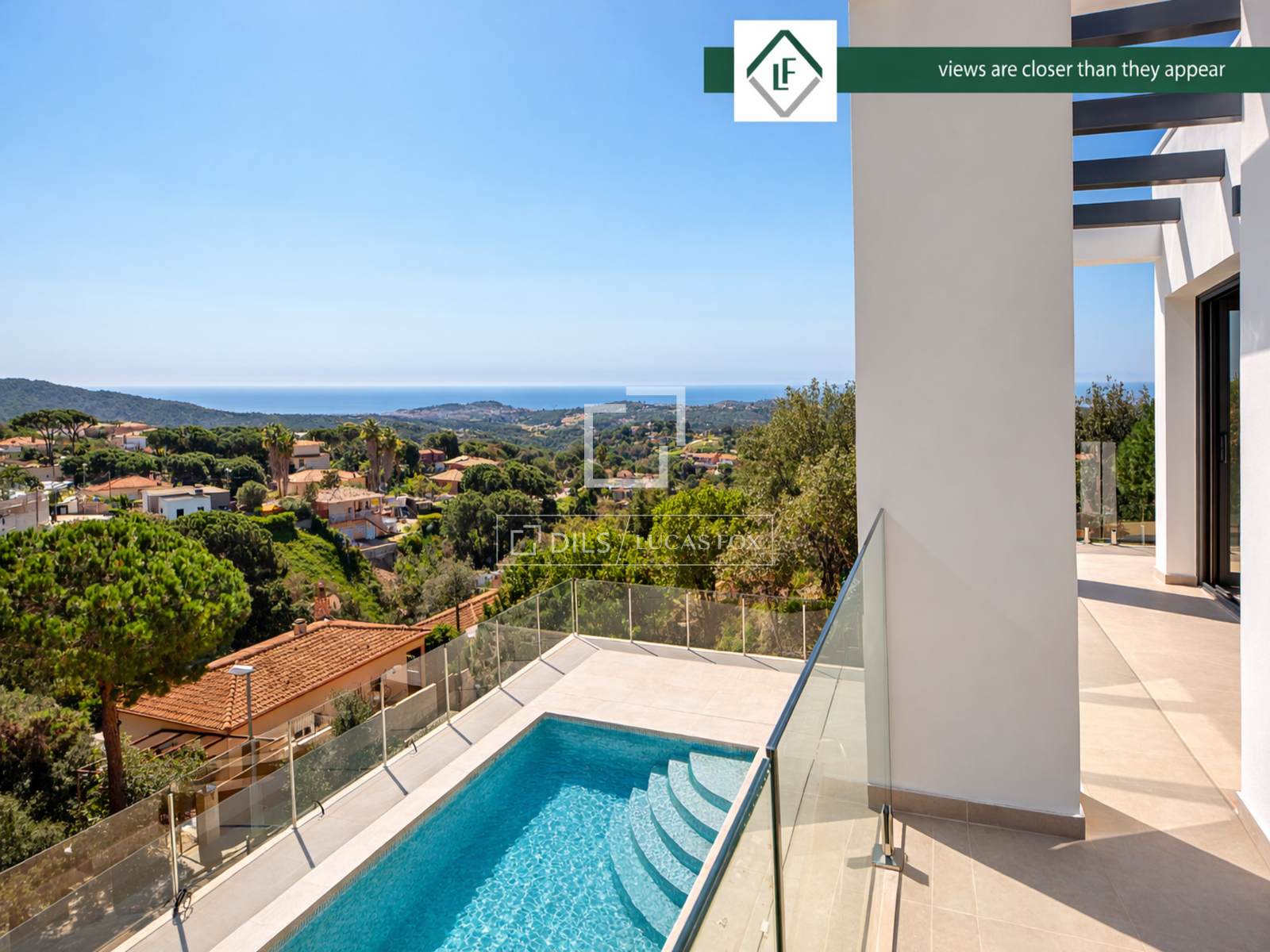 Lucas Fox apresenta esta casa moderna e recém-construída com vista para o mar e para a montanha, no exclusivo empreendimento Els Pinars em Lloret del Mar, a apenas 5 minutos do centro e das principais áreas de lazer.