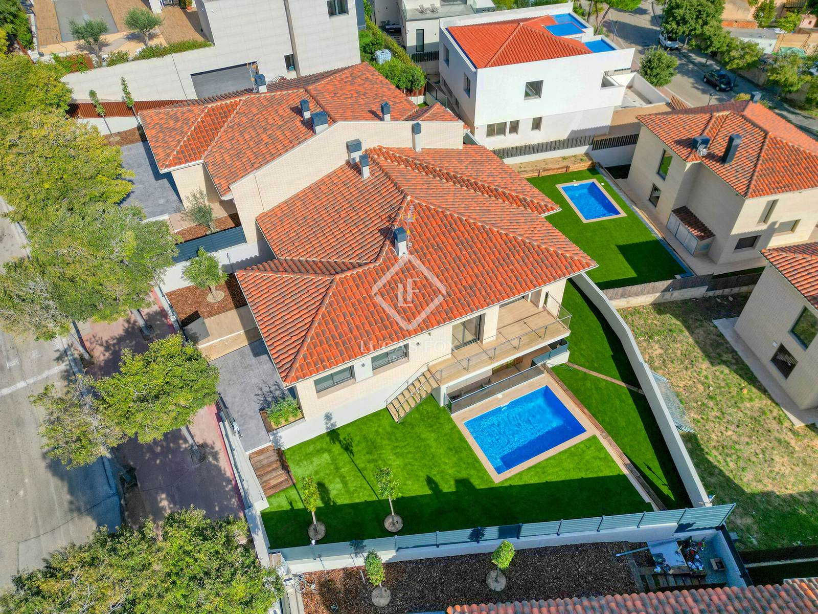 A propriedade oferece áreas externas espaçosas, incluindo piscina privativa, jardins e terraços, perfeitas para aproveitar o clima mediterrâneo o ano todo.