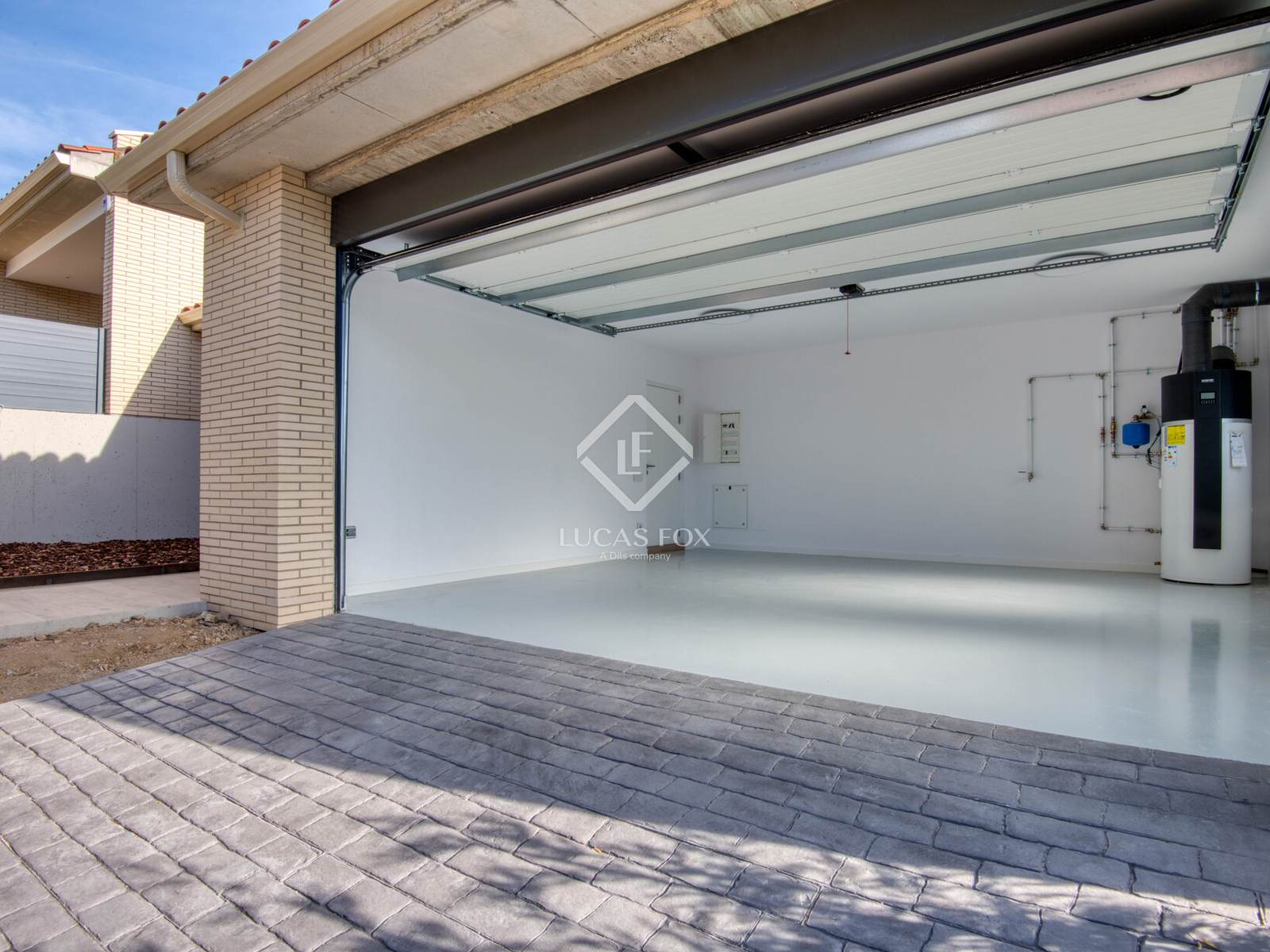 Possui acabamentos de alta qualidade, como sistema de aquecimento aerotérmico (A+) e painéis solares pré-instalados para um desempenho energético eficiente e sustentável. Inclui ainda automação residencial avançada para controlo de temperatura, persianas, iluminação e videoporteiro a partir do seu telemóvel. A casa utiliza tecnologia LED em toda a casa e todos os quartos dispõem de roupeiros embutidos. A cozinha, aberta para a sala de estar, está equipada com eletrodomésticos Bosch topo de gama, armários Nolte Küchen e uma ilha central revestida a mármore.