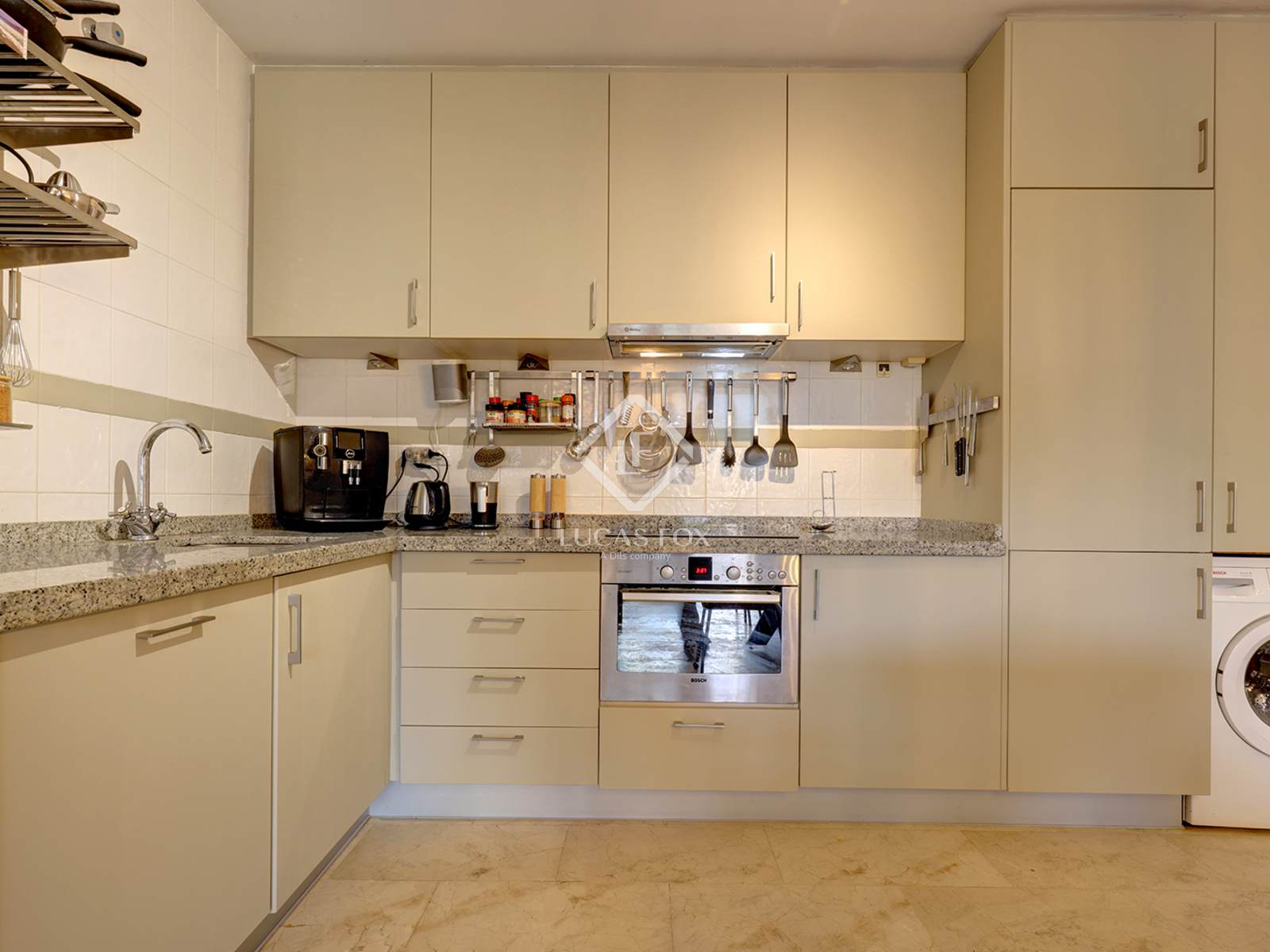 O apartamento possui uma cozinha americana e uma espaçosa sala de estar que se integra perfeitamente a um amplo terraço descoberto que se estende por toda a largura da propriedade. Com sua orientação sul, o terraço recebe sol durante todo o dia e oferece vistas serenas dos exuberantes jardins subtropicais e um vislumbre do mar — ideal para refeições ao ar livre, relaxamento ou para receber convidados.