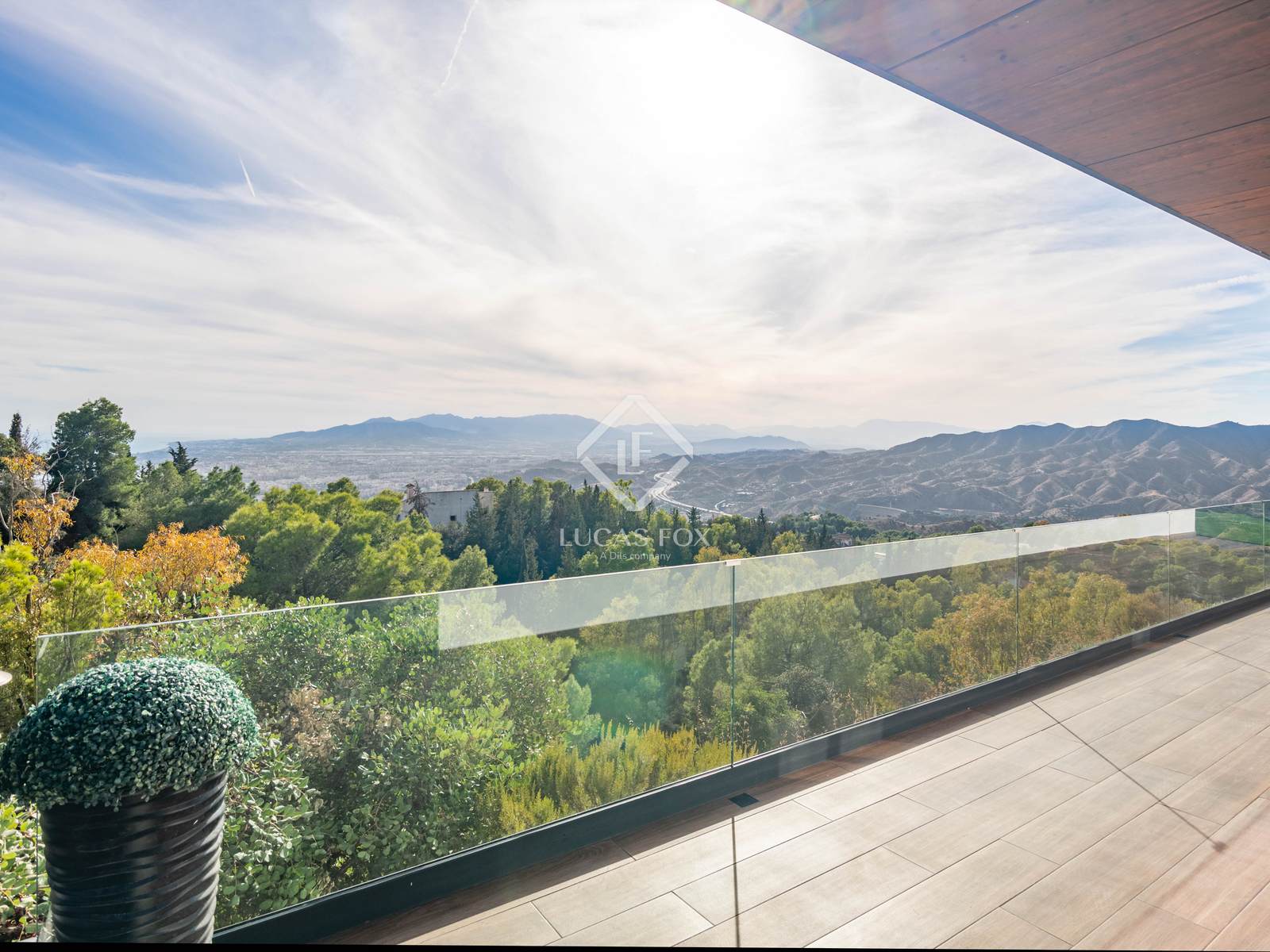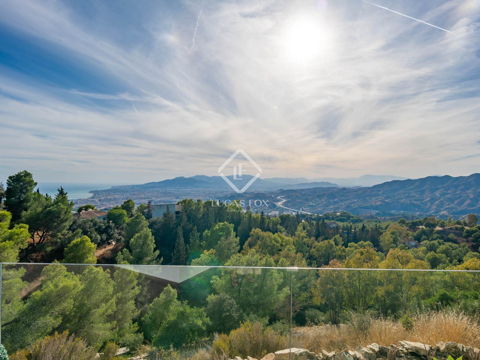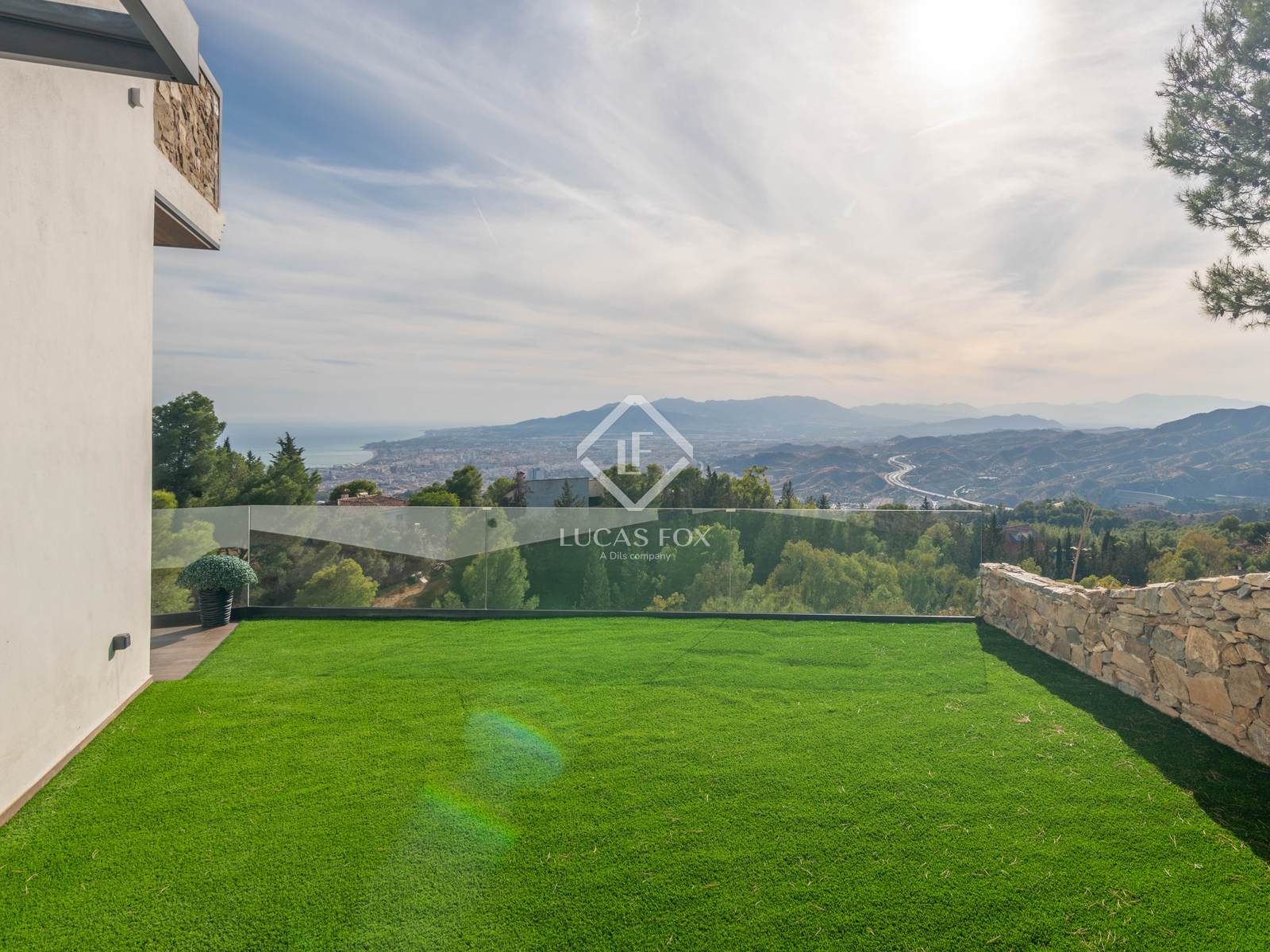 A propriedade recém-construída fica em um terreno espaçoso de 1.800 m² e oferece vistas panorâmicas absolutamente deslumbrantes de toda a Baía de Málaga.
