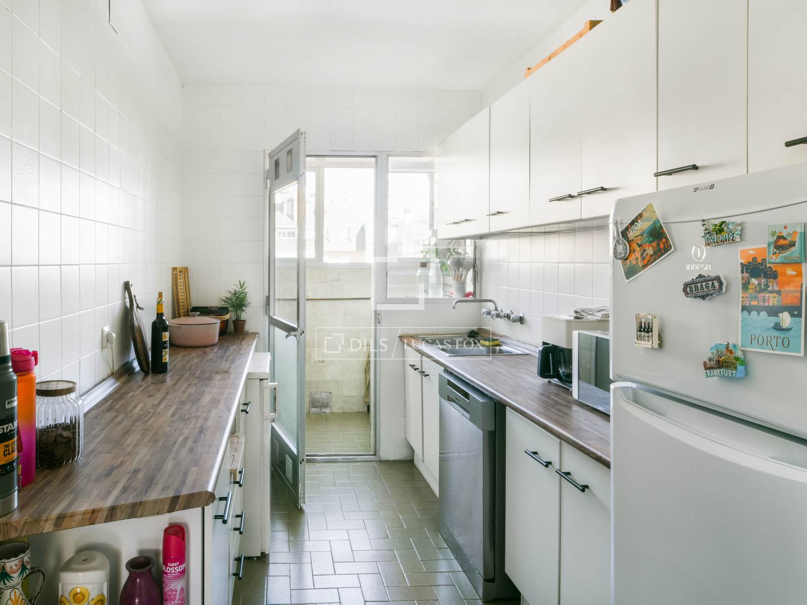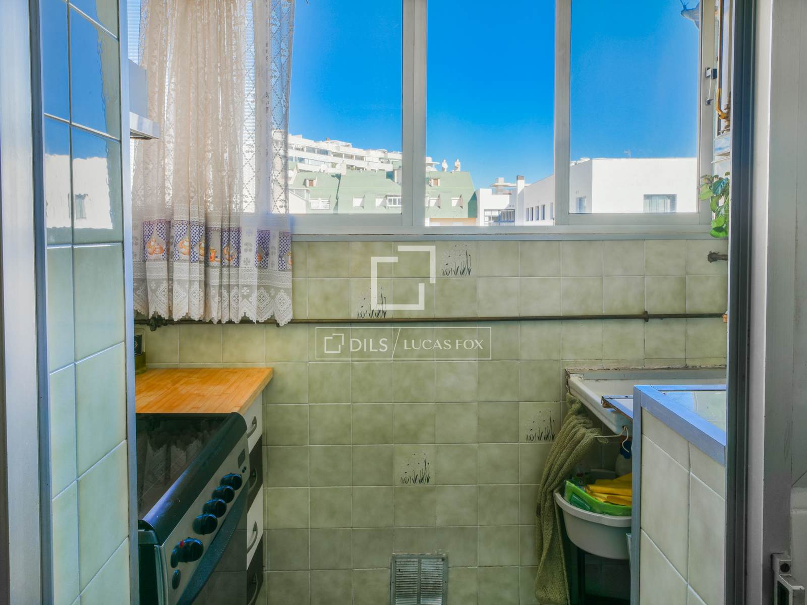 Na configuração atual, o imóvel conta com três quartos e dois banheiros, além de uma sala de estar espaçosa com acesso a uma área externa de aproximadamente 5 m², que pode ser transformada em um agradável terraço urbano. A cozinha é separada e oferece diversas possibilidades de integração ou remodelação dentro de um conceito mais contemporâneo.