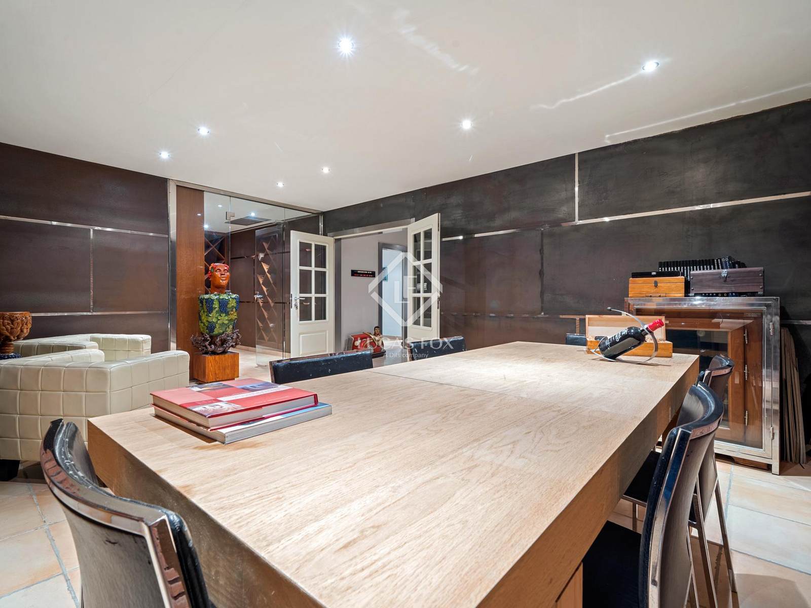 Neste andar pegamos o elevador para descer até o subsolo onde encontramos um amplo salão, disposto como uma sala de bilhar, que nos leva a diferentes espaços; uma sala de ginástica com luz natural; um “txoko” com adega anexa; um banheiro completo com closet e; uma grande garagem adequada para 4 carros, motos e equipamentos esportivos. Em diferentes salas anexas a esta garagem, estão alojadas as máquinas e equipamentos necessários ao funcionamento das diferentes instalações.
