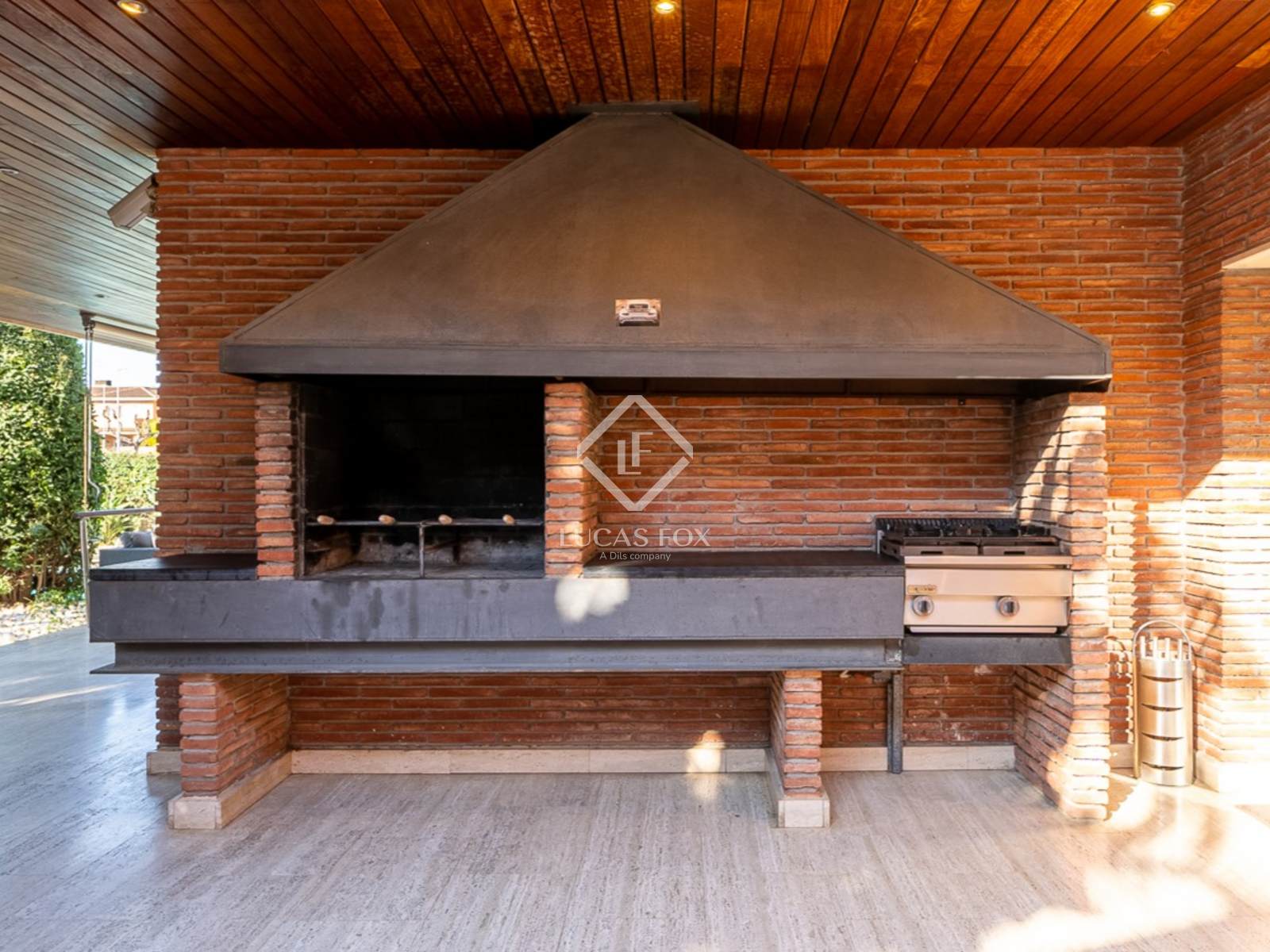 No exterior, encontramos vários espaços pensados para desfrutar do ar livre, como dois terraços com alpendres, um na fachada principal e outro na parte posterior, um terraço de serviço com uma grande churrasqueira, um jardim com diferentes ambientes e uma piscina de verão.